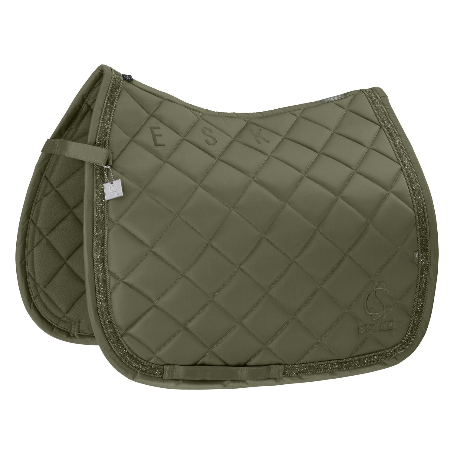 Die Schabracke von ESKADRON aus der Classic Sport Kollektion überzeugt durch eine gelungene Kombination aus Eleganz und Funktionalität. Das unempfindliche Glossy-Obermaterial verleiht ihr nicht nur eine edle Optik, sondern sorgt auch für Langlebigkeit und einfache Pflege. Die Cool/Dry-Unterseite gewährleistet optimale Feuchtigkeitsregulierung und bietet dem Pferd höchsten Tragekomfort, während die voluminöse Steppung eine gleichmäßige Druckverteilung unterstützt. Für optimale Funktionalität sorgt das innovative Innostrap-System, das eine sichere Frontfixierung ermöglicht. Ergänzend dazu bietet die Gurtschlaufe mit dreifacher Fixierungsoption eine exakte Positionierung der Schabracke, was für zusätzliche Stabilität sorgt. Dazu kommen die Anti-Slip-Silikonflächen im Sattelbereich, die ein Verrutschen effektiv verhindern. Besonders hervorzuheben ist die stilvolle »Kordel-Jewel-Kordel« Kombination auf der Glossy-Einfassung, die gemeinsam mit den dezenten Stickereien auf beiden Seiten einen Hauch von Eleganz verleiht. Abgerundet wird das Design durch das klassische Sports Flag Label, das beidseitig angebracht ist und die sportlich-moderne Linie unterstreicht.