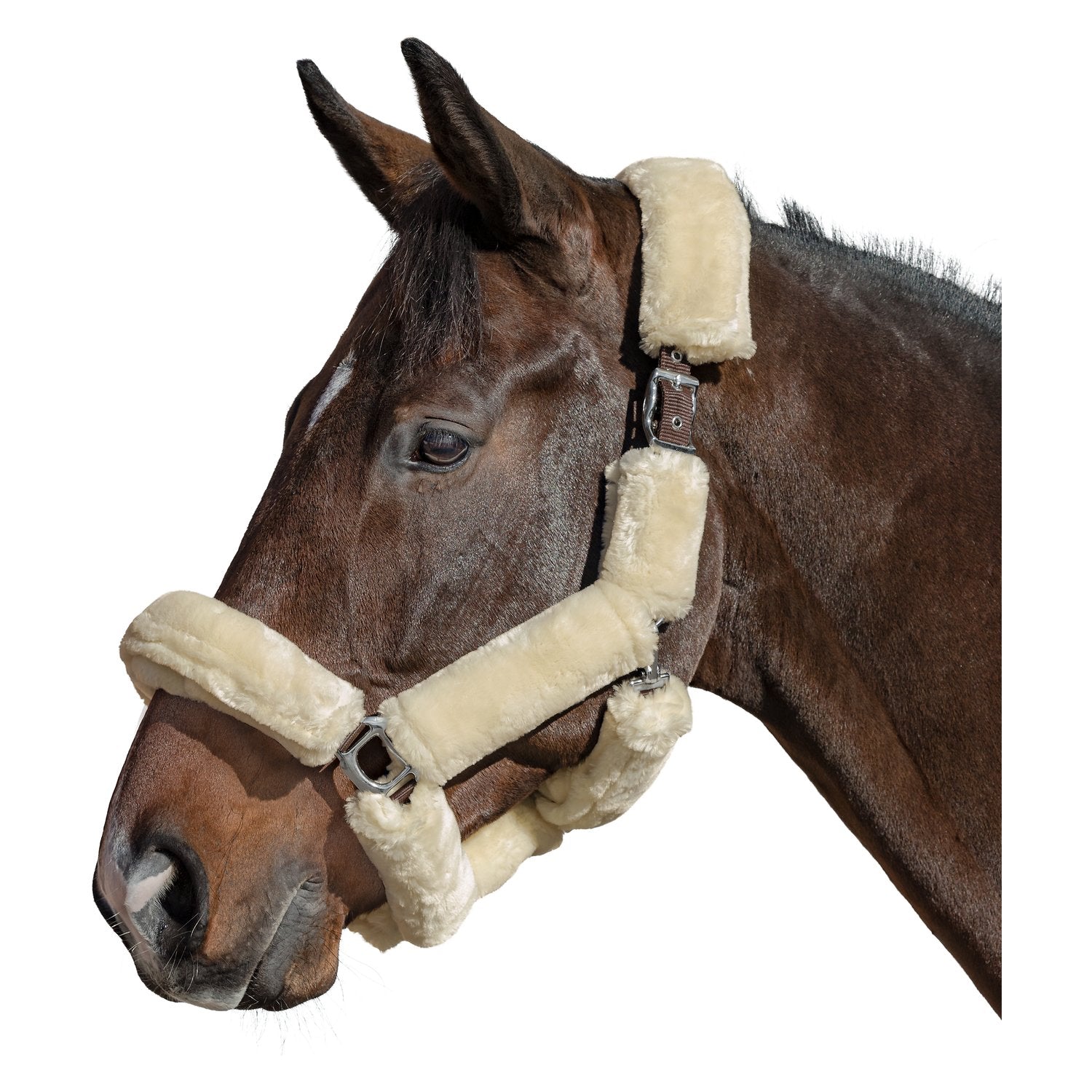 Das Stall- und Transporthalfter Barcelona von black forest ist ein strapazierfähiges Webhalfter, das durch das abklettbare FauxFur-Polster zum absoluten Wohlfühlhalfter wird. FauxFur ist ein künstliches Lammfell, das täuschend echt, weich und anschmiegsam und waschbar ist. Scheuer- und Druckstellen werden vorgebeugt. Eine passgenaue Einstellung und Zentrierung ist durch die beidseitige Dornschnalle möglich. Mit silberfarbenen Beschlägen und Karabinerhaken.