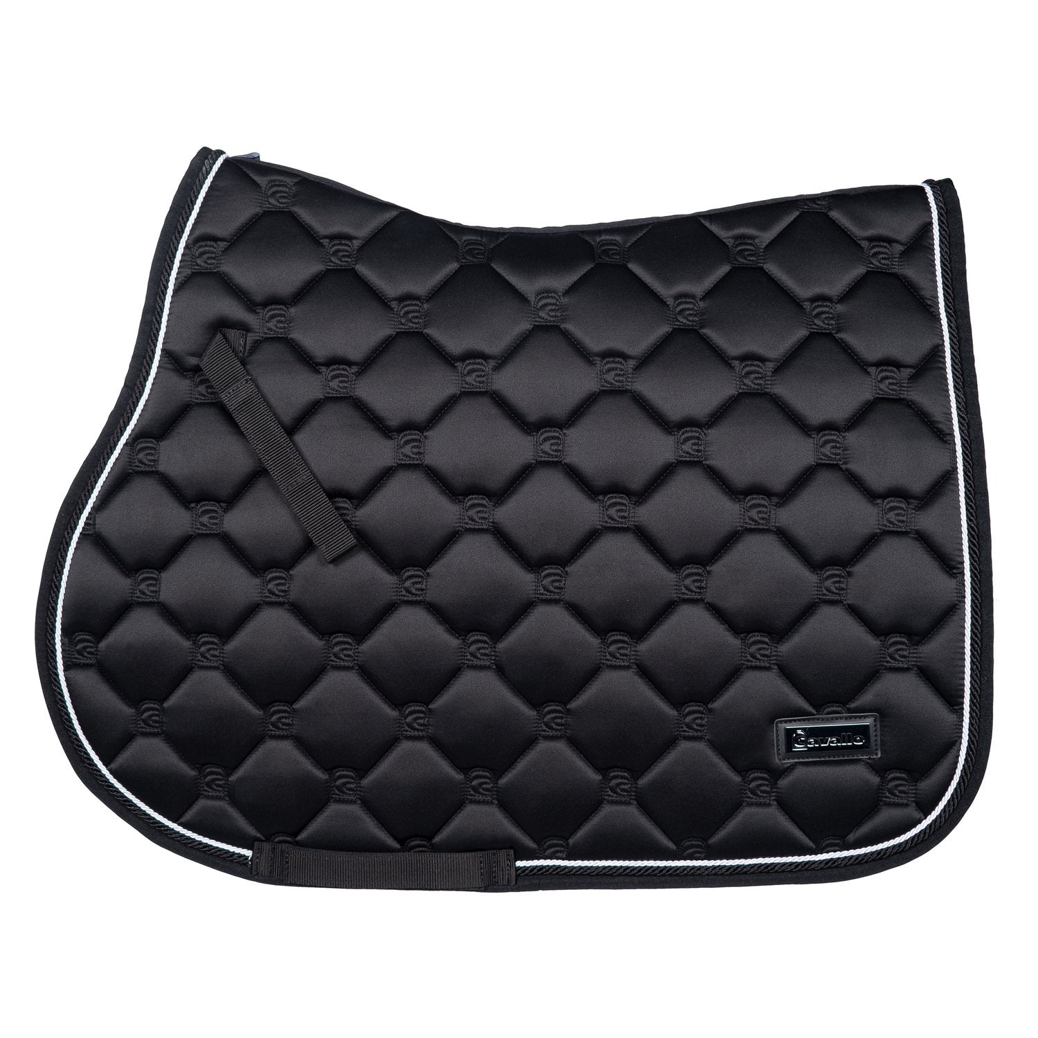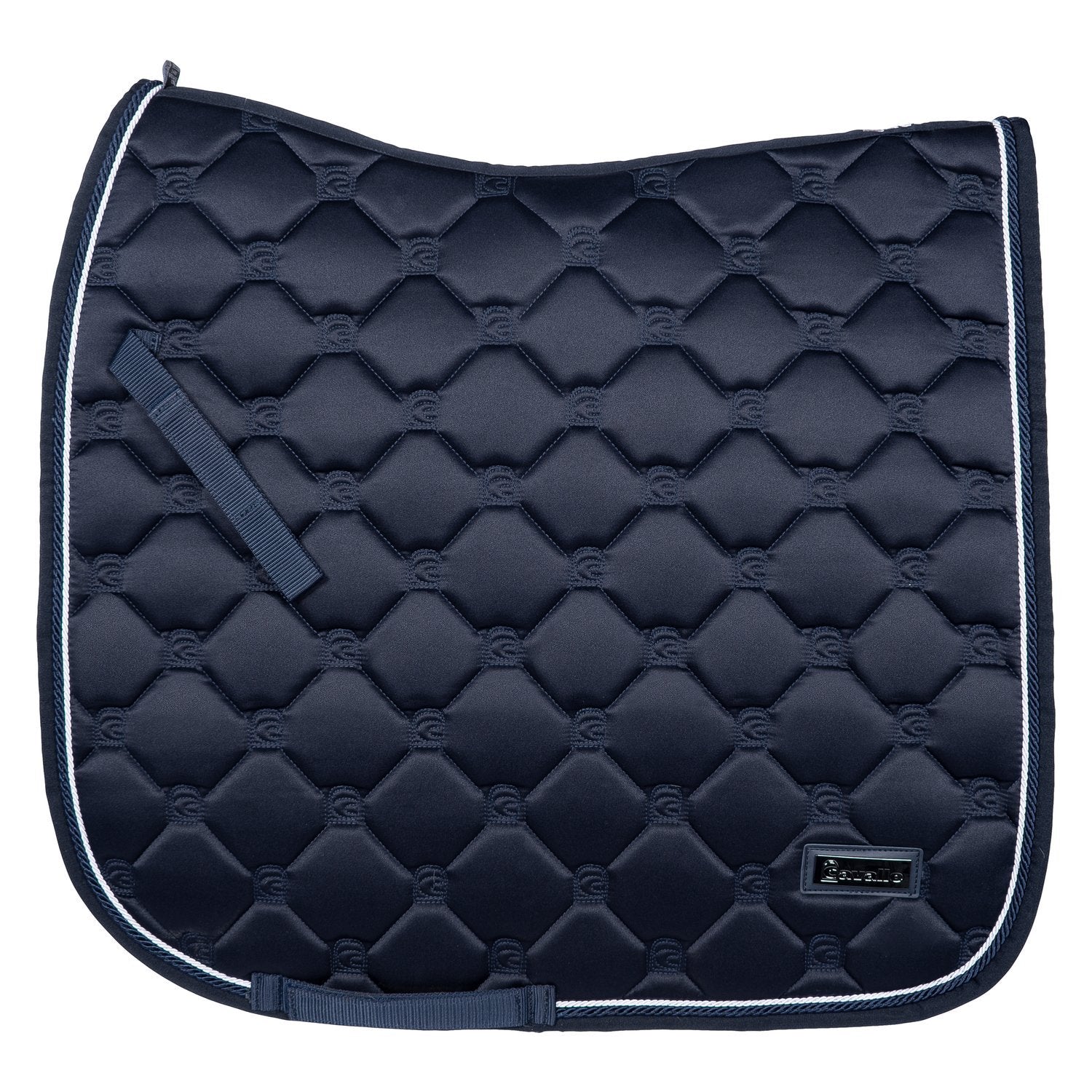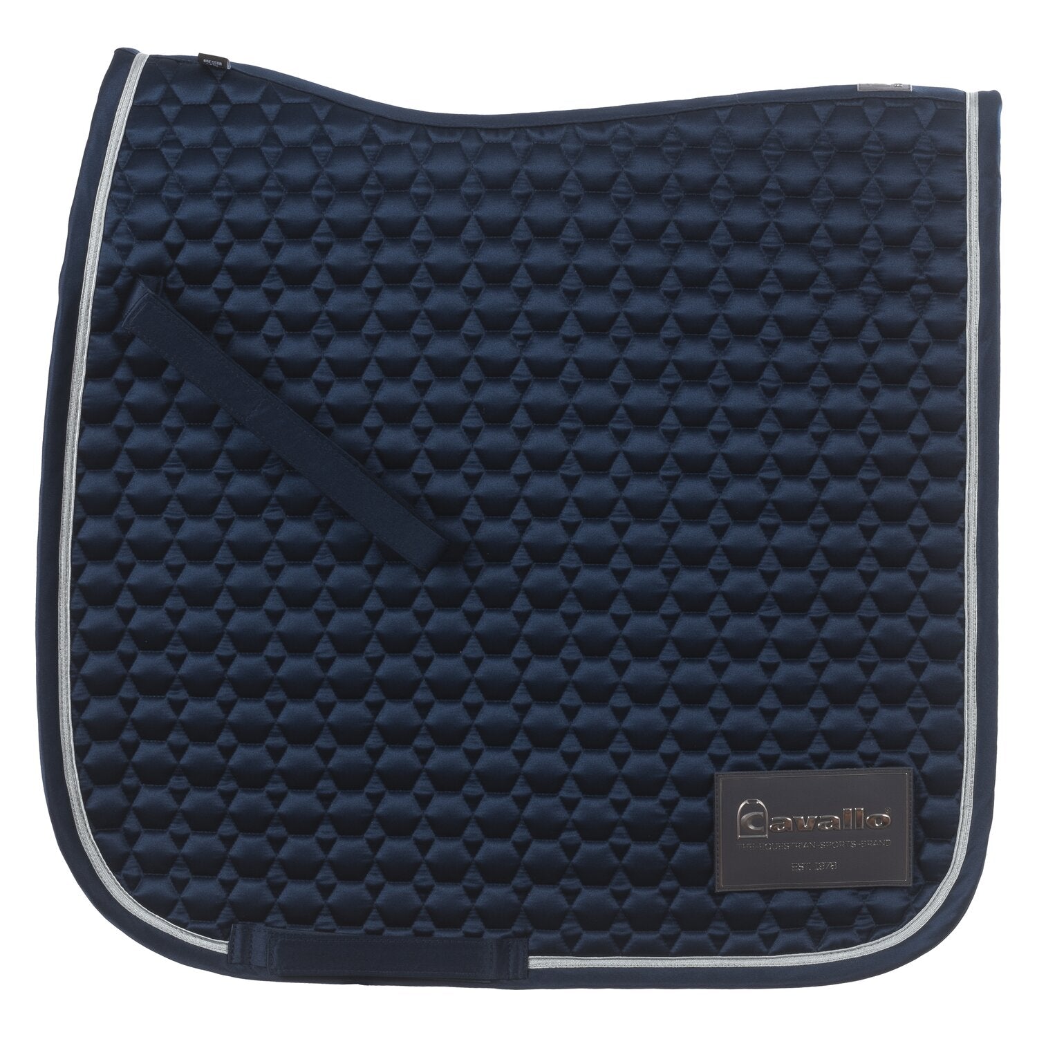 Die Schabracke aus einer robusten Materialzusammensetzung überzeugt mit ihrer grafischen Steppung und ihrem stilvollen Design. Das besonders haltbare Außenmaterial gewährleistet eine lange Lebensdauer, während zwei elegante Kontrast-Tapes die Schabracke umrahmen und optisch aufwerten. Hochwertige Cavallo-Stickereien, sowohl an den hinteren Ecken als auch auf dem Rücken, setzen edle Akzente. Das feuchtigkeitstransportierende Molton-Futter sorgt für höchsten Komfort und ist dabei besonders hautfreundlich. Die formbeständige Wattierung garantiert eine perfekte Lage auf dem Pferderücken und verhindert ein Verrutschen. Praktische Details wie die elastischen D-Ring-Laschen an den oberen Gurtstrupfen und die mit Klettverschluss fixierbaren unteren Gurtstrupfen machen die Schabracke funktional. Sie kombiniert Stil, Qualität und Komfort und ist eine ideale Wahl für den täglichen Einsatz.