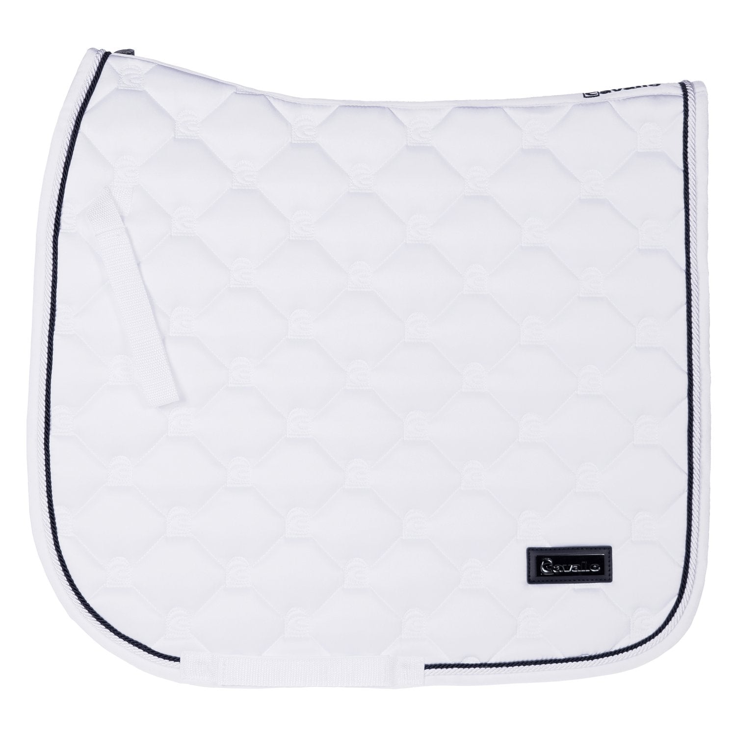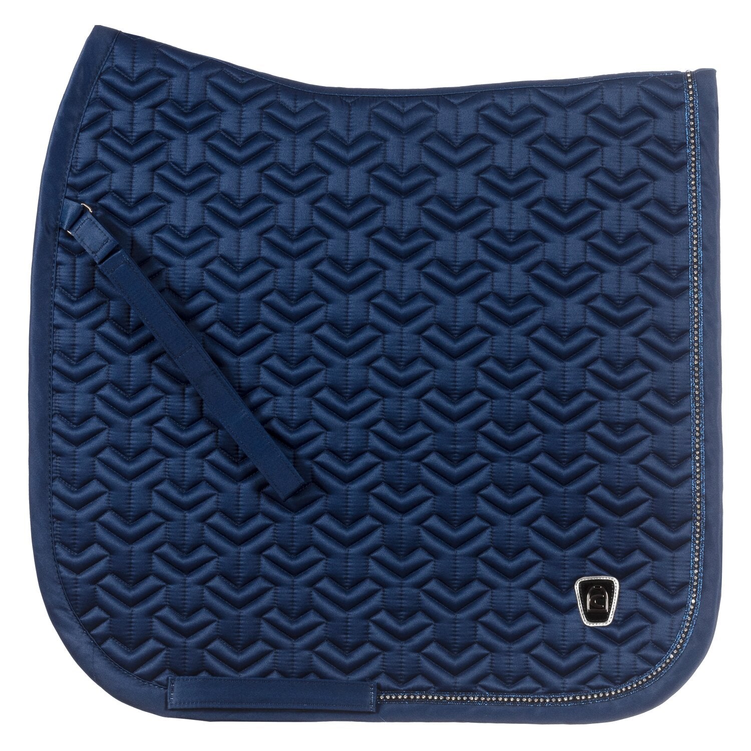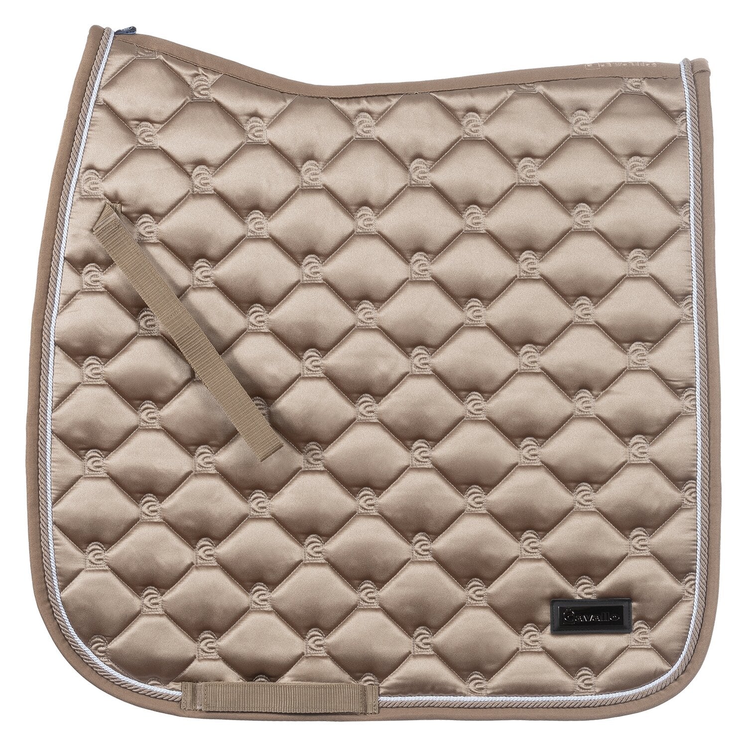 Die Schabracke aus einer robusten Materialzusammensetzung überzeugt mit ihrer grafischen Steppung und ihrem stilvollen Design. Das besonders haltbare Außenmaterial gewährleistet eine lange Lebensdauer, während zwei elegante Kontrast-Tapes die Schabracke umrahmen und optisch aufwerten. Hochwertige Cavallo-Stickereien, sowohl an den hinteren Ecken als auch auf dem Rücken, setzen edle Akzente. Das feuchtigkeitstransportierende Molton-Futter sorgt für höchsten Komfort und ist dabei besonders hautfreundlich. Die formbeständige Wattierung garantiert eine perfekte Lage auf dem Pferderücken und verhindert ein Verrutschen. Praktische Details wie die elastischen D-Ring-Laschen an den oberen Gurtstrupfen und die mit Klettverschluss fixierbaren unteren Gurtstrupfen machen die Schabracke funktional. Sie kombiniert Stil, Qualität und Komfort und ist eine ideale Wahl für den täglichen Einsatz.