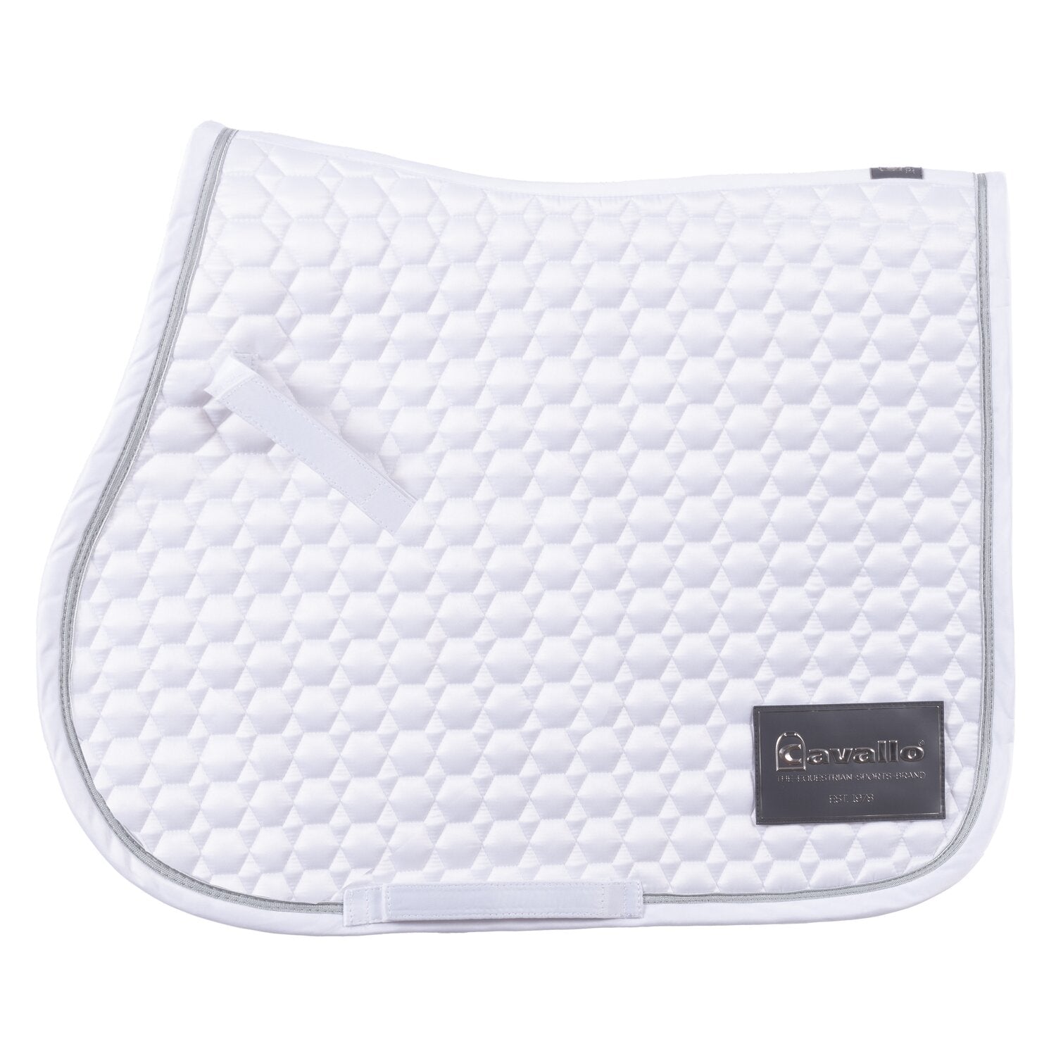 Funktionaler wie die CAVALJOLLY von Cavallo kann eine Schabracke nicht sein. Sie kommt mit Allover Steppung in Waben-Optik und verfügt über ein abnehmbares Label, an dem die Startnummer angebracht werden kann. Somit findet sie sowohl beim Training wie auch auf dem Reitturnier ihren Einsatz. Das Obermaterial bietet in Kombination mit dem schnell trocknenden, feuchtigkeitsabsorbierenden und hautfreundlichen Mesh-Untermaterial höchsten Komfort. Eine formbeständige Wattierung ermöglicht der Schabracke eine perfekte Lage auf dem Pferderücken, während die oberen Klettverschluss-Strupfenschlaufen und die unteren Gurtschlaufen mit drei inneren Verschlussschlaufen für eine exakte Positionierung des Sattels sorgen. Abgerundet wird das Design durch das silberne Piping, das die Schabracke einrahmt. Inklusive Startnummer-Set mit vier Zahlenfeldern!
