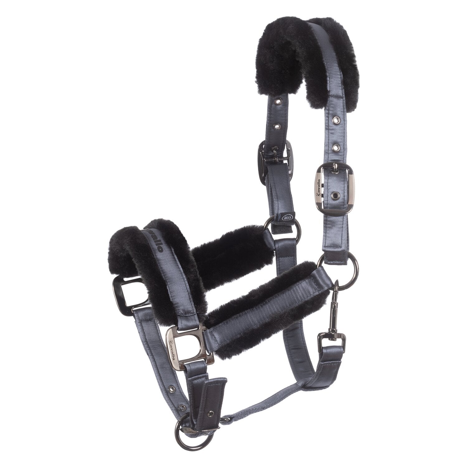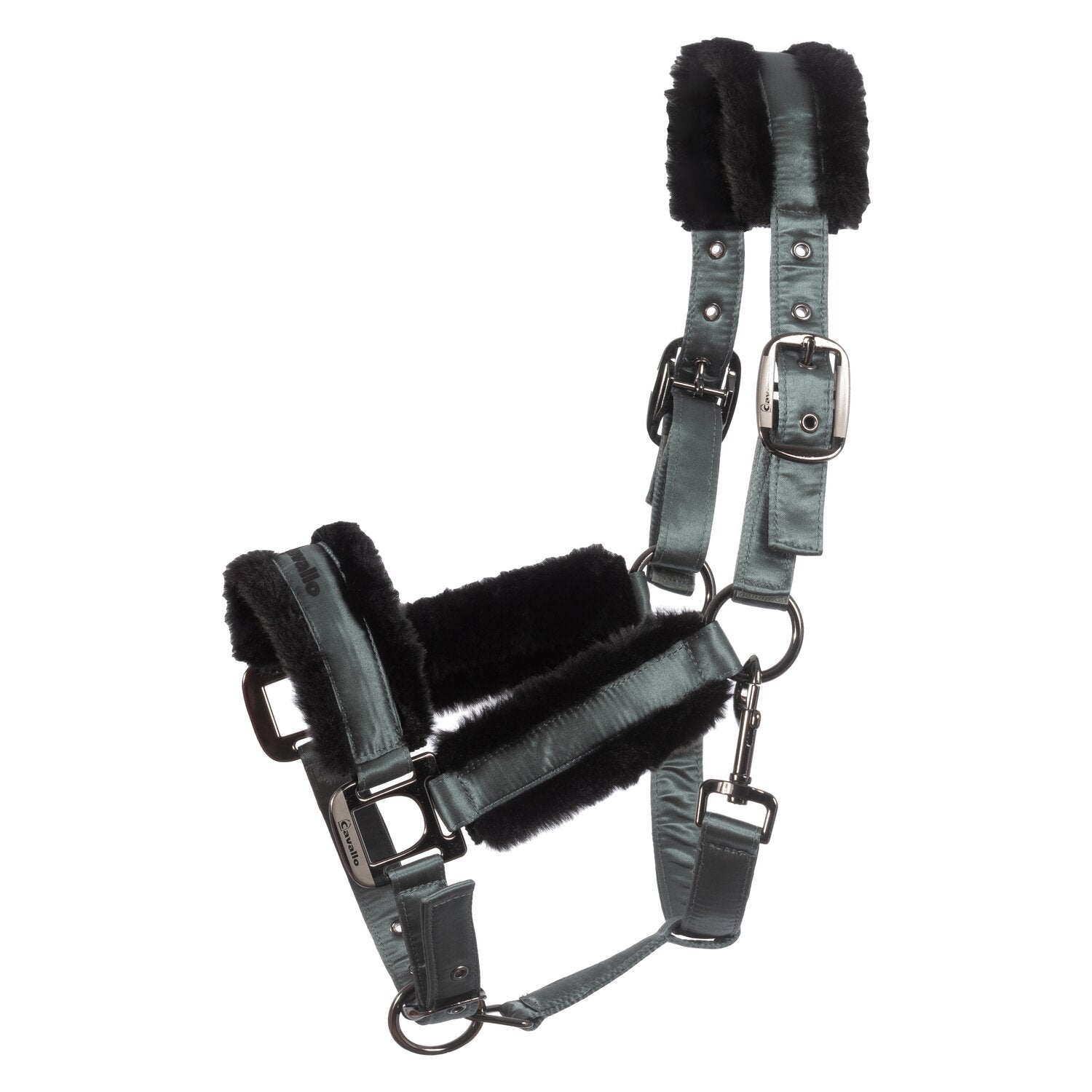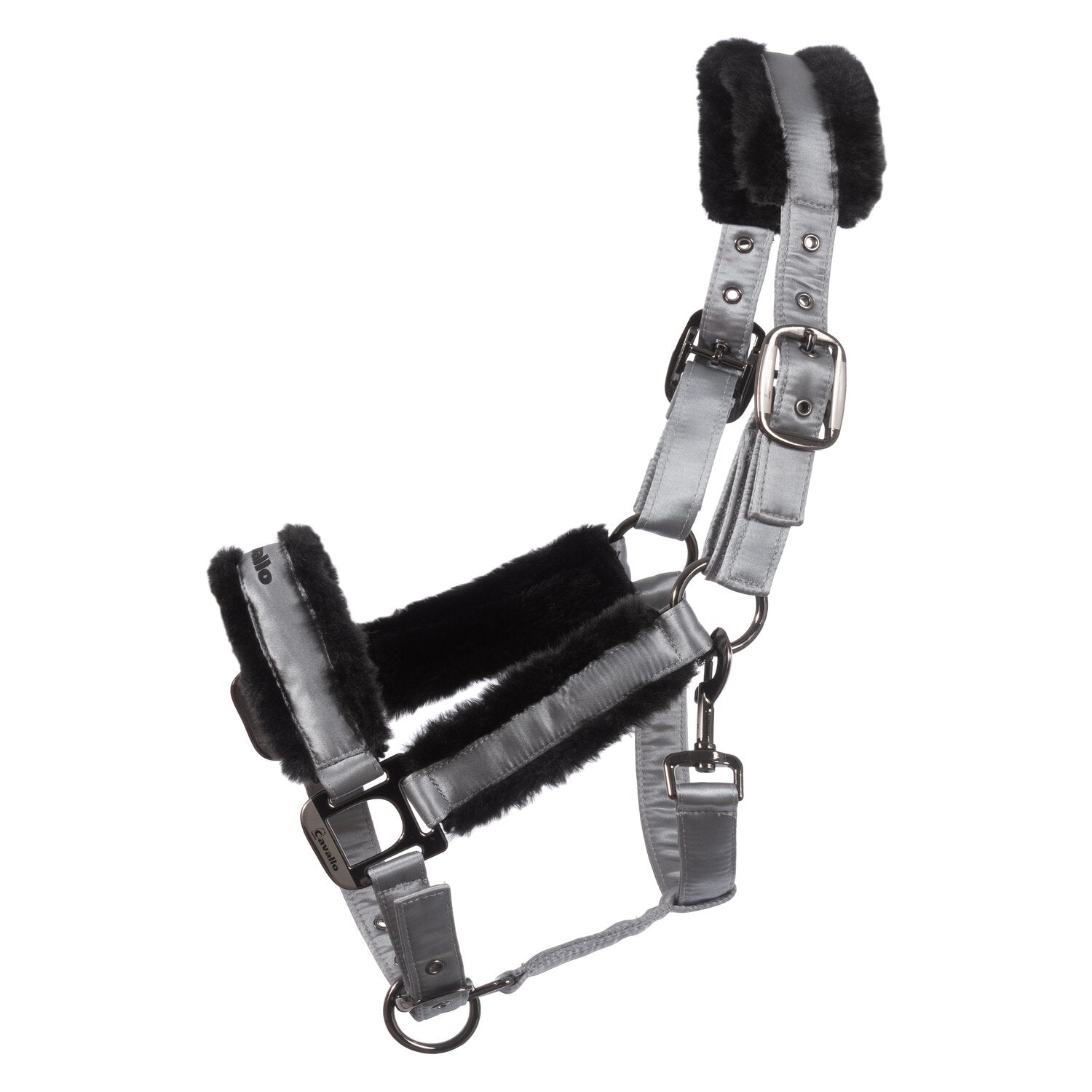 Dieses elegante Halfter CAVALJERO von Cavallo vereint Komfort, Stil und Funktionalität in einem Produkt. Aus strapazierfähigem Material mit kontrastfarbener Polsterung an Nase, Backen und Genick. Um das Halfter perfekt zentrieren und anpassen zu können, verfügt es über beidseitige Dornschnallenverschlüsse und einen zusätzlichen im Kinnbereich. Beherrscht wird das Design durch die silberfarbenen Beschläge in Gunmetal-Optik und den Cavallo-Print auf dem Nasenband