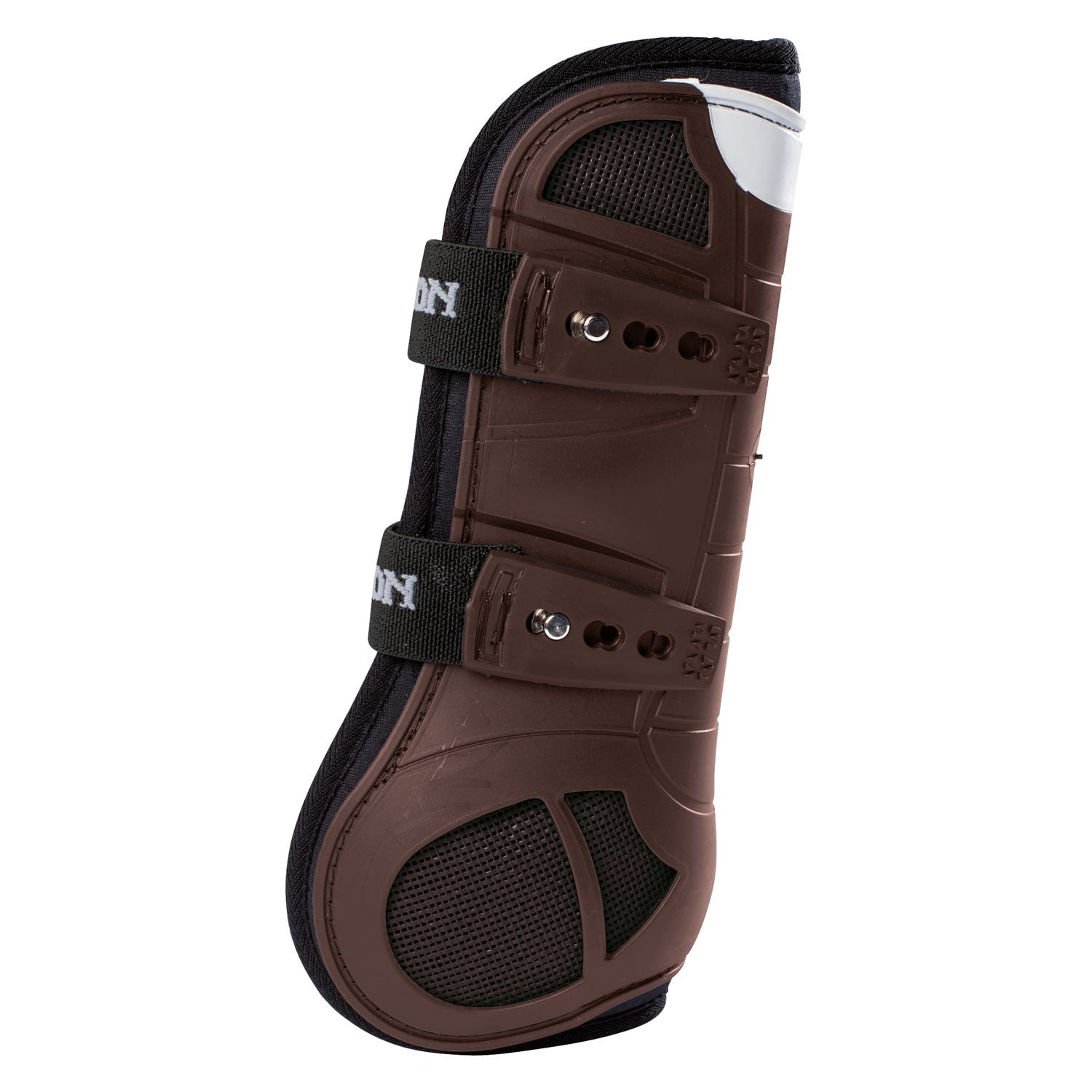 Die bewährten Allround Gamaschen von ESKADRON. Rundum geschlossene Vorderbeingamasche, die zwischen dem strapazierfähigen Kunstleder Außenmaterial und dem 5,5 mm starken Innenfutter eine Hartschale eingearbeitet hat, die das Pferdebein vor Stößen schützt. Durch die drei Klettverschlüsse ist die Gamasche einfach und schnell anzubringen. Das PVC Außenmaterial ist schmutzabweisend und leicht zu reinigen. Die Gamasche ist nicht für Wassereinritte geeignet.