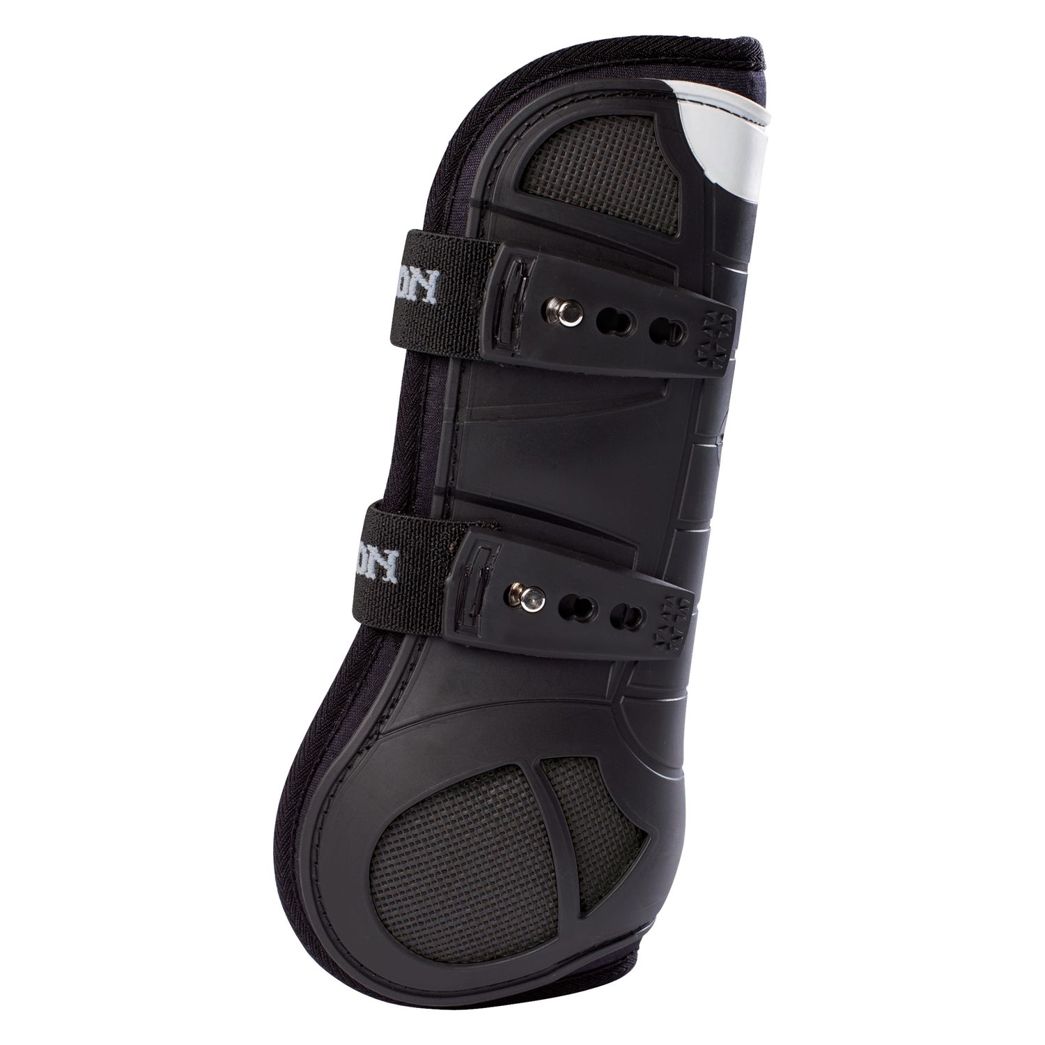 Perfekter Schutz vor Stößen und Schlägen. Mit TPE-Außenschale und zwei dreifach verstellbaren Steckverschlüssen. Die ausgesparte Spornmulde und die Flexisoft-Zone sorgen für optimale Bewegungsfreiheit.