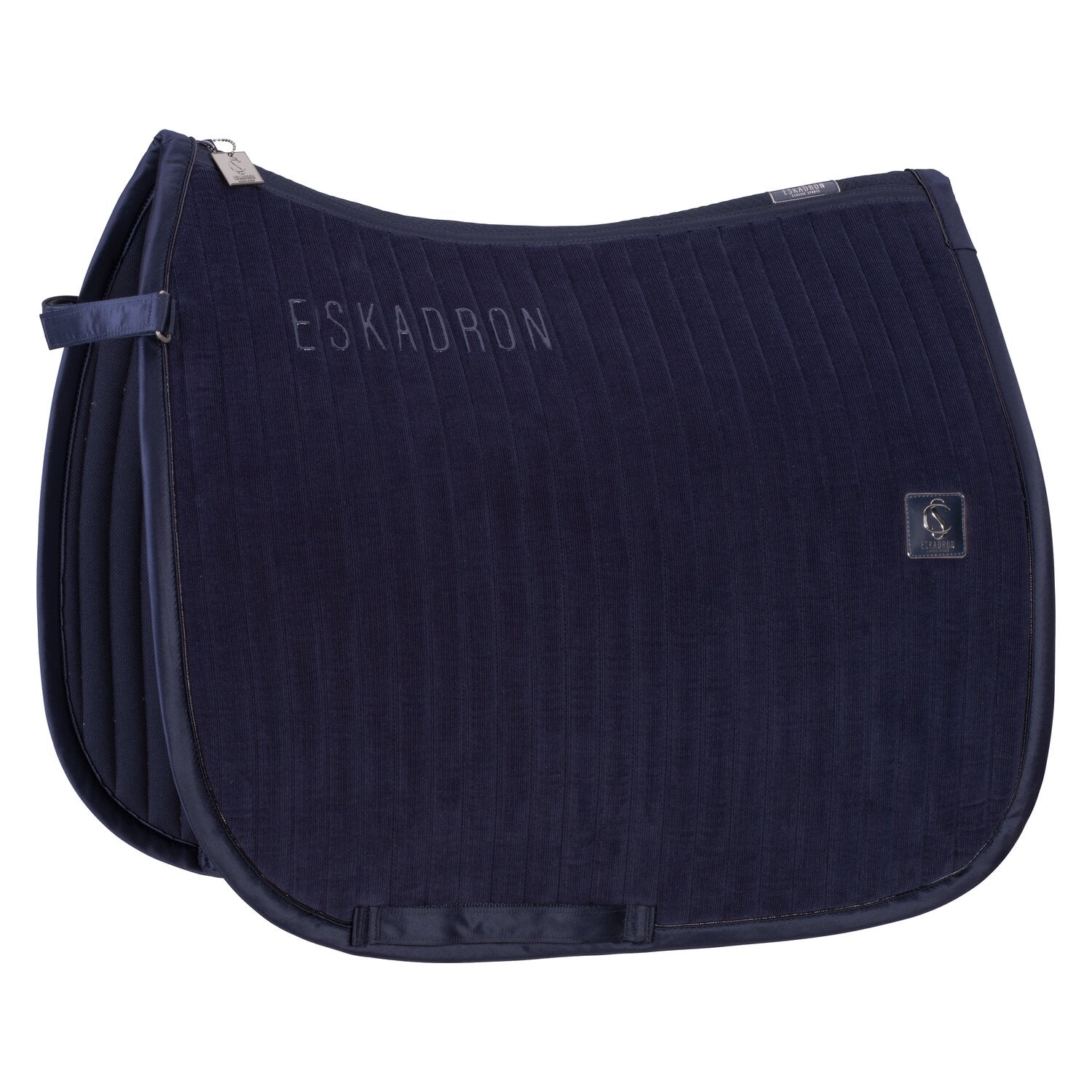 Die edle Samt-Schabracke aus der ESKADRON Heritage Kollektion punktet mit ihrem hochwertigen Erscheinungsbild. Das Obermaterial ist in Kombination mit der Cool/Dry-Unterseite besonders atmungsaktiv und leitet die Feuchtigkeit ab. Mit kompakter und aufwendiger Steppung inklusive Gurtschlaufen mit dreifacher Fixierungsoption für eine exakte Positionierung und einem Innostrap-System für eine optimale Frontfixierung. Das beidseitige Heritage Emblem und die auffällig geflochtene Lurex-Breitkordel auf der Glossy-Einfassung unterstreichen den edlen Charakter der Schabracke.
