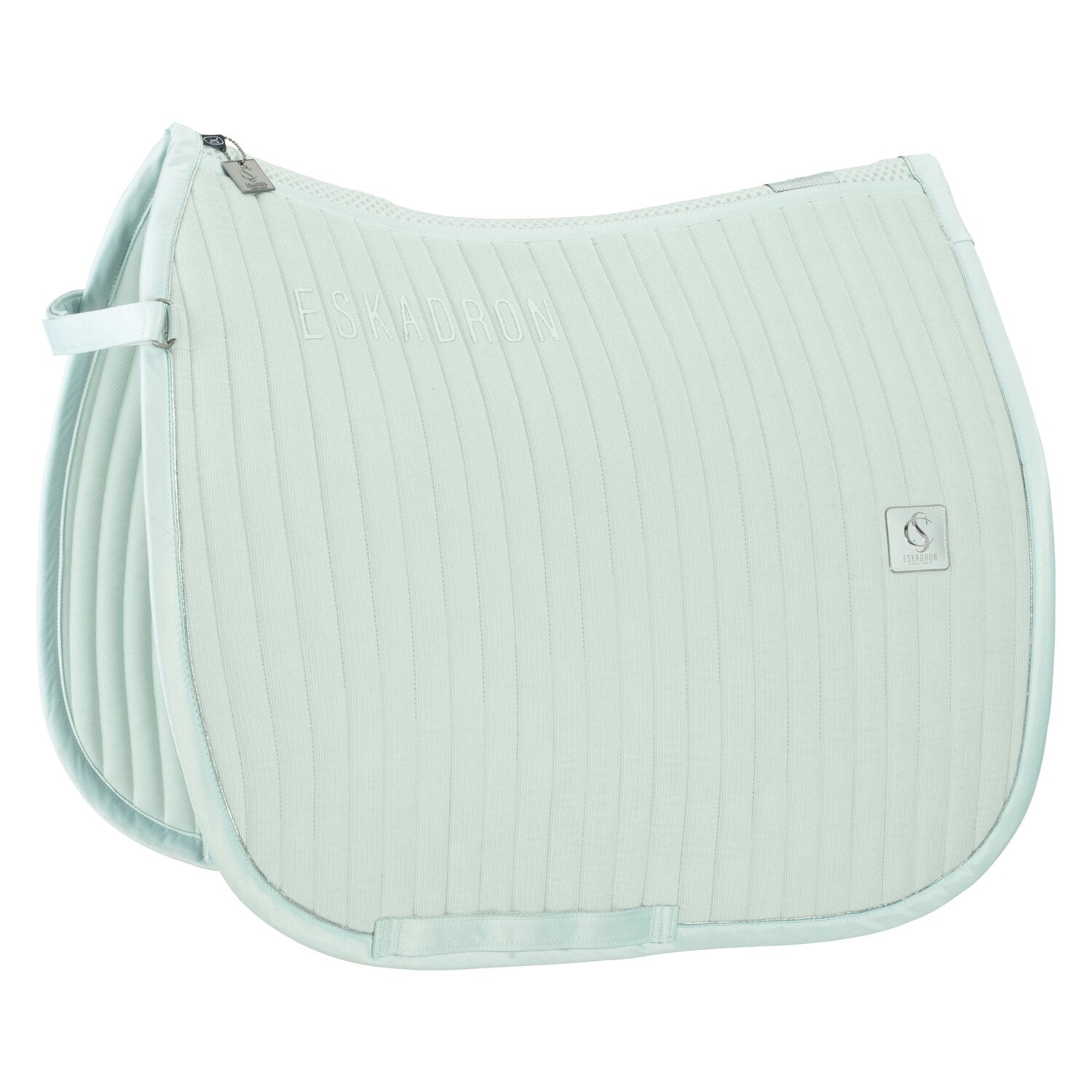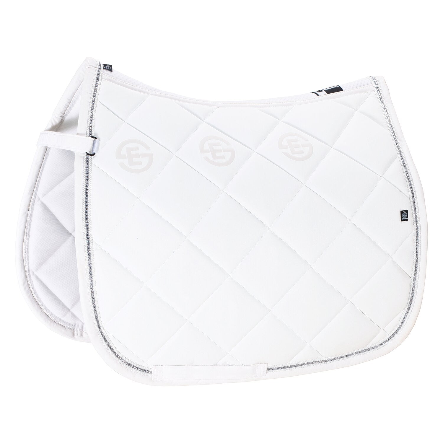 Die Schabracke Sparkle Crystal von ESKADRON aus der Dynamic Frühjahr/Sommer Kollektion 2024 besticht durch modische Details. Für höchsten Tragekomfort sorgen das dezent funkelnde Obermaterial mit Cool/Dry-Unterseite, voluminöser Steppung und Mesh-Rückenkanal. Dank Anti-Slip Silikonflächen im Sattelbereich, Innostrap-System zur Frontfixierung und Gurtschlaufen mit dreifacher Fixierungsoption liegt die Schabracke perfekt unter dem Sattel, ohne zu verrutschen. Die elegante »Kordel-Kristallstein-Kordel« Kombination auf der funkelnden Einfassung und die ESKADRON-Metall-Plakette verschaffen dieser Sattelunterlage einen luxuriösen Look.