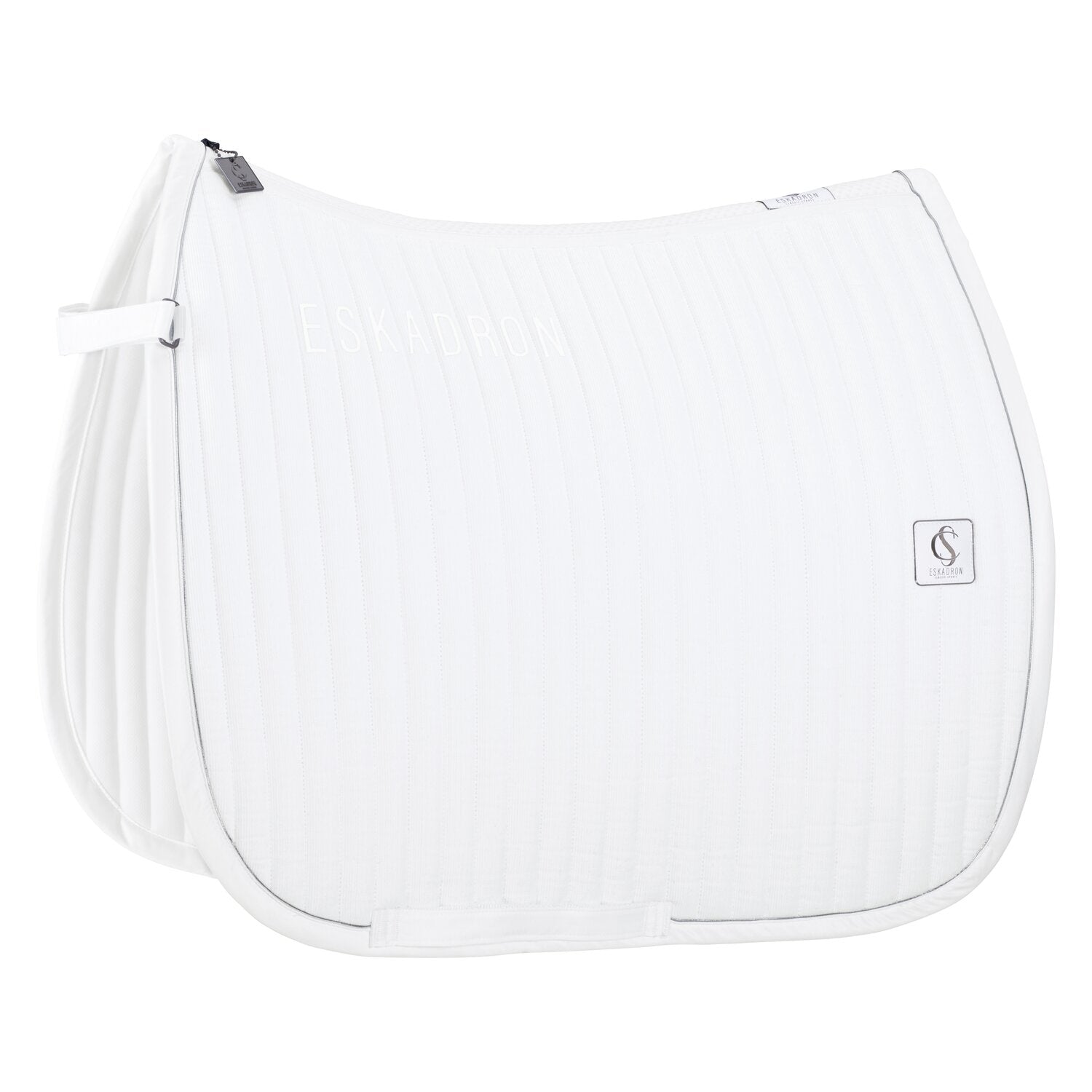 Bei dieser Schabracke von ESKADRON handelt es sich um eine Sattelunterlage aus schickem Cord - ein Stoff mit besonderer Optik und Struktur. Neben den optischen Eigenschaften überzeugt sie auch in Sachen Funktion. Mit feuchtigkeitsableitender Cool/Dry-Unterseite, kompakter, vertikaler Steppung mit mitteldicker Füllung und Mesh-Rückenkanal für eine optimale Luftzirkulation. Das Innostrap-System ist für eine optimale Frontfixierung und die Gurtschlaufen mit dreifacher Fixierungsoption sind für eine exakte Positionierung verantwortlich. Darüber hinaus punkten die dezente Lurex-Biese auf der Mattgloss-Einfassung und das ESKADRON Emblem beidseitig. • Schickes Cord-Obermaterial und Cool/Dry-Unterseite • Kompakte, vertikale Steppung mit mitteldicker Füllung • Dezente Lurex-Biese auf Mattgloss-Einfassung • ESKADRON Emblem, beidseitig • Mesh-Rückenkanal für optimale Luftzirkulation • Innostrap-System für optimale Frontfixierung • Gurtschlaufen mit dreifacher Fixierungsoption für exakte Positionierung