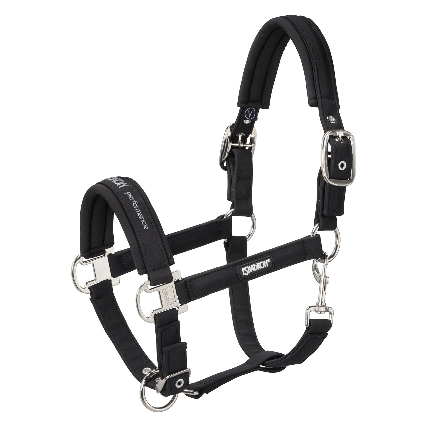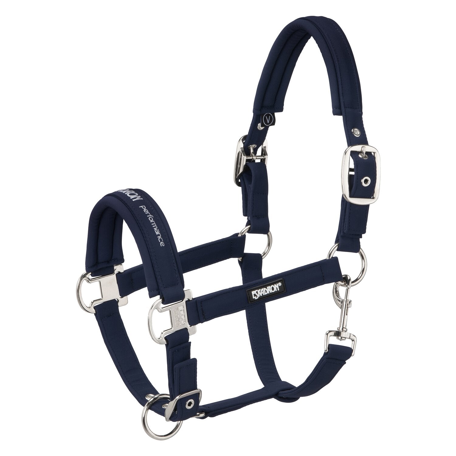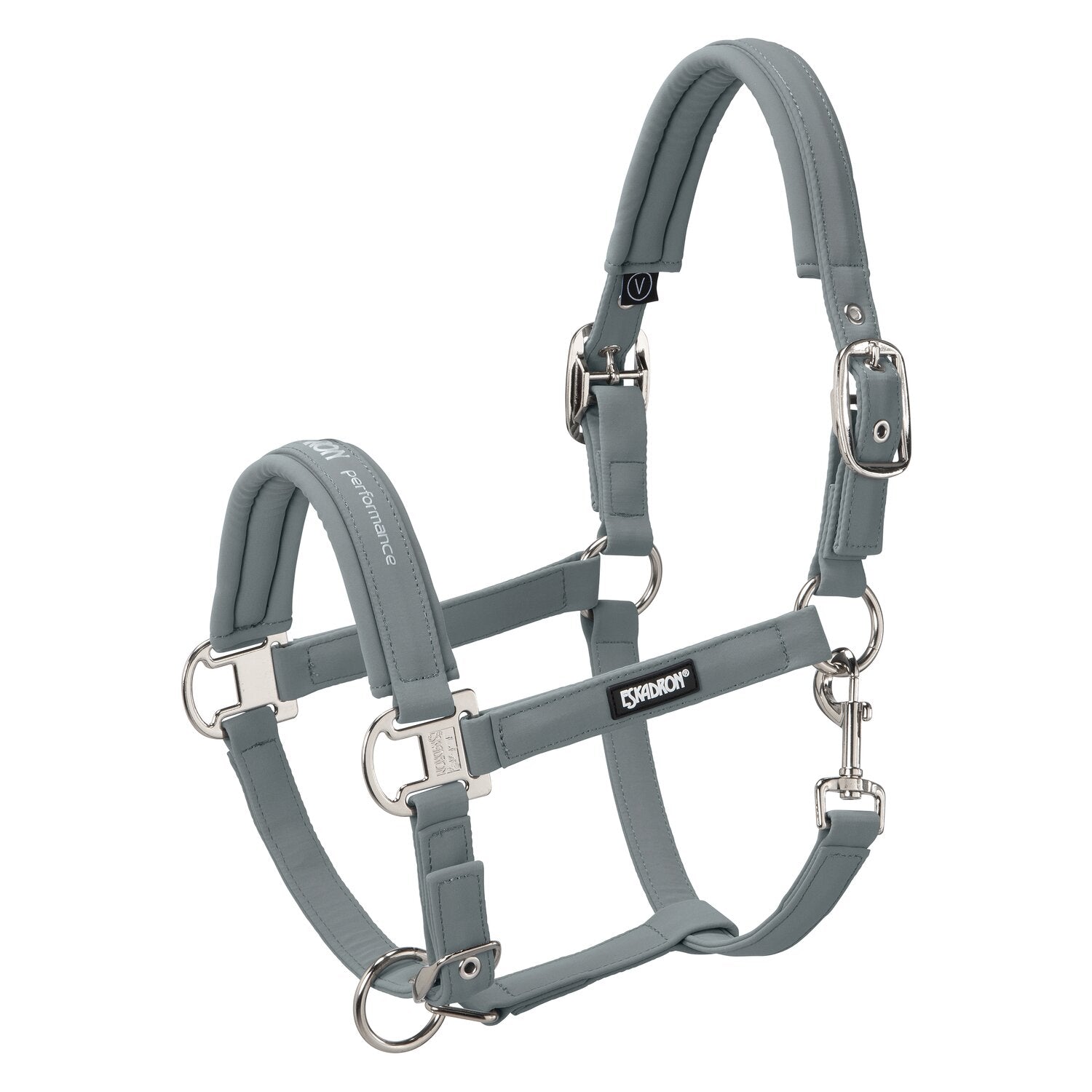 Das hochwertige Halfter von ESKADRON mit toller Softshell-Oberfläche passt perfekt zur Basic Kollektion. Durch das reißfeste Gurtband innen ist es besonders strapazierfähig, wobei die weiche und pflegeleichte Softshell Polsterung einen optimalen Tragekomfort verspricht. Perfekt angepasst und zentriert wird das Halfter durch drei Dornschnallenverschlüsse an Kinn- und Backenstücken. Die eleganten silberfarbenen Beschläge und die Prägung am Nasenstück unterstreichen den ausdrucksstarken Charakter.