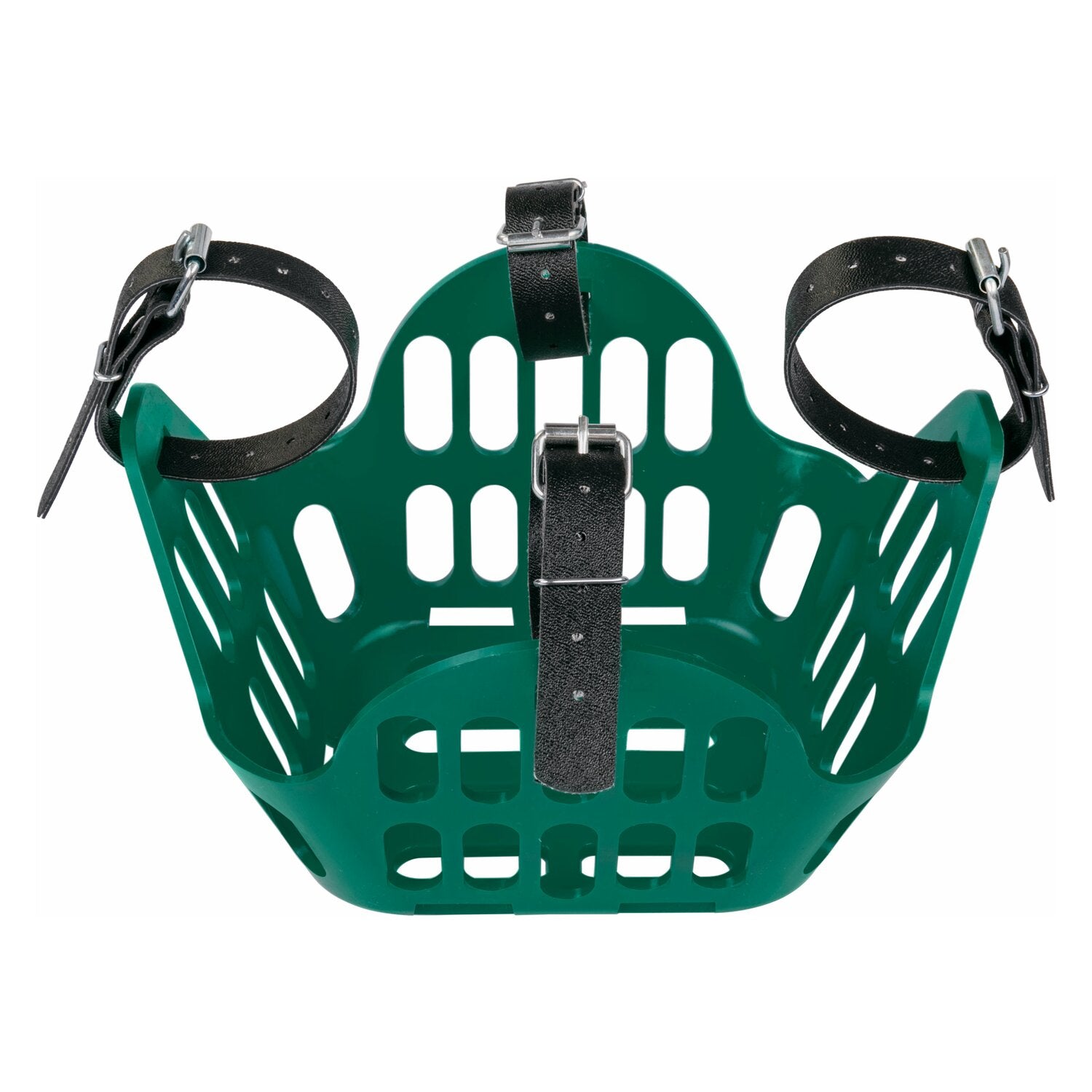 Der greenguard Weidemaulkorb schränkt die Grasaufnahme gezielt so weit ein, dass sich der Zeitraum der Futteraufnahme deutlich verlängert. Daraus ergibt sich eine dem Pferdeorganismus weit besser angepasste Futterverwertung, durch die das Risiko einer Hufrehe deutlich abnimmt. Die Formgebung des Maulkorbs gewährleistet dabei auch die dringend erforderliche Luftzirkulation im Bereich der Nüstern, so dass ein Wärmestau und ein ungesundes, feucht-warmes Mikroklima innerhalb des Maulkorbs vermieden werden. Atmung, Wasseraufnahme und Sozialverhalten werden nicht beeinträchtigt. Mit praktischer Vorrichtung für Einlegeplatten Art. Nr. 81092. Diese sind mit verschiedenen Öffnungen erhältlich und schonen die Zähne. Der Maulkorb kann an dem dazu passenden Halfter von greenguard Art. 8105 angebracht werden. Gr. VB ca. 12/13 cm/Seite Gr. WB ca. 13/14 cm/Seite