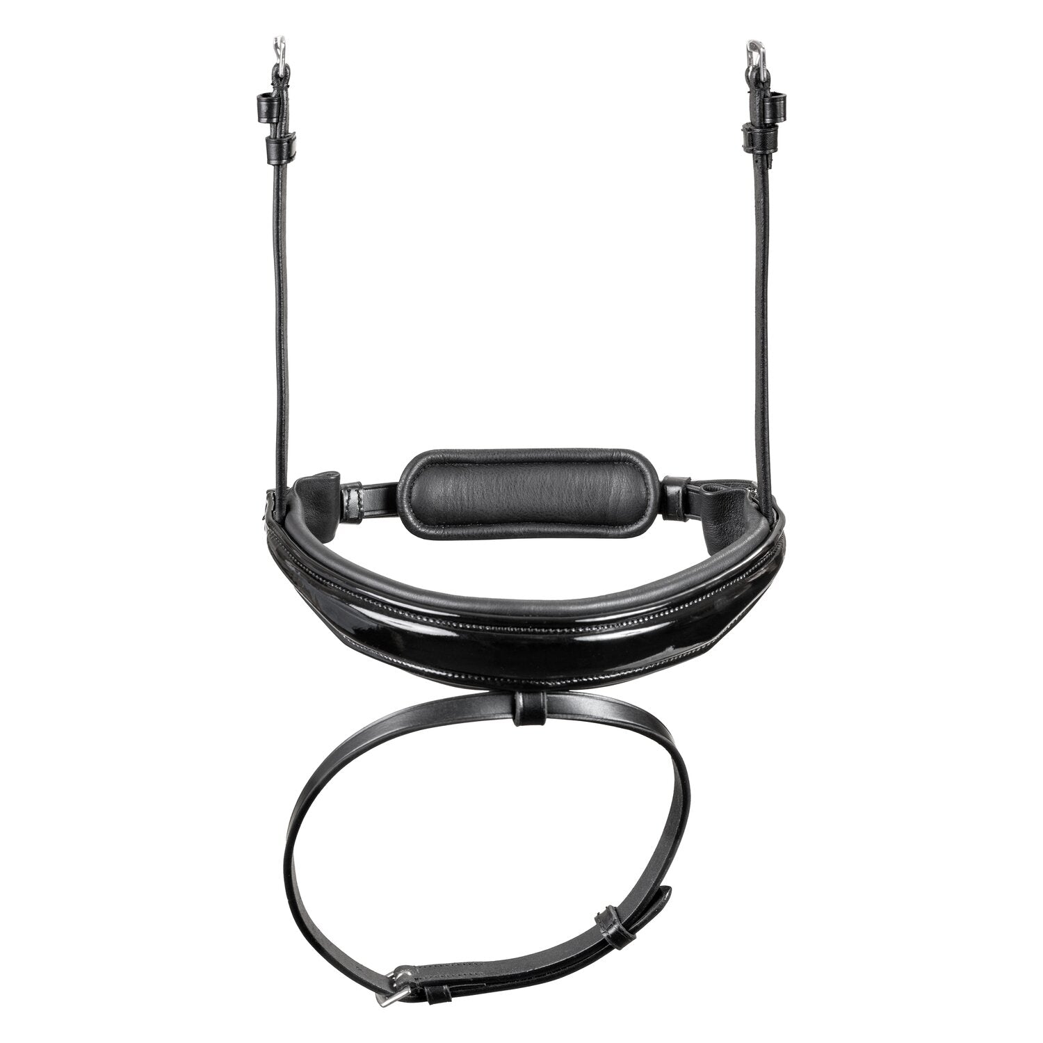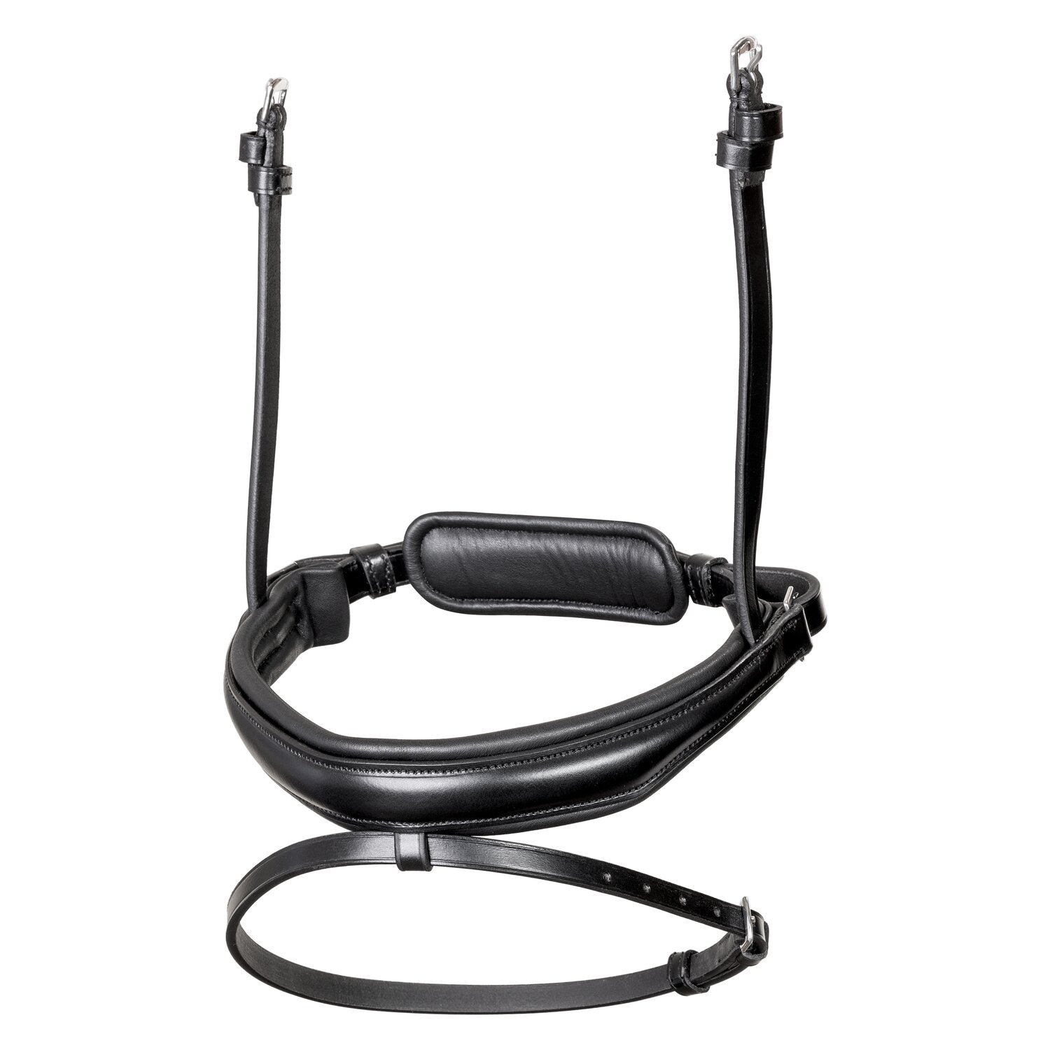 Im Umfang einstellbarer Halsriemen aus bestem Qualitätsleder. Zur beidseitigen Befestigung eines Reitkennzeichens, welches in einigen Bundesländern beim Ausritt angebracht werden muss. Größe Pony: 100 - 117 cm Größe Warmblut: 114 - 138 cm