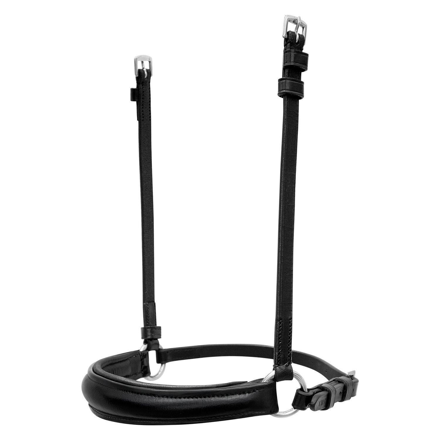 Der gepolsterte Sperrriemen von MONTIVUM besteht aus hochwertigem Qualitätsleder und ist mit einer robusten Edelstahlschnalle ausgestattet. Er eignet sich ideal für kombinierte Reithalfter und überzeugt durch seine sorgfältige Verarbeitung, die Langlebigkeit und sicheren Halt bei jeder Reitaktivität garantiert.