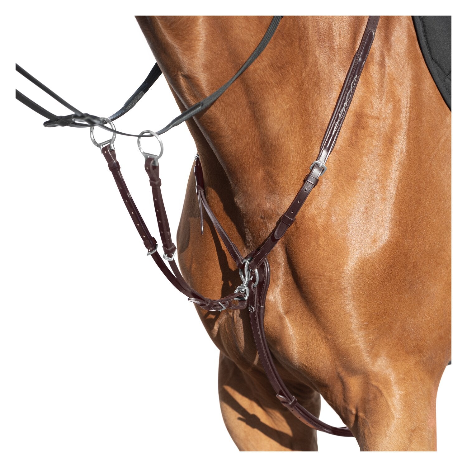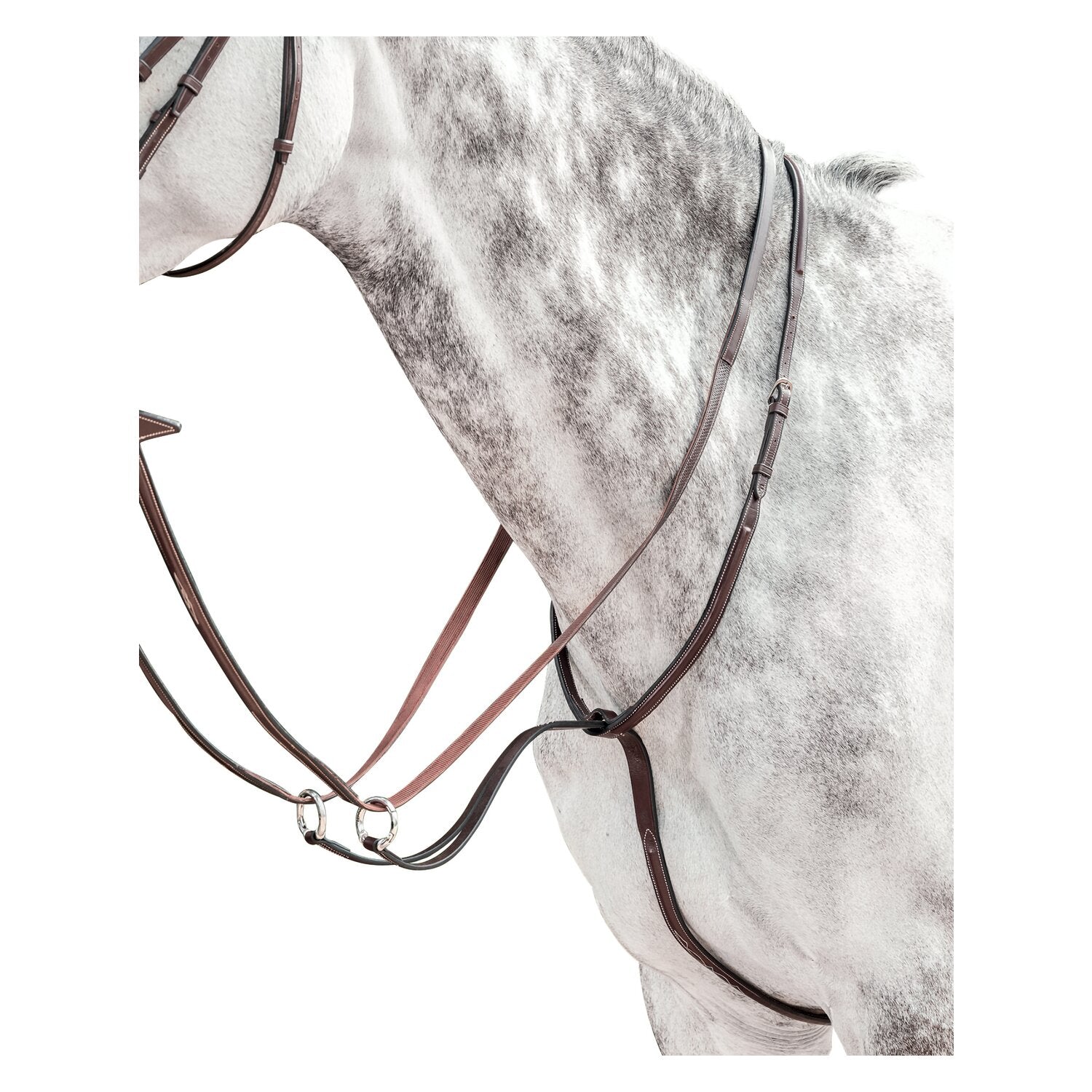 Das Martingal Renaissance von PRESTIGE besticht durch seine hochwertige Verarbeitung und einfache Handhabung. Aus feinstem europäischem Leder in hervorragender Verarbeitung. Der fein bombierte Halsriemen sorgt für angenehmen Tragekomfort, während das praktische Klippsystem ein schnelles Ein- und Ausschnallen der Zügel ermöglicht.