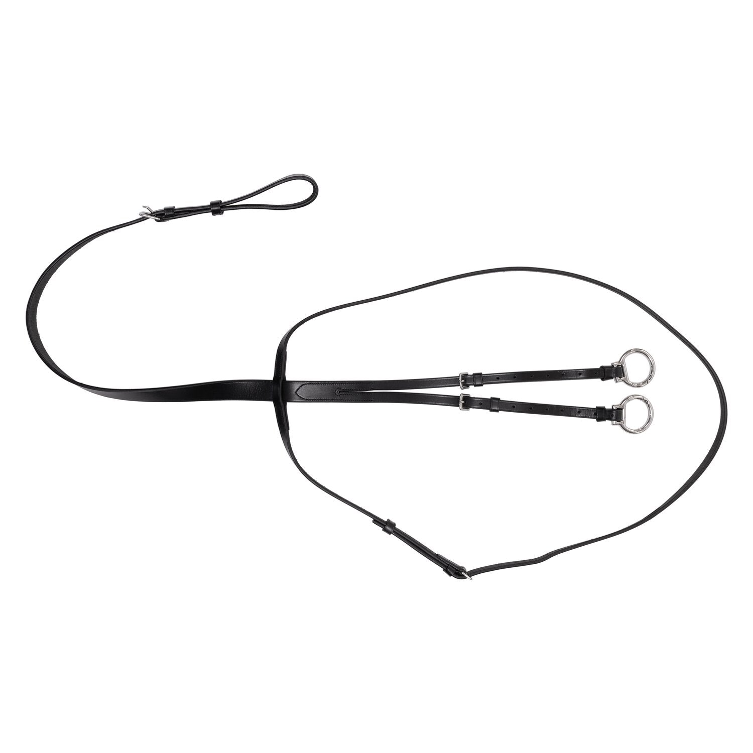 Die Martingalgabel aus dem Hause PRESTIGE ist nicht nur funktional, sie überzeugt optisch durch die zur Kollektion passenden Kontrastnähte. Aus bestem Leder mit elastischen, runden Strippen und Lederzwischenstück, durch das du die Weite der Ringenden beliebig festlegen kannst. Ohne die Zügel öffnen zu müssen, kannst du diese durch die Ringe mit EVO-Klippsystem sekundenschnell einfädeln. Mit Lederende, das sich durch eine Dornschnalle in der Länge verstellen lässt und an jedem beliebigen Vorderzeug angebracht werden kann.