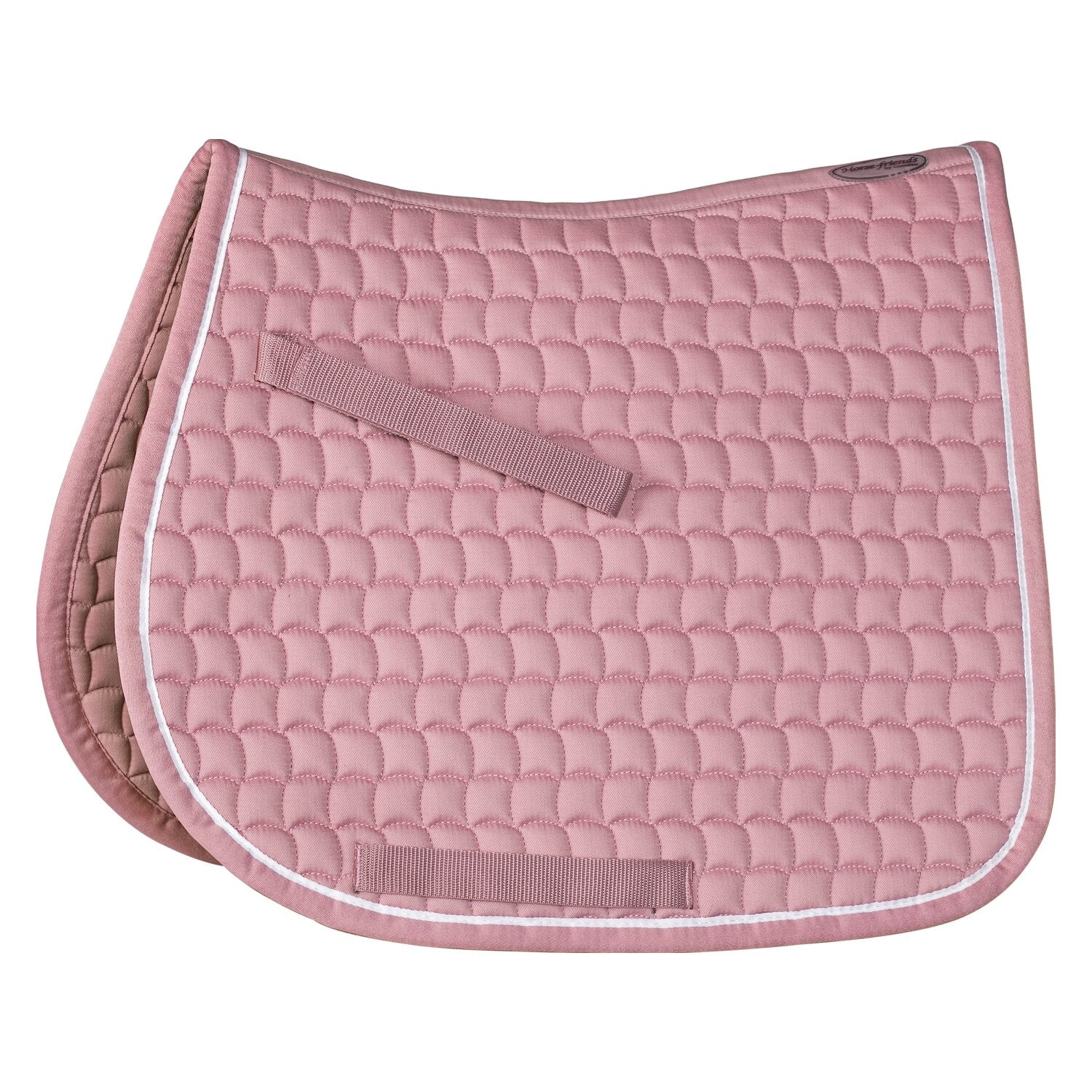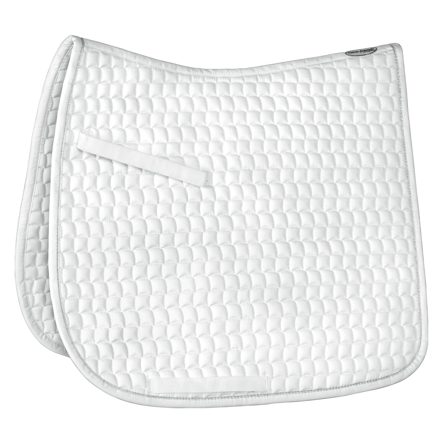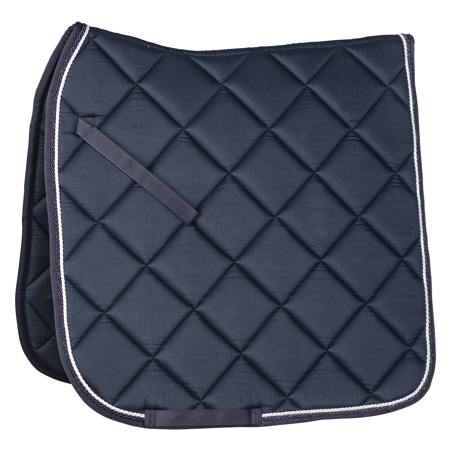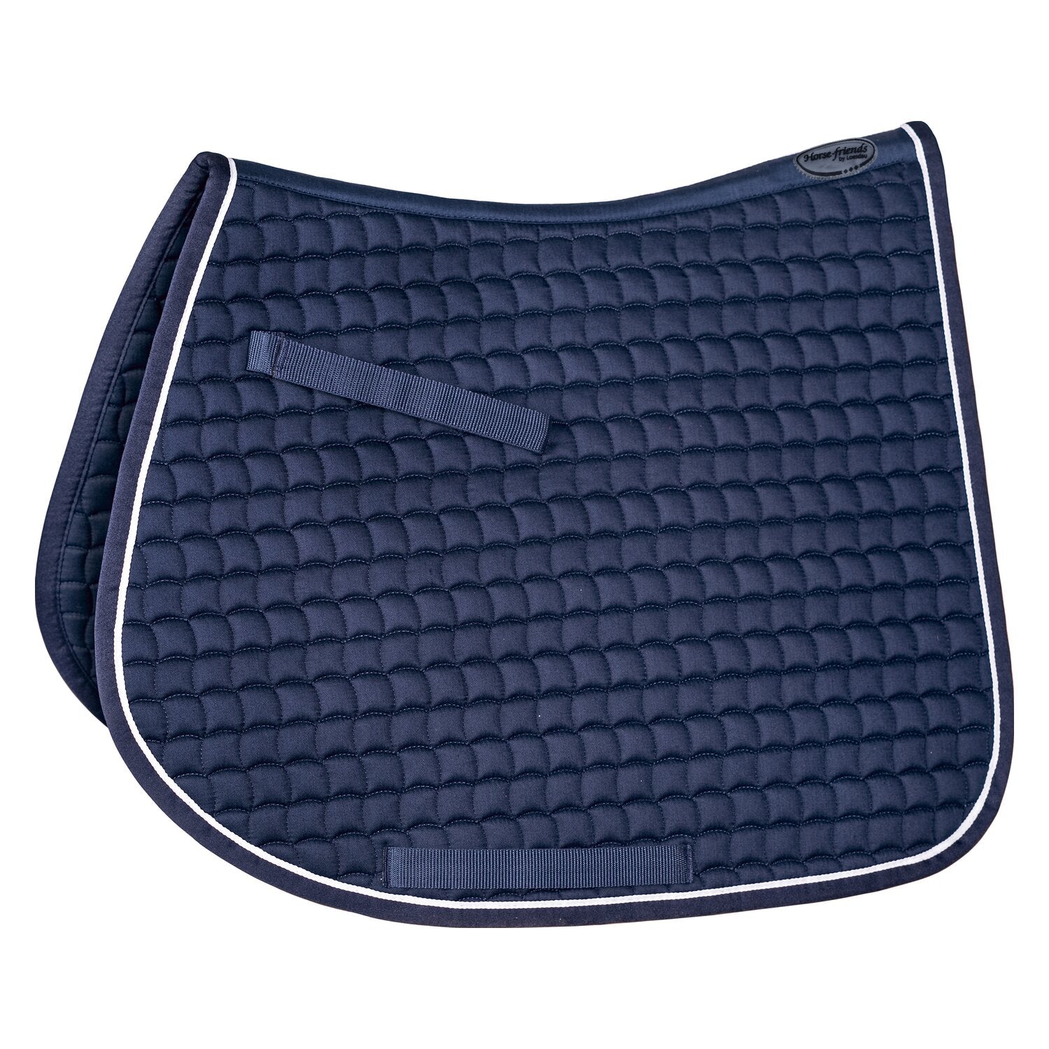 Anatomisch geformte Schabracke mit großer Diamantsteppung. Zur Fixierung dienen verstellbare Strupfen- und Gurtschlaufen. Die unifarbene und die glitzernde Zierkordel verleihen der Schabracke das gewisse Etwas.