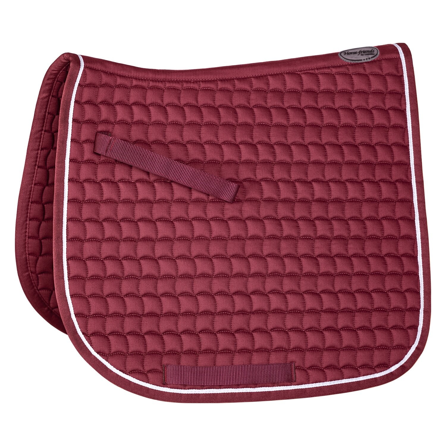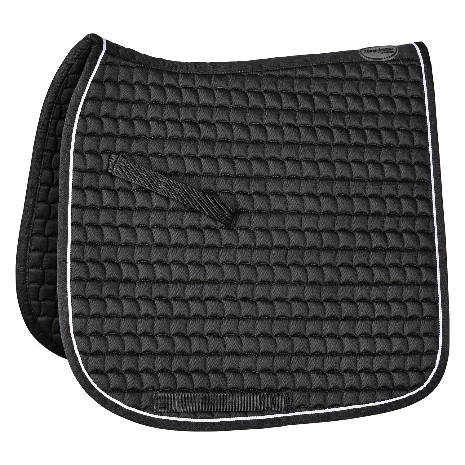 Das Sattelpad von Horse-friends bietet maximalen Komfort und Anpassungsfähigkeit durch den thermoelastischen Memory-Schaumstoff. Dieser sorgt für eine gleichmäßige Druckverteilung und eine perfekte Anpassung an den Pferderücken. Nach der Benutzung nimmt das Pad die ursprüngliche Form wieder ein. Reib- und Scheuereffekte werden unterbunden und Stöße absorbiert. Das COOLMAX-Innenfutter sorgt für ein optimales Feuchtigkeitsmanagement. Die Klettverschluss-Schlaufen fixieren das Pad in der richtigen Position unter dem Sattel. Maße: - Rückenlänge: ca. 50 cm - Schulterbreite: ca. 54 cm - Stärke: ca. 2 cm