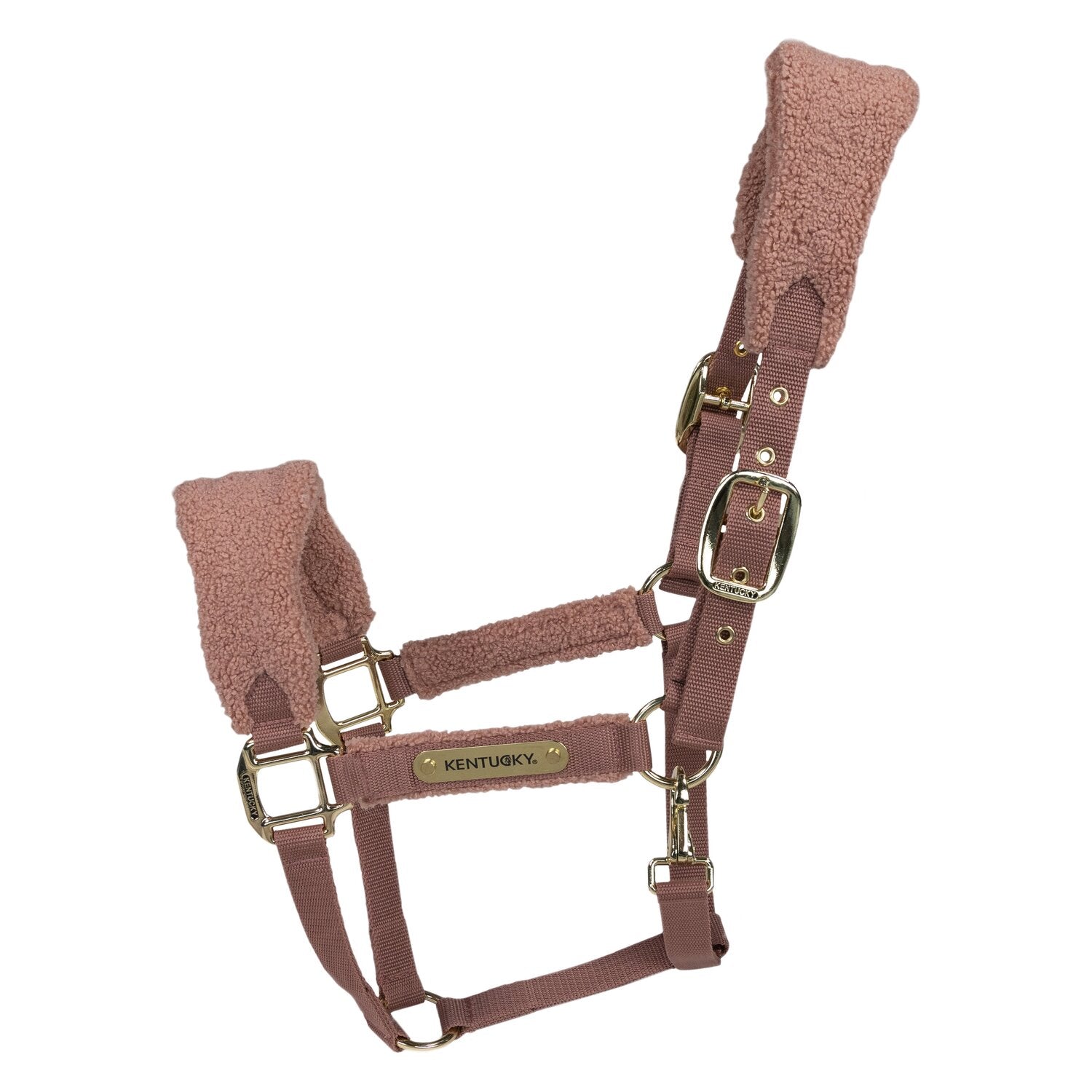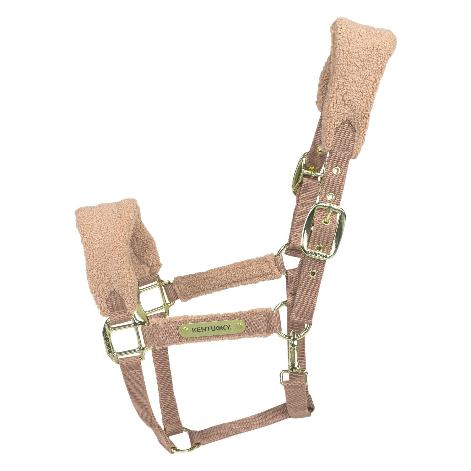KENTUCKY präsentiert ein äußerst angenehm zu tragendes Halfter, das sich nicht nur für Pferde mit empfindlicher Haut eignet, sondern auch für Reiter, die einen besonderen Look möchten. Aus robustem Material mit Teddyfleece überzogen, der eine gute Wärmeleistung bietet, sodass auf die Verwendung von echtem Pelz verzichtet werden kann. Zudem punktet das anatomisch geformte Genickstück, das beidseitig verstellbar ist. Optisch punktet die goldfarbene Plakette, auf der das Markenlogo eingraviert wurde. Diese Plakette kann umgedreht und mit dem Namen deines Pferdes graviert werden. Alle Schließen sind goldfarben und passen so auch perfekt zu den Führstricken von KENTUCKY.