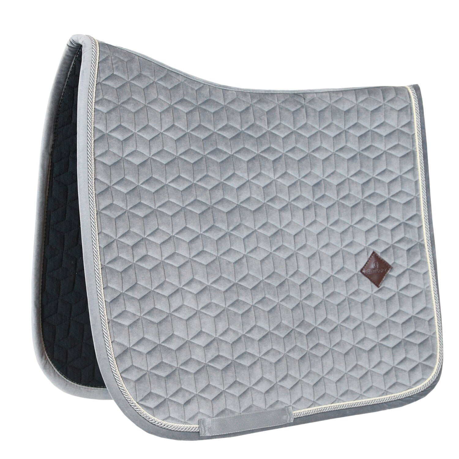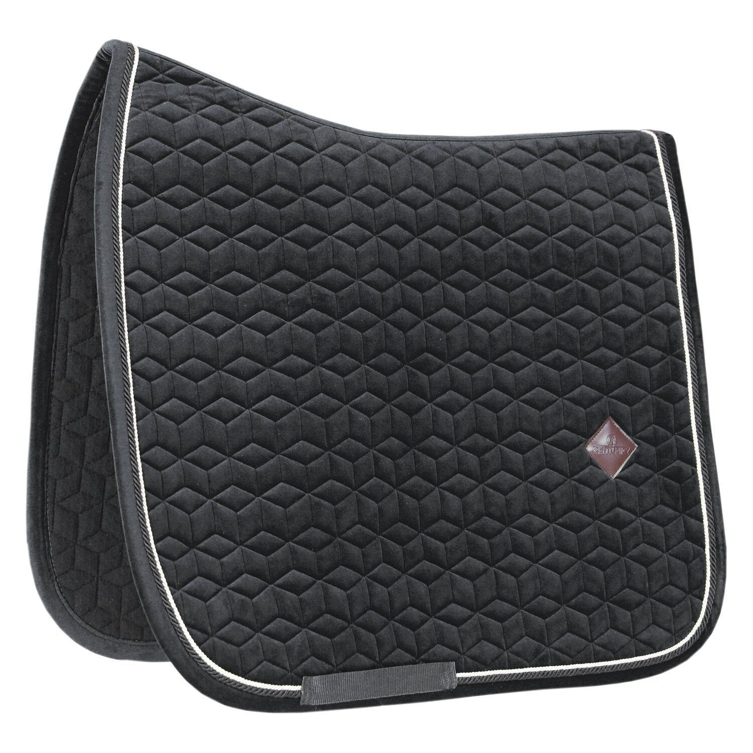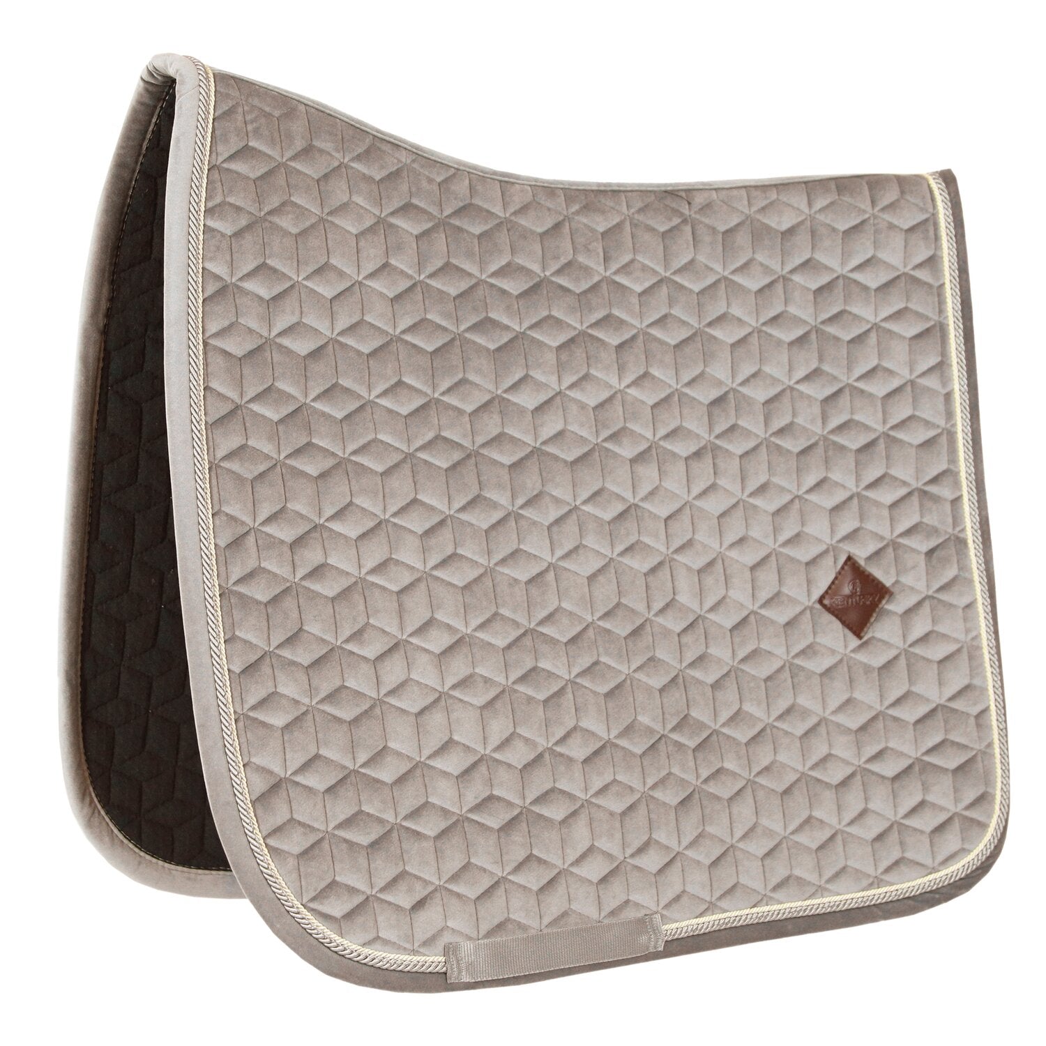KENTUCKY präsentiert eine super stylische und stilvolle Schabracke aus Samt. Durch die Kombination aus sternförmiger Steppung und hervorragender Polsterung zwischen dem Pferderücken und dem Sattel schützt sie vor Verspannungen. Ohne lästige Schlaufen zur Befestigung am Sattel, sondern nur mit einem Nylonriemen für den Gurt. Das dezente Logo aus Kunstleder ist an einer etwas höheren Stelle platziert, so dass bei Bedarf genügend Platz für deine persönliche Bestickung ist. Optisch punktet das Model durch die doppelt gedrehte Bordüre.