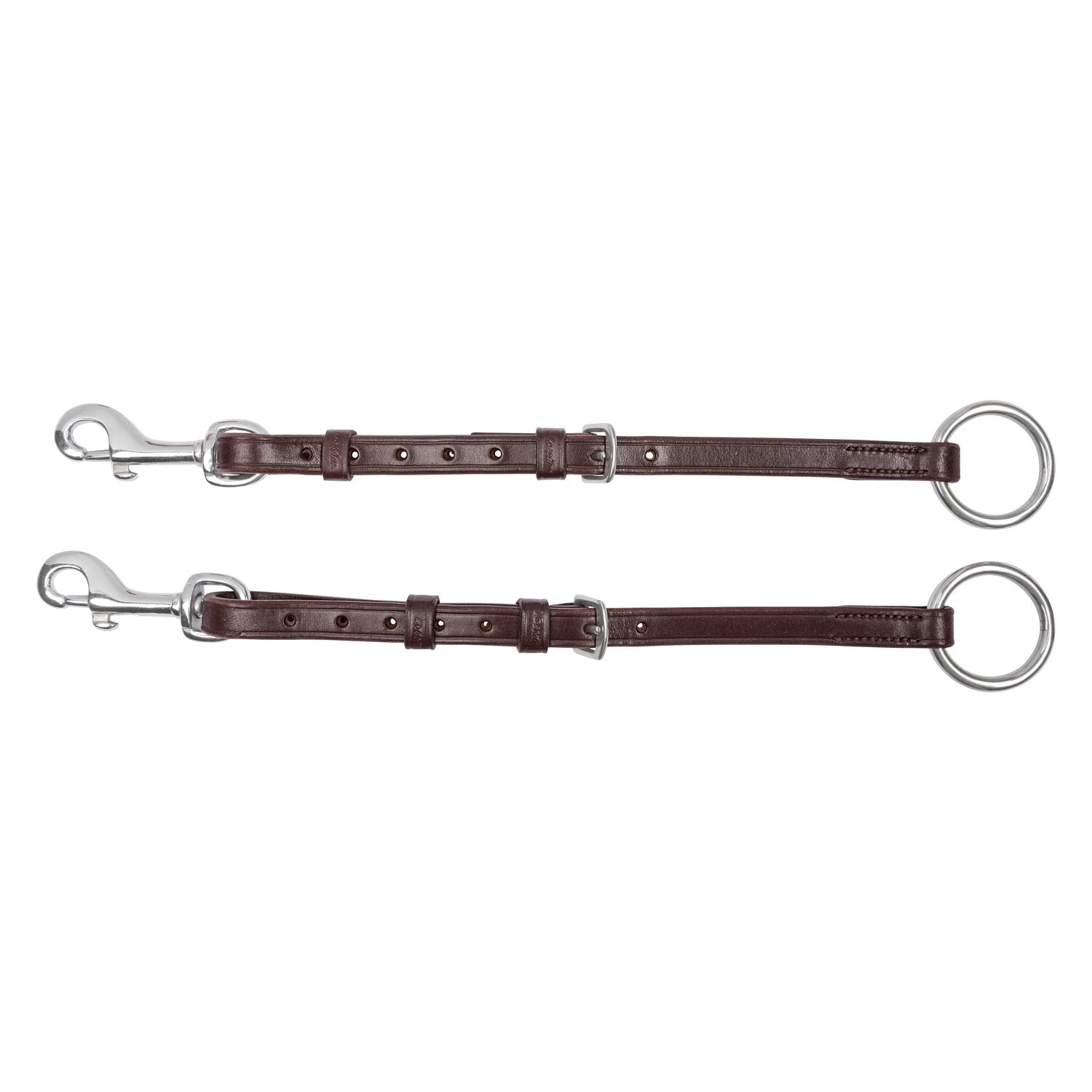 Diese verstellbare Martingalgabel ist aus bestem Qualitätsleder gefertigt. Sie eignet sich zum Einschnallen ins Vorderzeug. Mit silberfarbenen Beschlägen, Ring und Karabinerhaken.