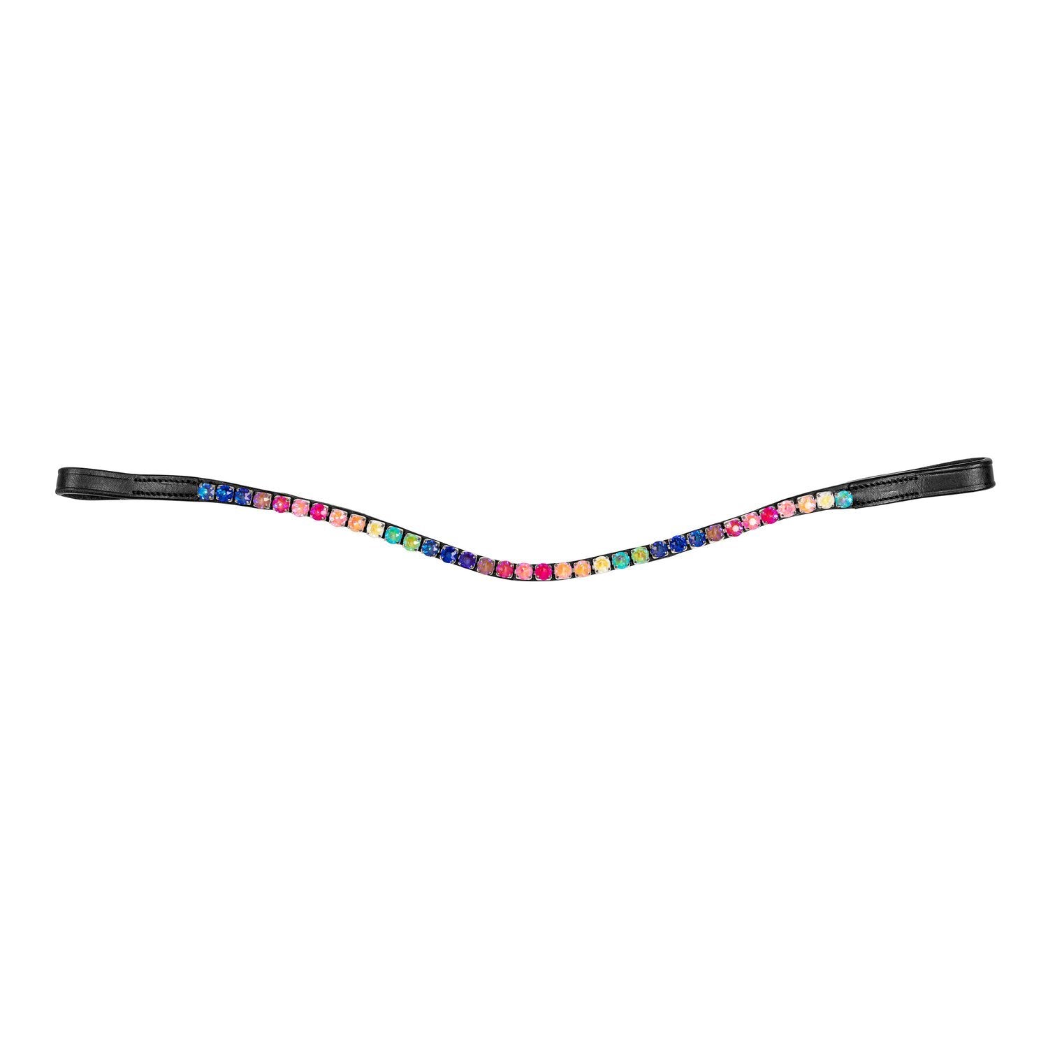 Das geschwungene Stirnband Las Vegas von Loesdau ist aus bestem Qualitätsleder gefertigt. Die großen, eckig eingefassten Glitzersteine in schillernden Farben sind ein Eyecatcher und verleihen jeder Trense einen farbenfrohen Effekt. Länge: Shetty: ca. 34,5 cm VB: ca. 43,5 cm WB: ca. 45 cm Breite: ca. 11 mm