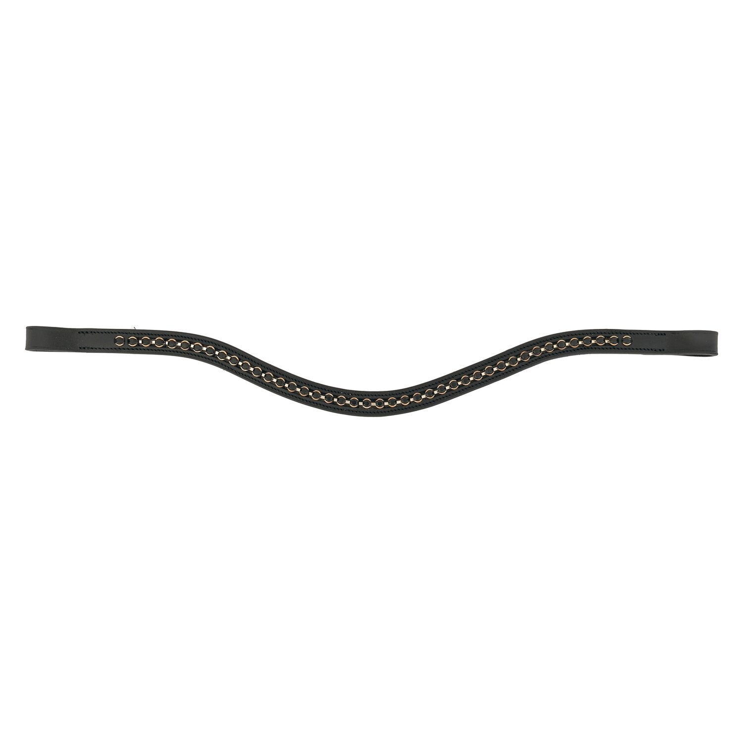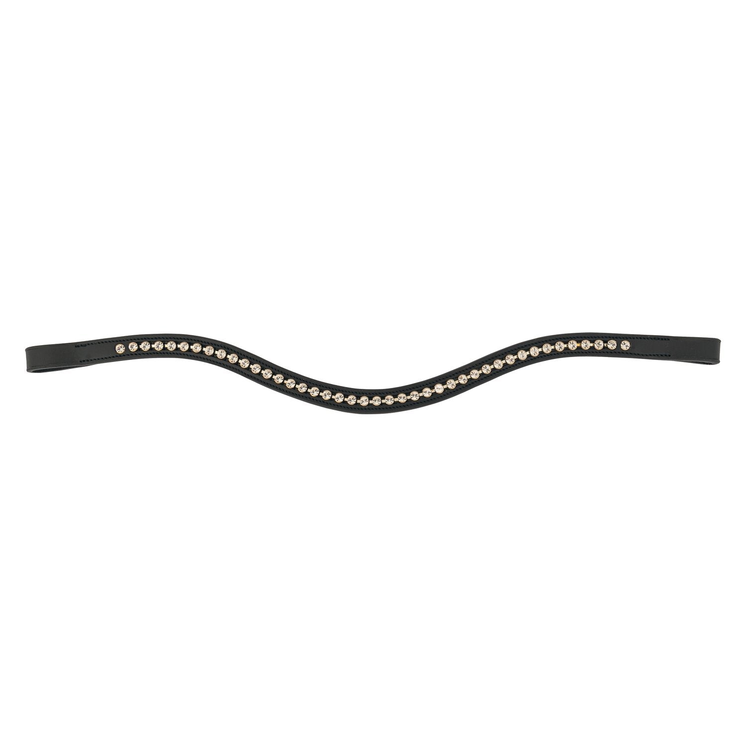 Der bombierte Stirnriemen Fiore aus dem Hause Loesdau besteht aus einem tollen Qualitätsleder, das mit farblich abgestimmten Garn vernäht ist. Dadurch wird ihm ein besonders edles Design verliehen. Das weiche Leder fühlt sich angenehm an und verursacht weder Druck- noch Scheuerstellen. Die geschwungene Form betont den Pferdekopf und sorgt für eine elegante Ausstrahlung. Der Stirnriemen ist im Mittelpart mit funkelnden Glitzersteinen in Blütenform besetzt, die bei Sonnenlicht wunderschön glitzern und alle Blicke auf sich ziehen. Das edle Design eignet sich sowohl für Turniere als auch für das tägliche Training und macht so jede Trense zu einem Hingucker. - Länge: ca. 42 cm - Breite: ca. 17 mm