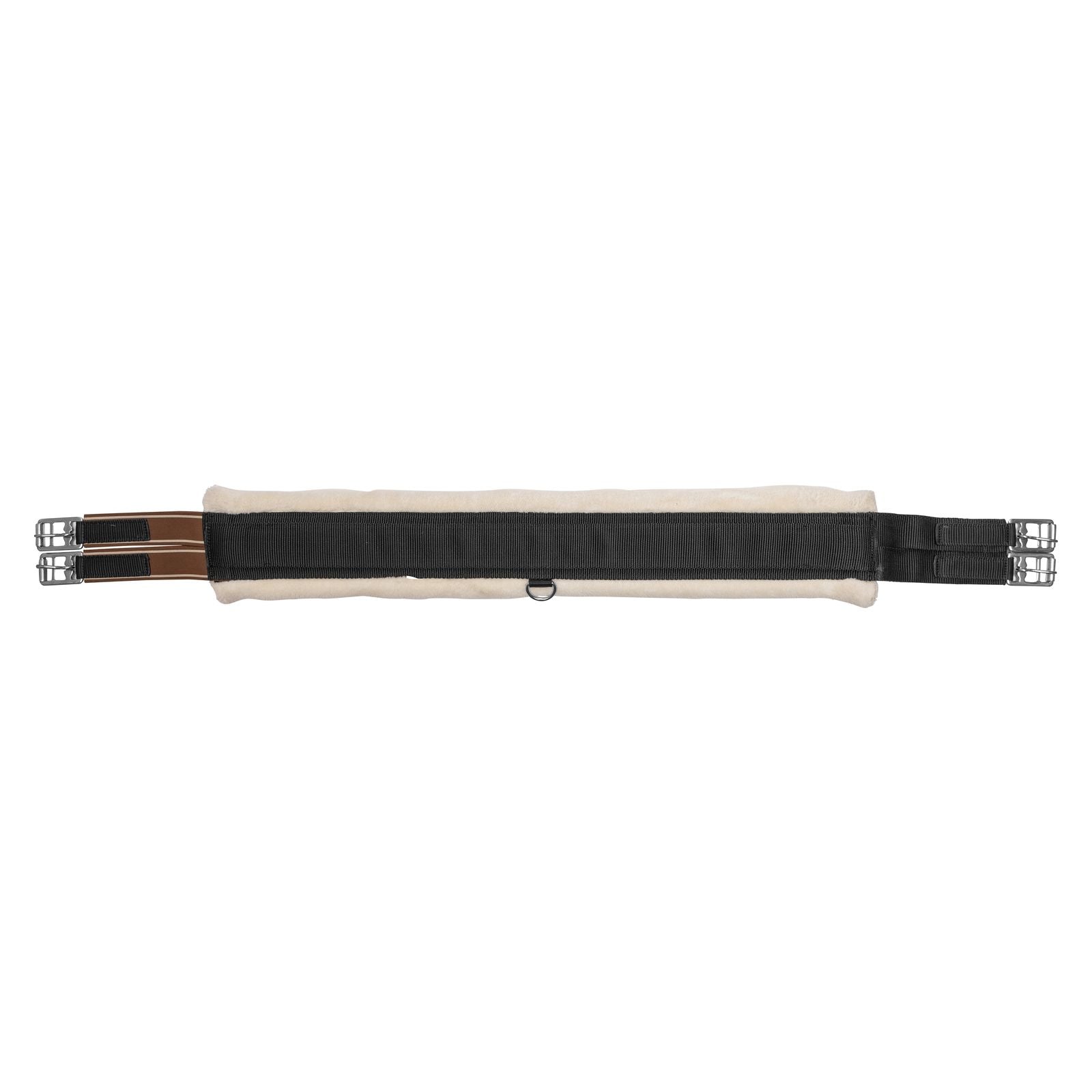 Loesdau präsentiert einen reißfesten Sattelgurt aus Webmaterial mit weicher Teddy-Fleece-Polsterung. Am D-Ring in der Mitte lässt sich ein Hilfszügel perfekt anbringen. Der Gummizug stabilen Rollenschnallen auf der linken Seite erleichtert das Nachgurten und beugt Gurtzwang vor.
