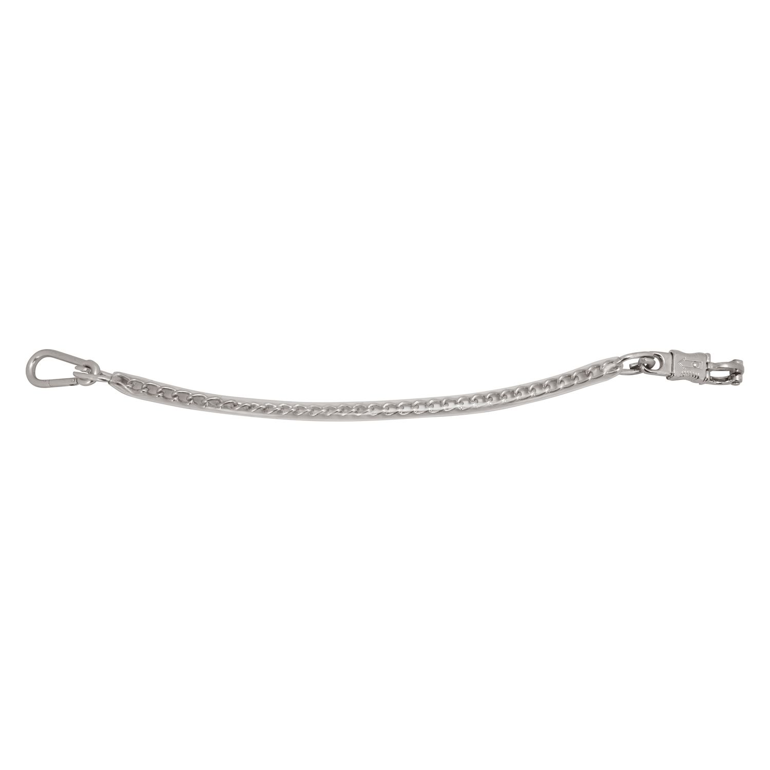 Verbindungsstück zwischen Anbindestrick und Halfter. Aus extrem reißfestem Polypropylen. Gurtband mit Klettverschluss, Drehkarabiner und Ring. Länge: ca. 28 cm