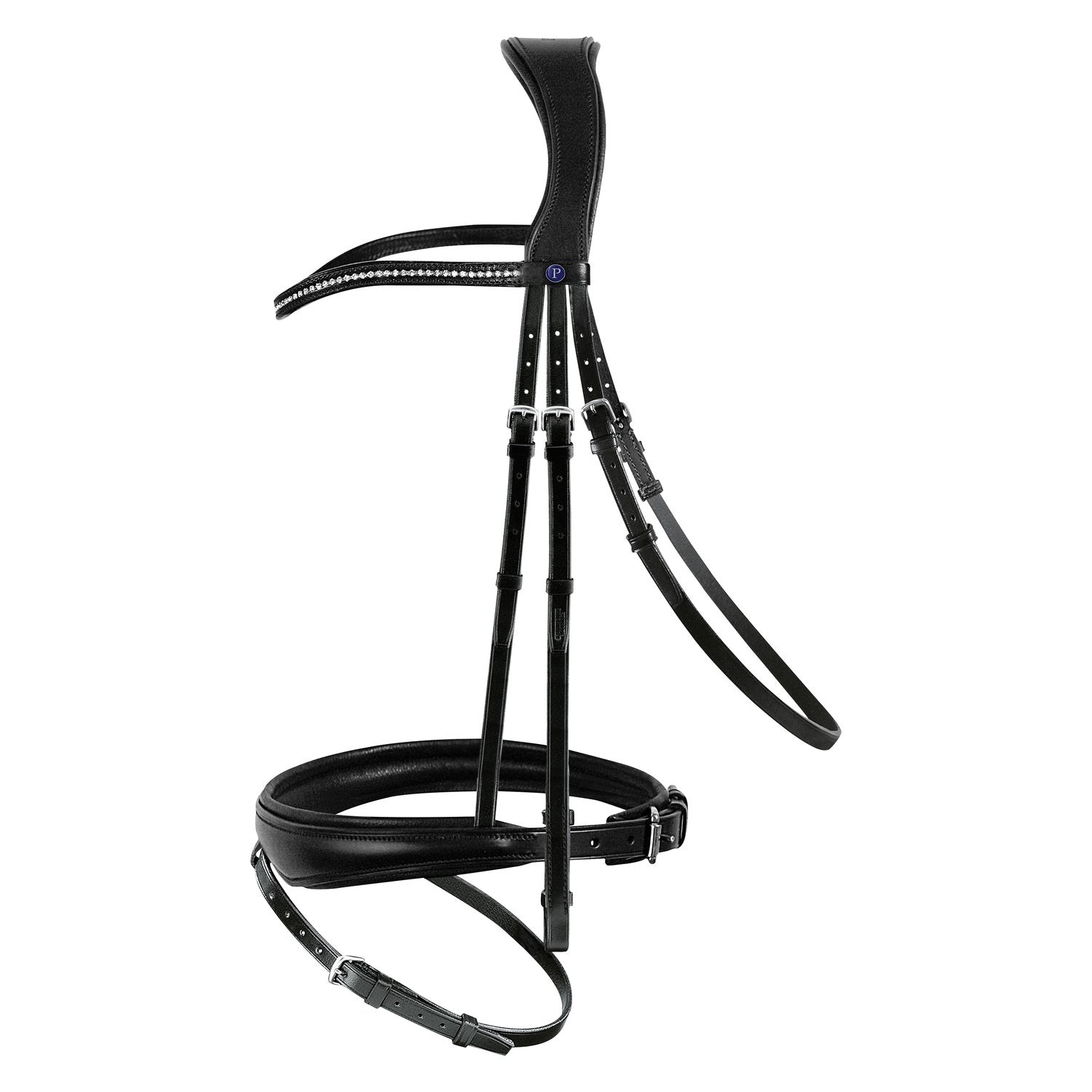 Es funkelt im Viereck! Traumhaft schöner, pferdefreundlicher Kandarenzaum aus der PASSIERBLU Kollektion. Er hat einen geschwungenen Stirnriemen mit mittelgroßen Glitzersteinen für den besonderen „Wow“-Effekt! Mit anatomisch geformtem, extra weichem Kopfstück und anatomisch geformtem Spezial-Reithalfter, die wunderbar weich unterfüttert sind. Der schicke Kandarenzaum liegt perfekt am Pferdekopf an. Nur echt mit dem original PASSIERBLU „P“-Label seitlich am Stirnriemen! Aus feinstem Passier Zaumleder mit Edelstahlbeschlägen. Inklusive 2 Paar Lederzügel und Trensenzügel die einseitig gummiert sind.