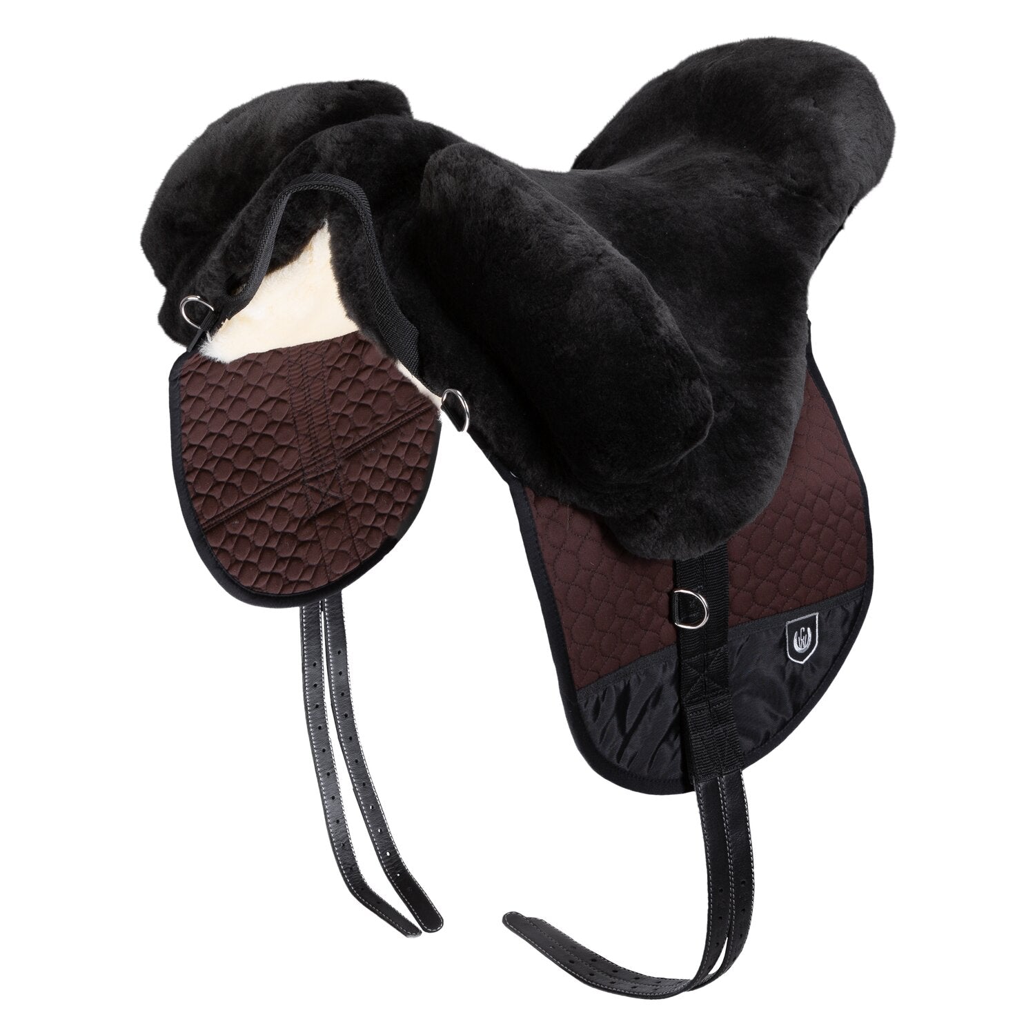 Der Fellsattel Cloud Spezial Plus von CHRIST ist auf der kompletten Unterseite mit Lammfell versehen. Wie bei den Satteldecken Spezial ist die Wollhöhe im Kissenbereich 30 mm und an den Seiten 15 mm. Der Cloud Spezial Plus hat ein Sattelblatt und ein Schweißblatt was die Verwendung der klettbaren Lederpauschen ermöglicht. Diese geben zusätzlichen Halt und ermöglichen auch gymnastische Sprünge. Das Hinterzwiesel erhält seine Passform durch einen speziellen Verbundschaumkern, der bereits als Sitz vorgeformt ist. Wie bei allen CHRIST Fellsätteln können Steigbügel einfach angebracht werden. Verbundschaumeinlagen sind serienmäßig enthalten.