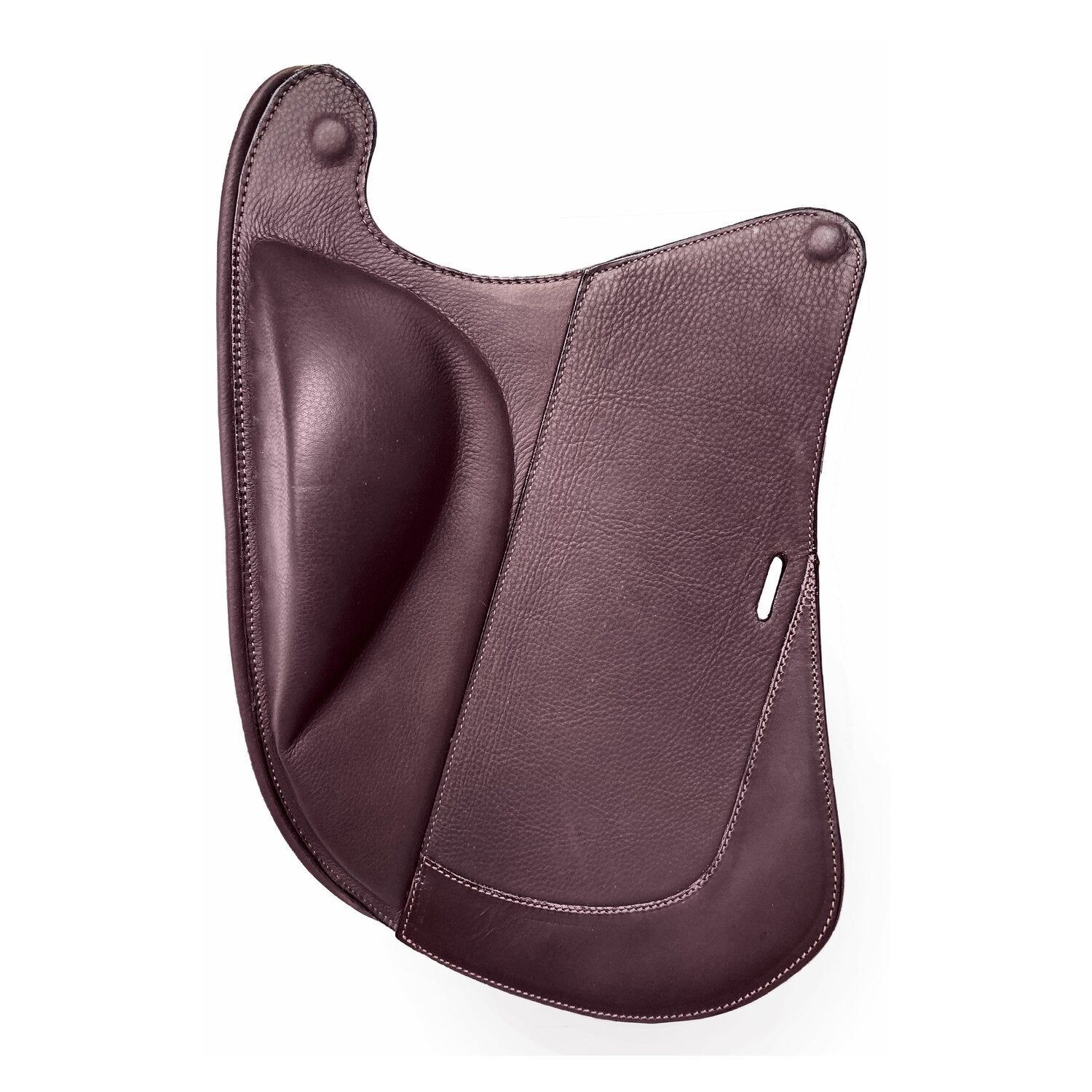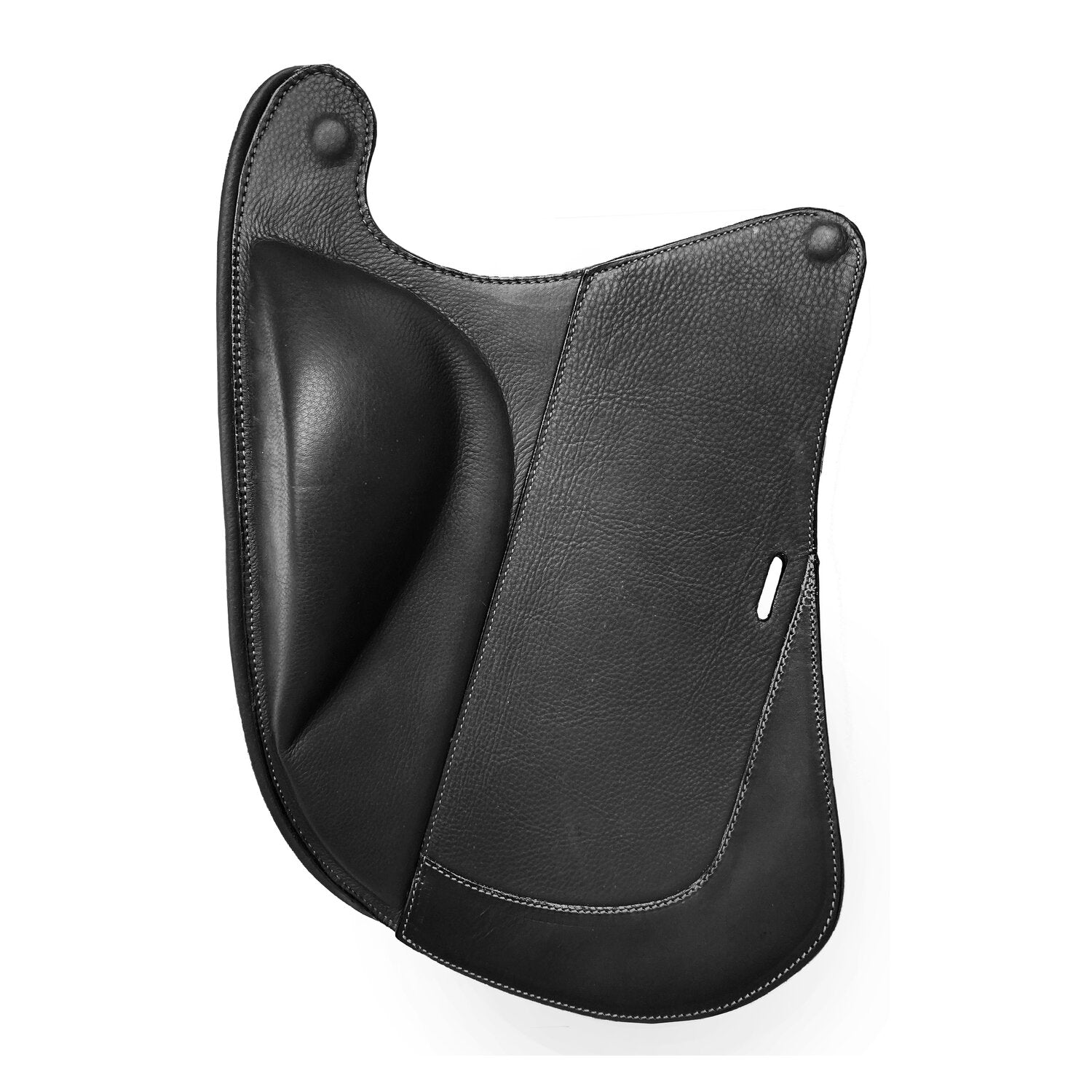 Die bewusst schmal gestaltete Sitztaille ermöglicht ein entspanntes, nicht zu breites Sitzen. Durch die besonders dünn gehaltene Polsterung an den Sattelblättern bleibt der Kontakt zum Pferd maximal fein. Die weiche Komfortpausche gibt dem Reiterbein einen natürlichen Rahmen, während die griffige Wildlederoberfläche ein sicheres, rutschfreies Sitzgefühl schafft.