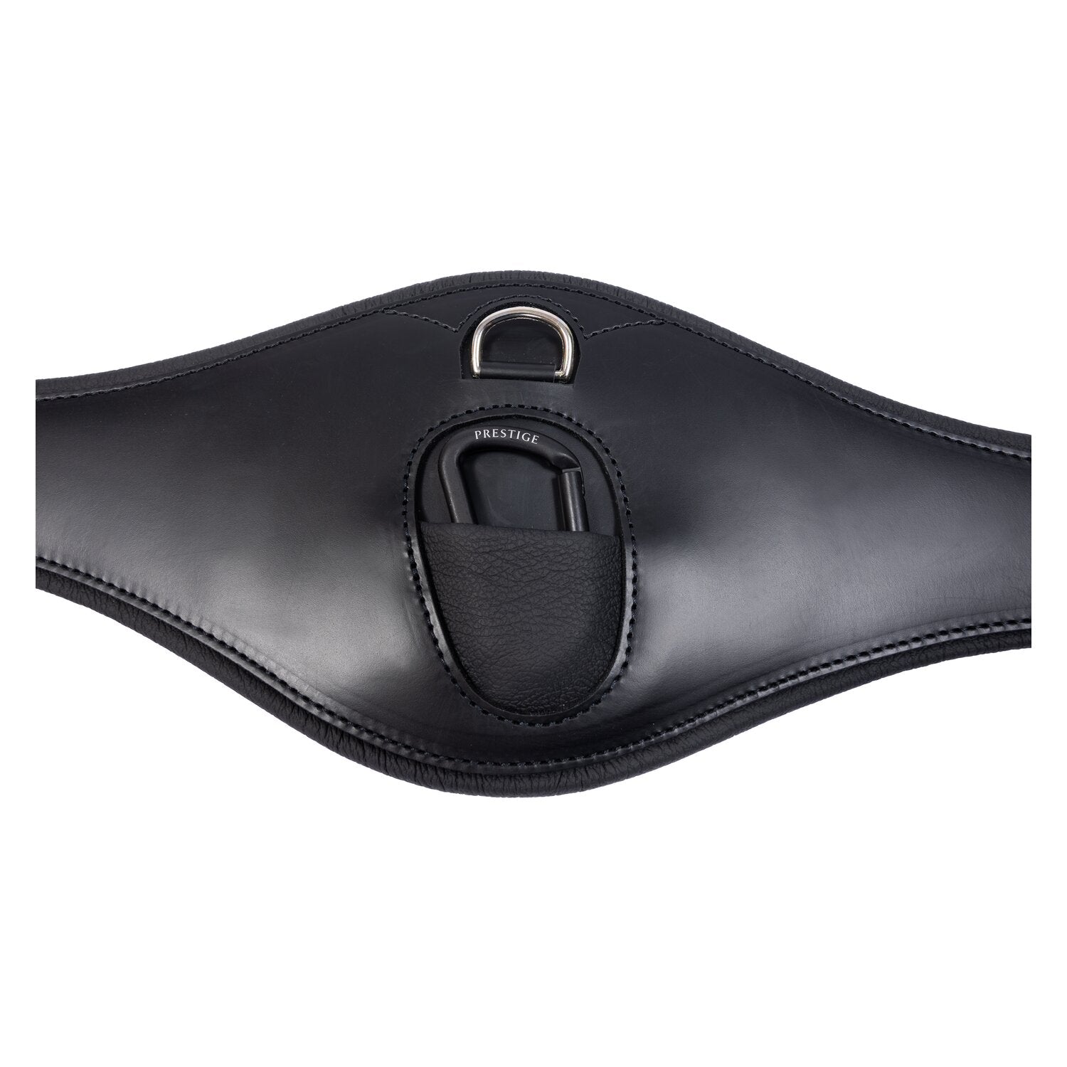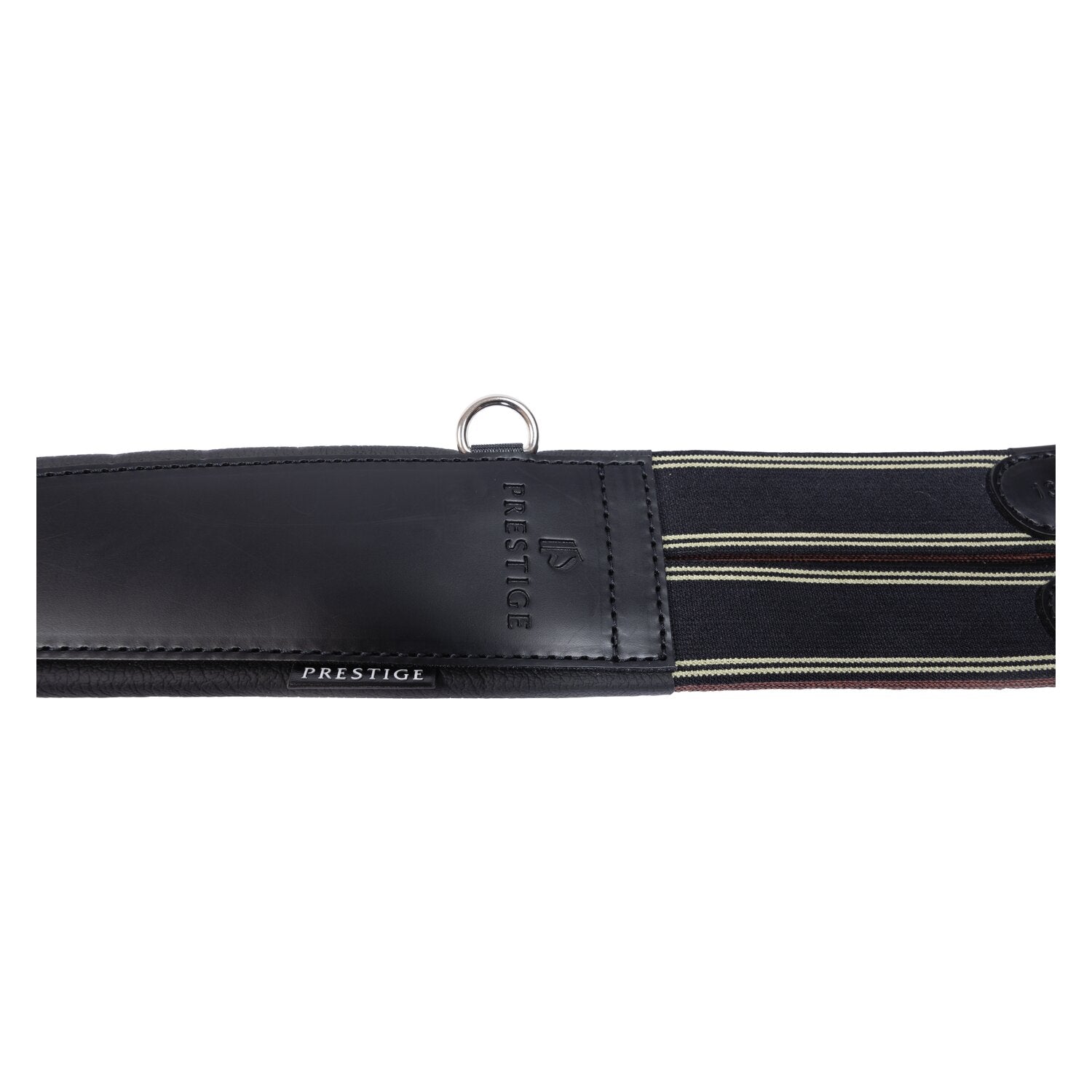 Der PRESTIGE Dressurgurt Renaissance ist ein anatomisch geformter Sattelgurt aus hochwertigem genarbtem Leder, der Komfort, Funktionalität und Stabilität perfekt vereint. Der Gurt liegt angenehm auf der Pferdehaut auf, minimiert Scheuerstellen und schützt besonders empfindliche Bereiche wie den Ellenbogen. Durch den beidseitigen Elastikeinsatz passt sich der Gurt flexibel den Bewegungen des Pferdes an, verteilt den Druck gleichmäßig auf den Brustkorb und erleichtert ein gleichmäßiges Nachgurten. Dies fördert eine natürliche Bewegungsfreiheit und unterstützt das entspannte Atmen während des Trainings oder Reitens.