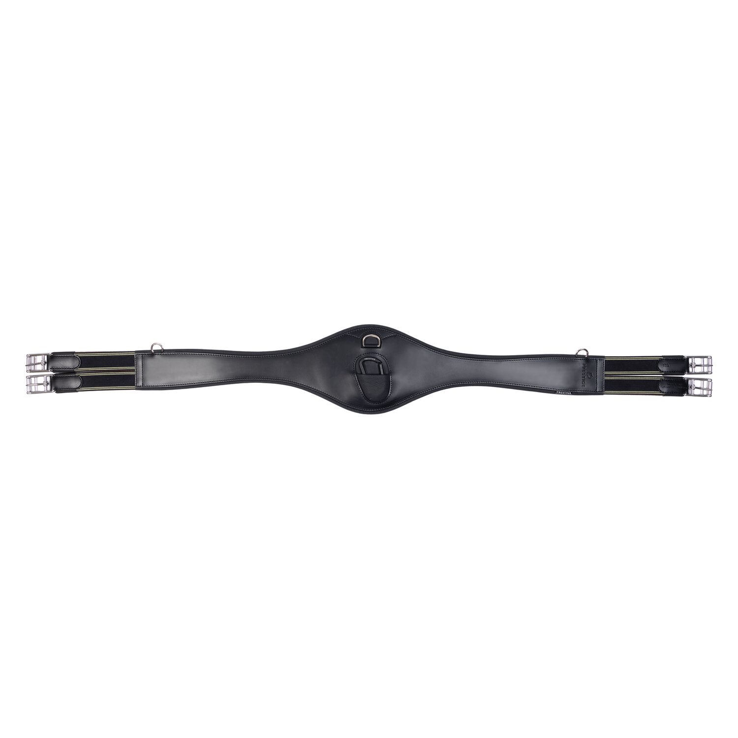 Der PRESTIGE Spezial Springgurt Renaissance ist ein asymmetrischer Ledersattelgurt, der hochwertige Verarbeitung, ergonomische Form und maximalen Komfort für Pferd und Reiter vereint. Hergestellt aus genarbtem Leder, bietet der Gurt eine angenehme Haptik, hohe Widerstandsfähigkeit und Langlebigkeit. Durch seine asymmetrische Form ist der Gurt hinten verlängert, was das Aufsatteln erleichtert und eine optimale Druckverteilung auf dem Brustkorb des Pferdes ermöglicht. Dies sorgt für einen stabilen Sitz des Sattels und reduziert potenzielle Druckpunkte, insbesondere im Ellenbogenbereich.