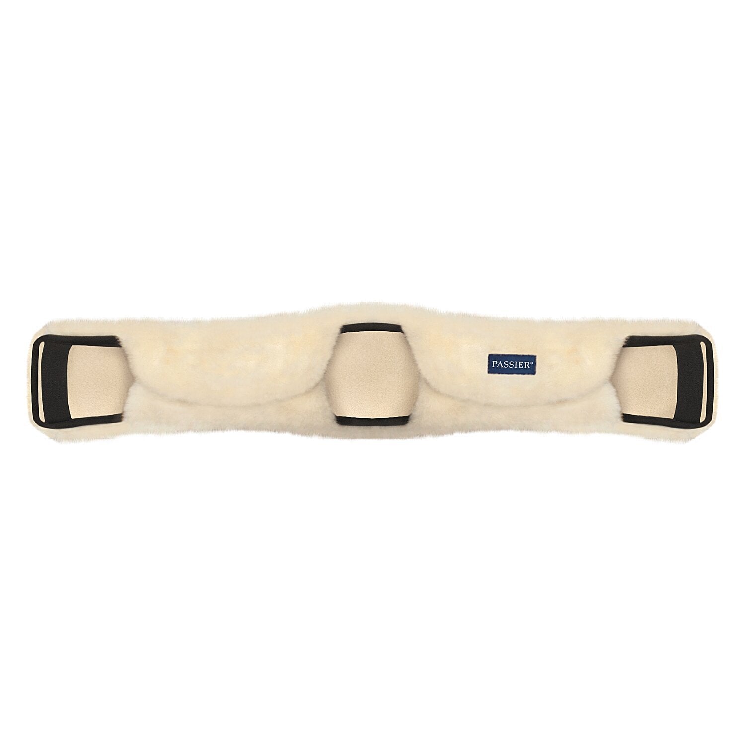 Der PASSIER Sattelgurtbezug Original Lammfell kurz ist ein weicher Bezug aus echtem, pflanzlich gegerbtem Lammfell, speziell entwickelt für den PASSIERBLU Wave Kurzgurt. Er schützt den Pferderücken zuverlässig vor Druck- und Scheuerstellen und sorgt für maximalen Tragekomfort. Die beidseitigen Laschen und Klettverschlüsse garantieren einen sicheren Sitz, sodass das Lammfell nicht verrutscht. Der Ellenbogenausschnitt ermöglicht zusätzlich uneingeschränkte Bewegungsfreiheit der Pferdeellbogen. Der Bezug ist abnehmbar und pflegeleicht, kann mit speziellem Lammfellwaschmittel gereinigt werden und ist ideal für den täglichen Einsatz beim Reiten.