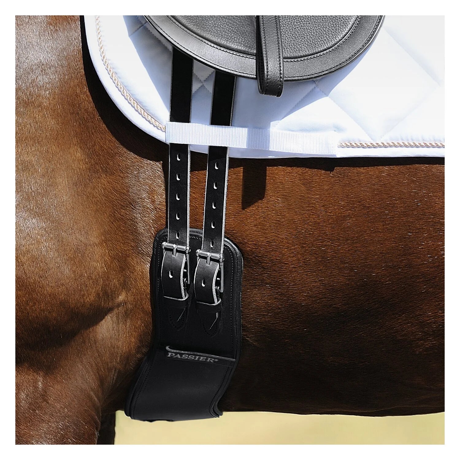 Der PASSIER Ledergurt gegen Vorrutschen ist speziell für Pferde entwickelt, deren Sättel dazu neigen, nach vorne zu rutschen. Hergestellt aus hochwertigem Qualitätsleder bietet der Gurt eine große Auflagefläche am Pferdebauch, die den Druck gleichmäßig verteilt und so den maximalen Komfort für das Pferd gewährleistet. Der große Ellenbogenausschnitt sorgt für Bewegungsfreiheit und reduziert Scheuerstellen, während die zurückversetzten Schnallen die perfekte Anpassung an die individuelle Gurttiefe des Pferdes ermöglichen. Der Ledergurt trägt dazu bei, den Sattel zuverlässig an der richtigen Position zu halten und ist besonders langlebig durch die sorgfältige Verarbeitung.