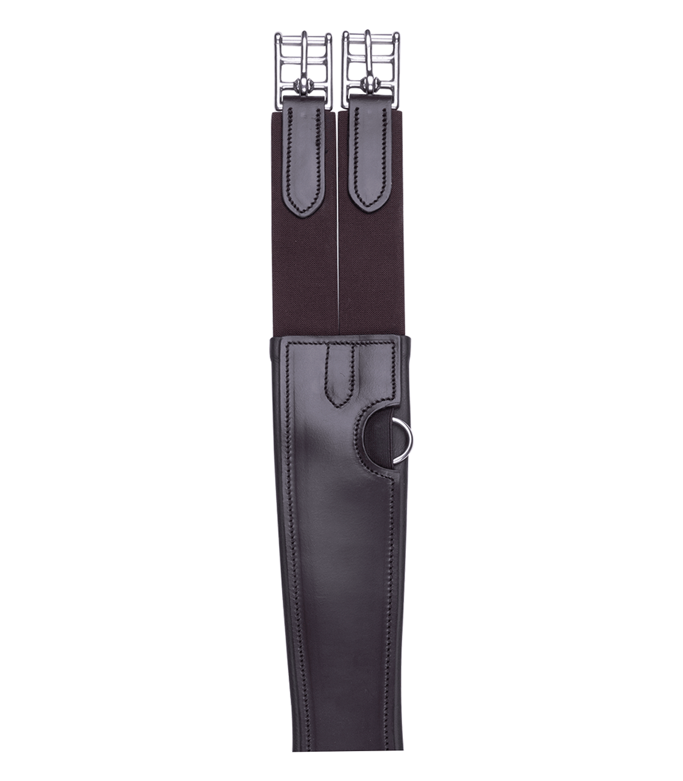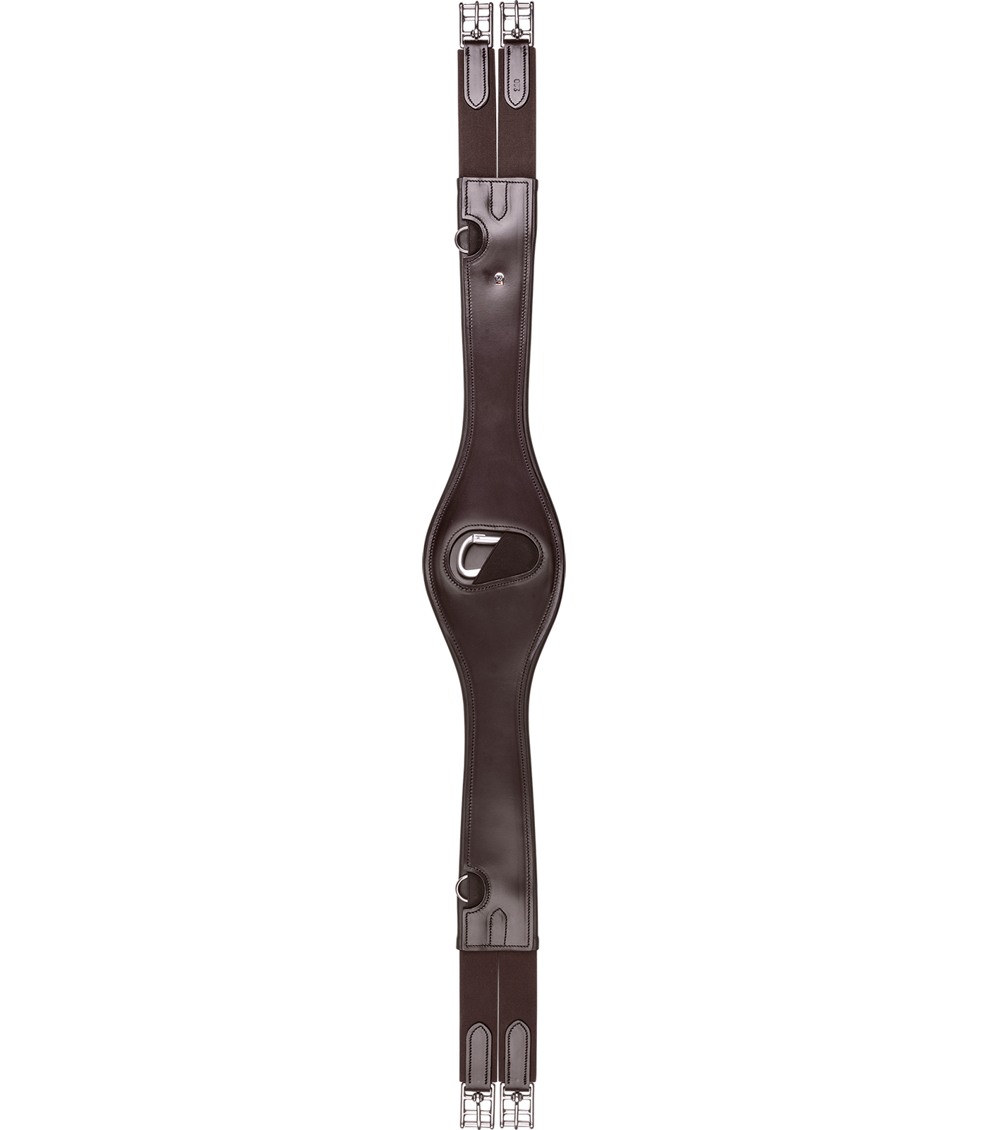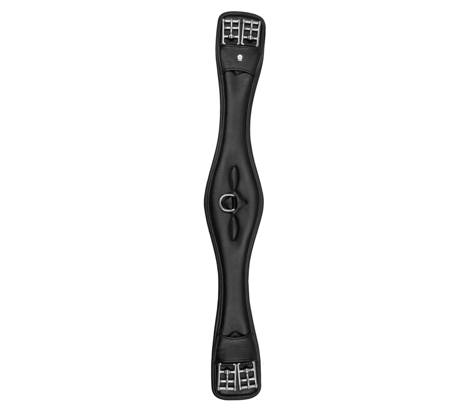 Die weiche Polsterung sorgt für eine angenehme Auflage am Pferdebauch und eine gleichmäßige Druckverteilung. Dank der durchdachten anatomischen Form liegt der Gurt stabil, ohne die Atmung oder Schulterfreiheit einzuschränken. Ein mittig platzierter D-Ring ermöglicht die einfache Befestigung von Hilfszügeln oder Vorderzeug. Robuste Rollenschnallen erleichtern das Nachgurten, während praktische Lederschlaufen für eine saubere Verschnallung sorgen.