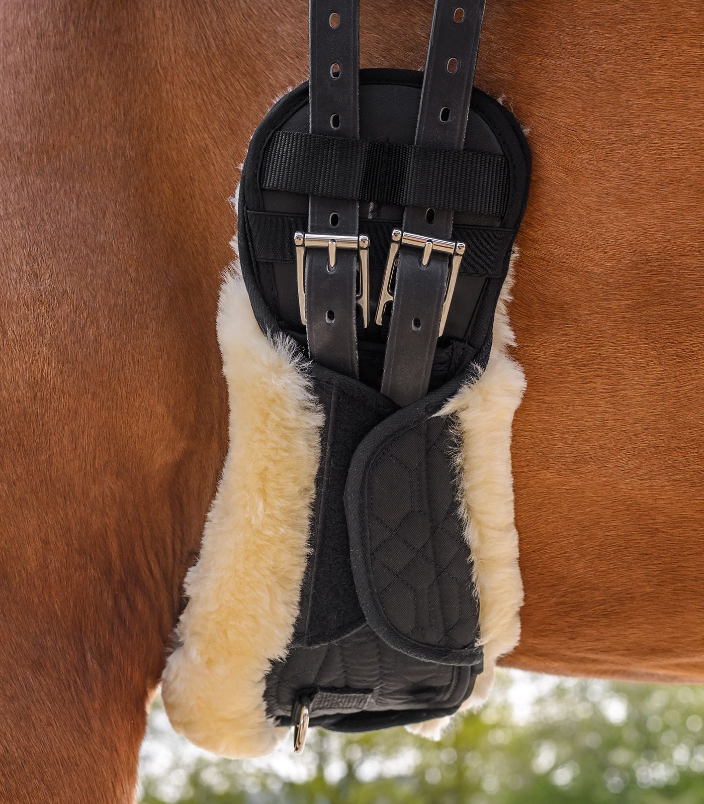 Durch die natürlichen Eigenschaften des Lammfells wird die Druckverteilung optimiert und gleichzeitig ein Verrutschen des Gurtes reduziert. Das atmungsaktive Material unterstützt ein angenehmes Klima am Pferdebauch und trägt zu einem insgesamt entspannteren Gurtvorgang bei. Der Überzug lässt sich einfach abnehmen und bei Bedarf waschen, wodurch Hygiene und Langlebigkeit gewährleistet werden.