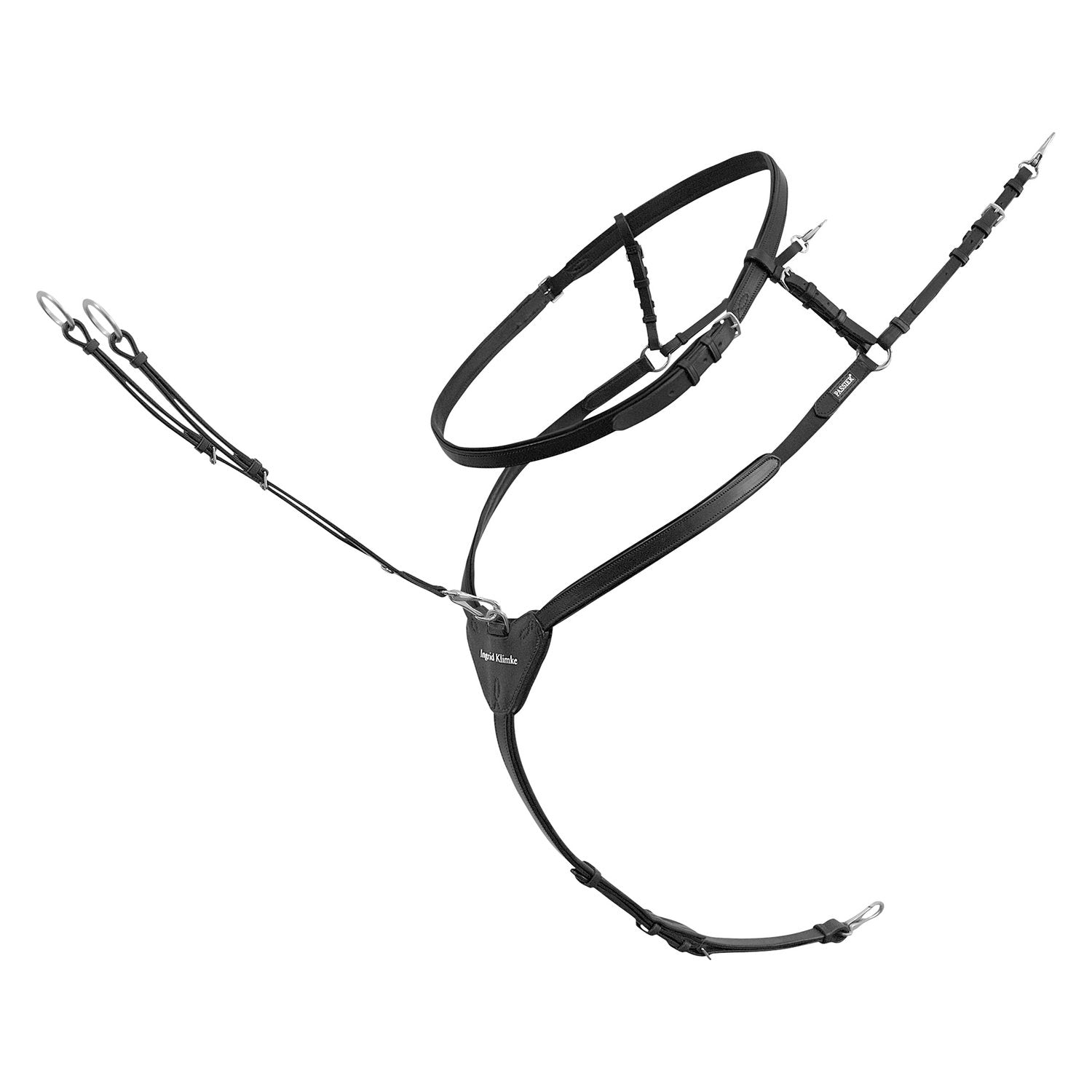 Das Ingrid Klimke Vorderzeug von PASSIER ist eine perfekte Kombination aus Halsring und Vorderzeug. Es wurde gemeinsam mit der Reitmeisterin Ingrid Klimke entwickelt. Damit das Pferd es kaum spürt, ist das Vorderzeug aus feinstem Zaumleder besonders weich unterfüttert. Die Martingalgabel ist in der Länge verstellbar und einfach abnehmbar. Sie lässt sich mit Karabinerhaken vorne am Sattel und unten am Sattelgurt befestigen und ist gemäß LPO inkl. Halsring in Prüfungen zugelassen.