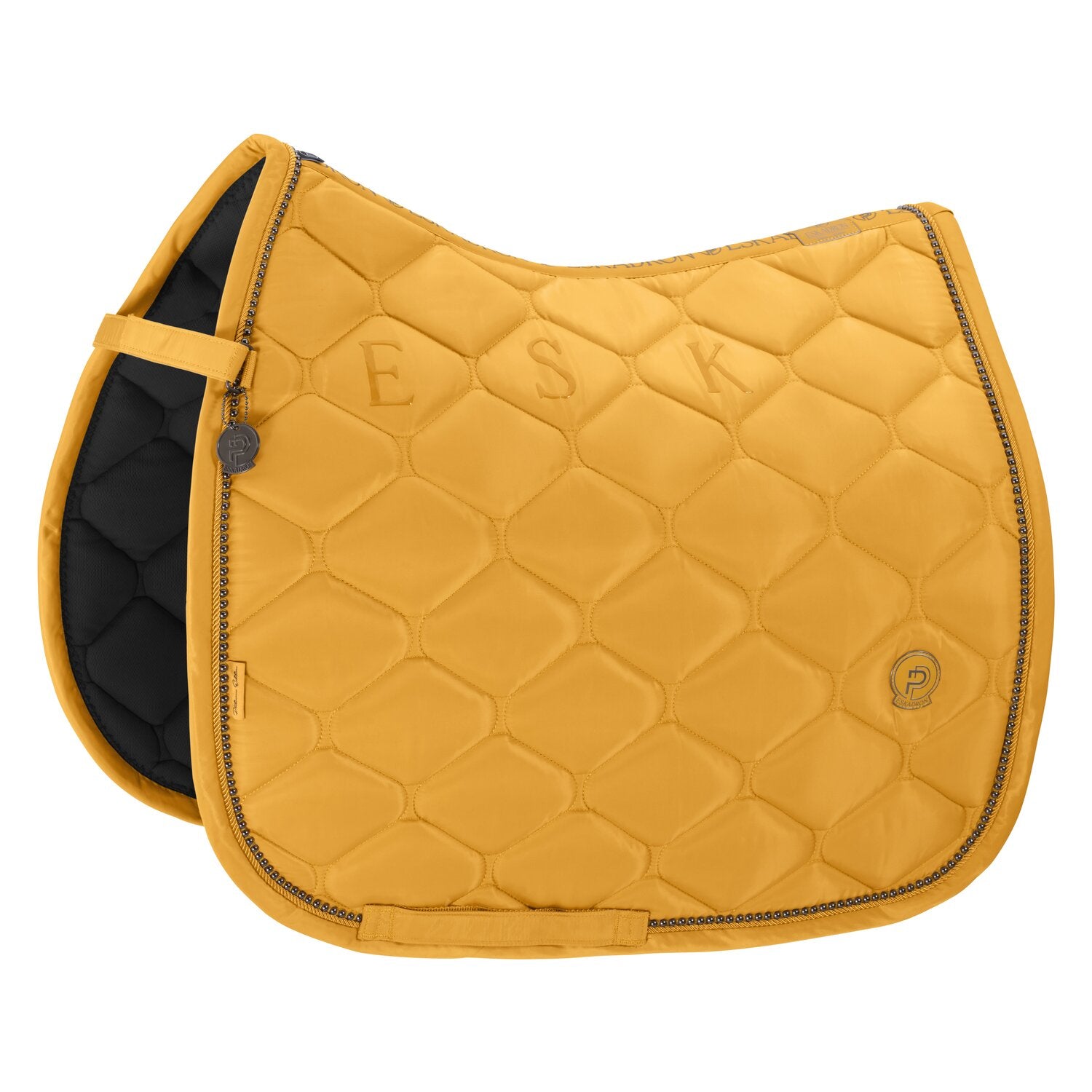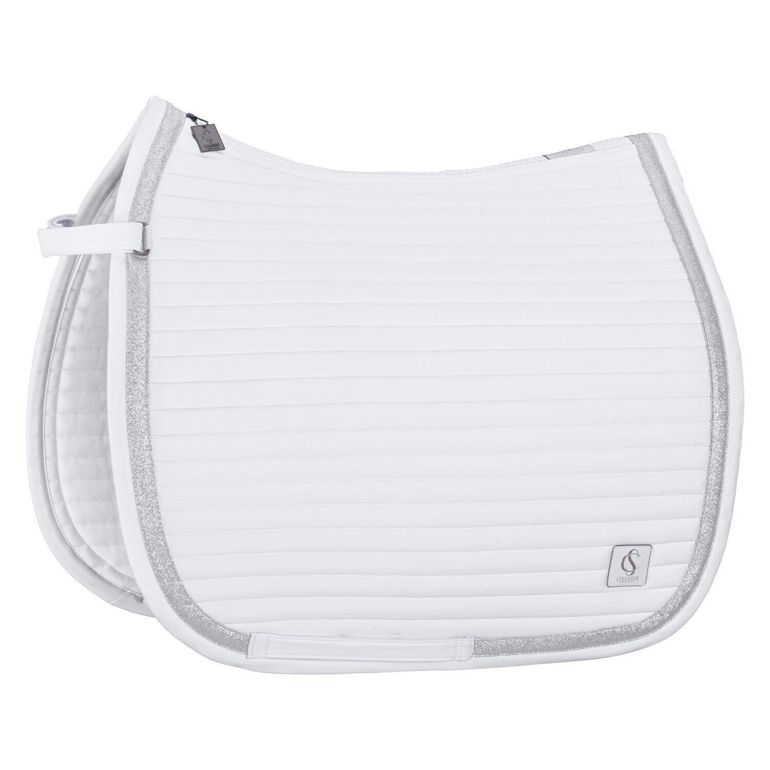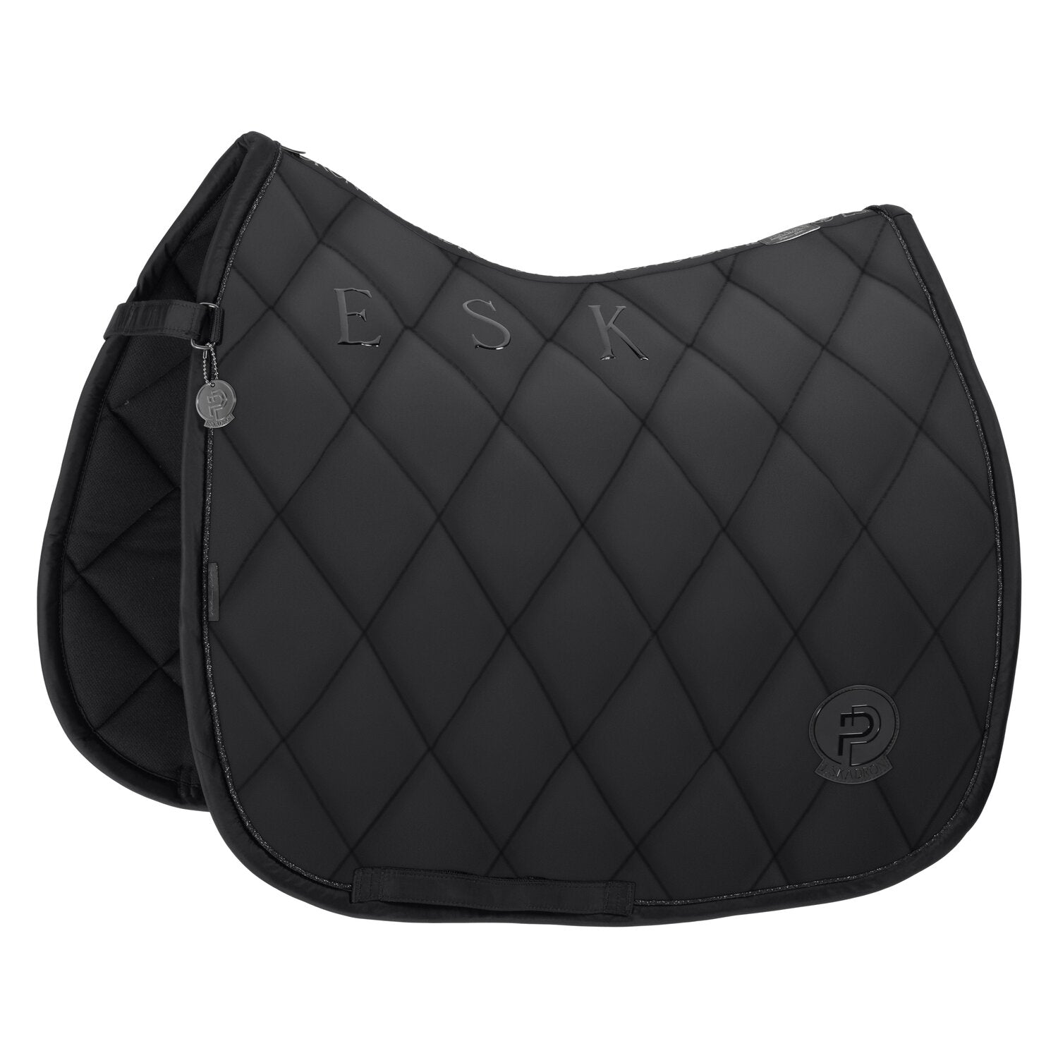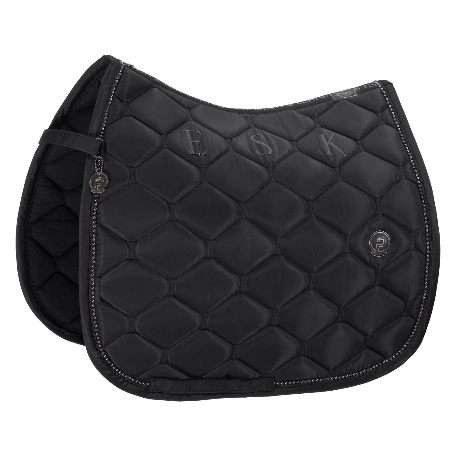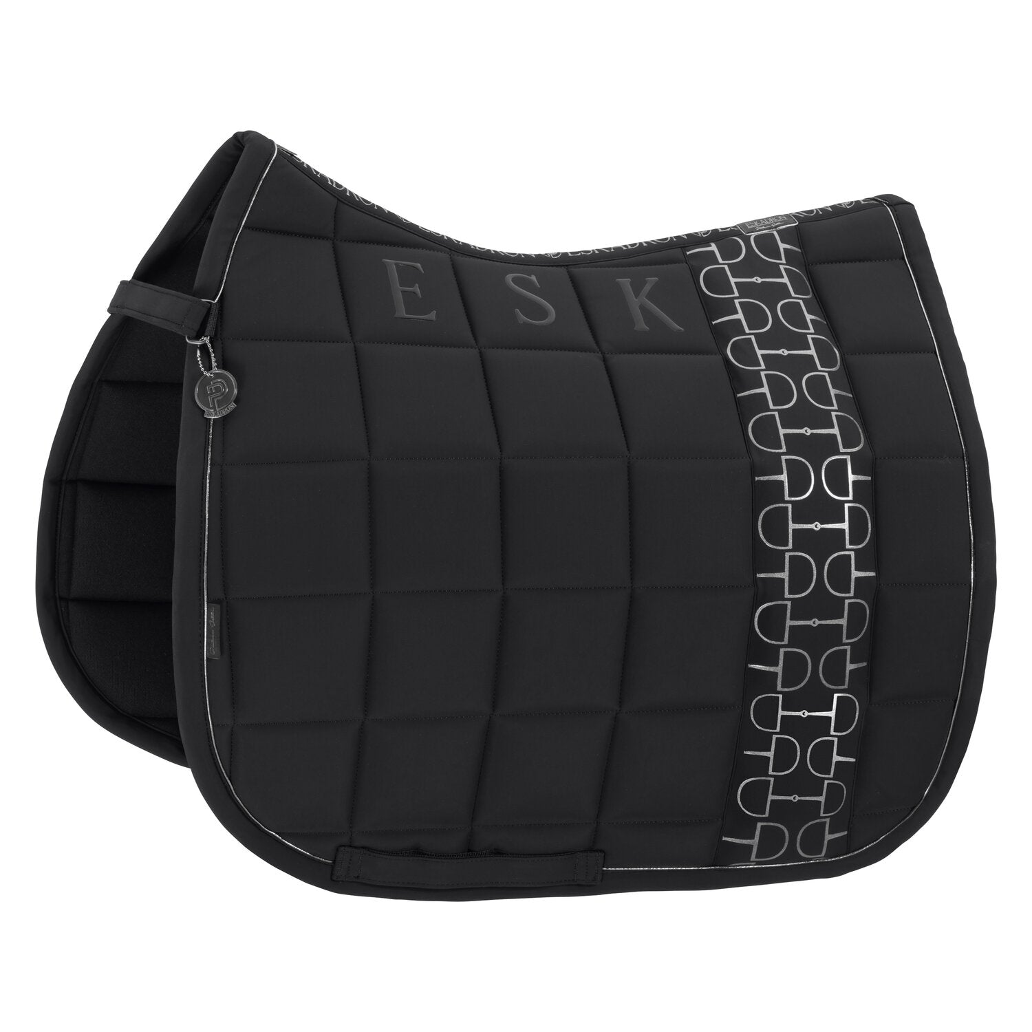 Unempfindlichkeit steht bei dieser Schabracke von ESKADRON im Vordergrund. Aus hochwertigem Softshell-Obermaterial mit feuchtigkeitsableitender Cool/Dry-Unterseite und Mesh im Rückenkanal für eine optimale Luftzirkulation. Durch die mitteldicke Quersteppung wird eine perfekte Polsterung unter dem Sattel erreicht. Dank des Innostrap-Systems für eine optimale Frontfixierung und der Gutschlaufen mit dreifacher Fixierungsoption für eine exakte Positionierung sitzt die Schabracke perfekt. Gezielt eingesetzte Design Features wie das edle Glitzer-Tape auf der Softshell-Einfassung und das beidseitige ESKADRON-Emblem verleihen der Schabracke ihren markentypischen Charme. • Innovatives und unempfindliches Softshell-Obermaterial und Cool/Dry-Unterseite • Mitteldicke Quersteppung • Edles Glitzer-Tape auf Softshell-Einfassung • ESKADRON-Emblem, beidseitig • Mesh-Rückenkanal für optimale Luftzirkulation • Innostrap-System für optimale Frontfixierung • Gurtschlaufen mit dreifacher Fixierungsoption für exakte Positionierung