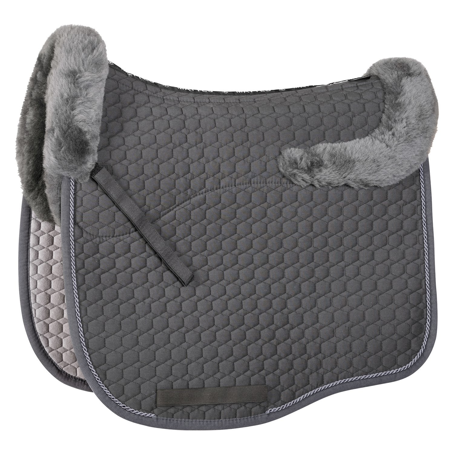 Anatomisch geformtes Lammfell-Sattelkissen mit medizinisch gegerbtem Lammfell und gekürztem Lammfellbesatz im Wirbelkanal für mehr Wirbelsäulenfreiheit. Das Pad ist stoßabsorbierend und dient zum Schutz vor Druckstellen, auch für empfindliche Pferde geeignet. Maße: - Rückenlänge: ca. 59 cm - Schulterbreite: ca. 56 cm