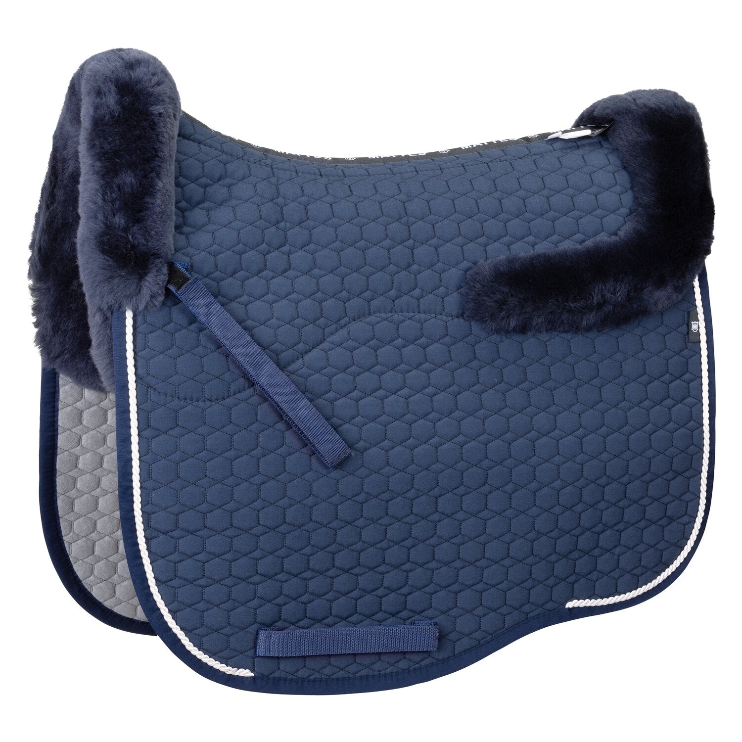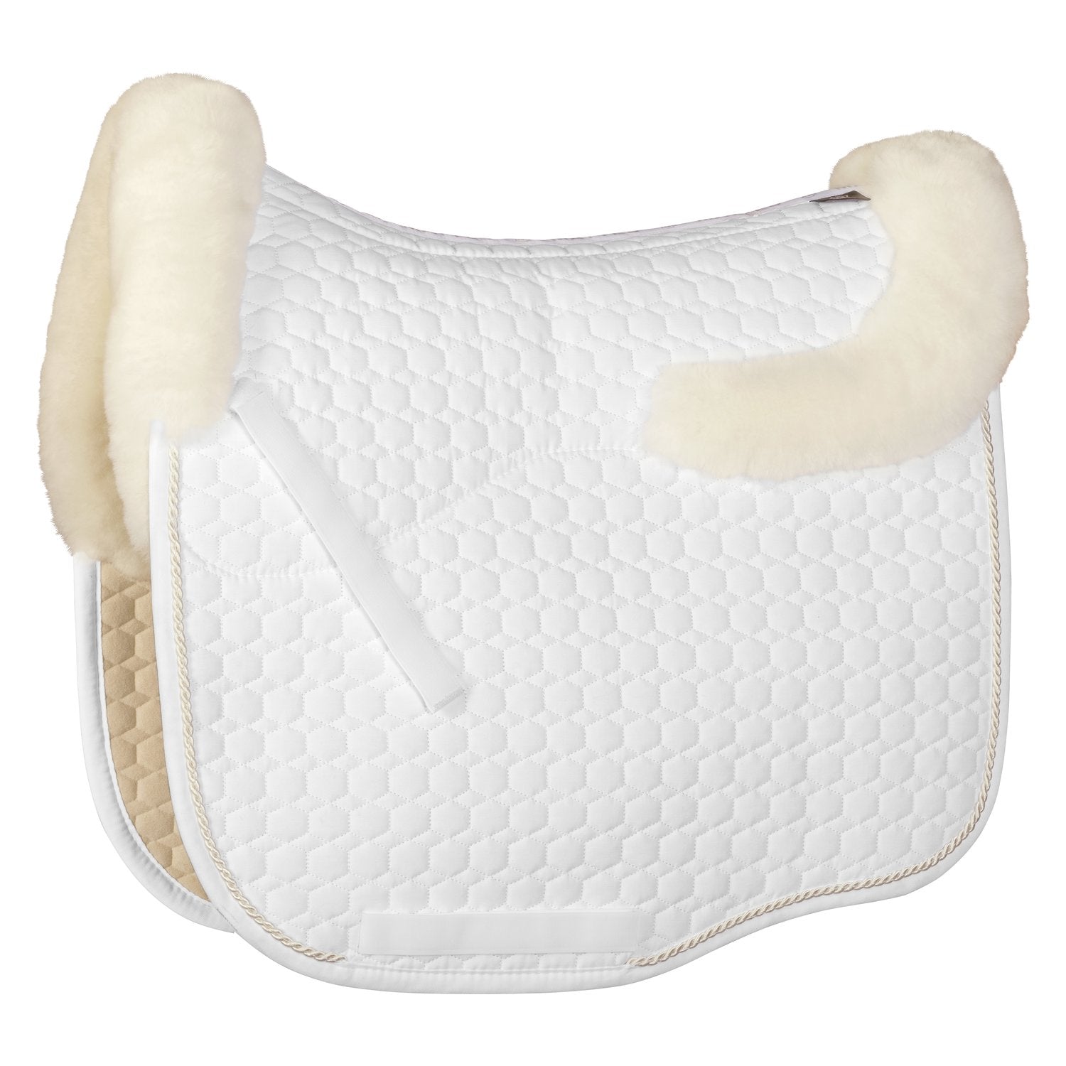 Anatomisch geformtes Lammfell-Sattelkissen mit medizinisch gegerbtem Lammfell und gekürztem Lammfellbesatz im Wirbelkanal für mehr Wirbelsäulenfreiheit. Das Pad ist stoßabsorbierend und dient zum Schutz vor Druckstellen, auch für empfindliche Pferde geeignet. Maße: - Rückenlänge: ca. 53 cm - Schulterbreite: ca. 54 cm