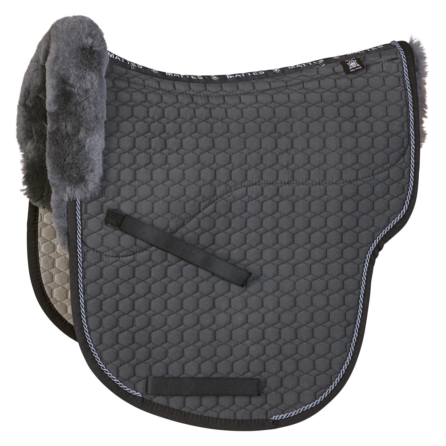 Die hochwertige Schabracke Eurofit von MATTES jetzt auch speziell für Isländer entwickelt. In bewährtem Eurofit-Schnitt, mit Lammfellbesatz im Kissenbereich und am Widerrist, farblich abgestimmter Zierkordel, SPINEFREE® Wirbelsäulen-Entlastung (Aussparung des Lammfells im Wirbelsäulenbereich) und doppellagigem Kern: 1. Lage POLY-FLEX (tiefgenadelter Nadelfilz) zur Formerhaltung und Druckausgleich 2. Lage Polyesterwatte zur Aufpolsterung - dadurch luftdurchlässig. Der Lammfellbesatz ist aus extrem dichter und widerstandsfähiger Wolle. Die aufrechtstehenden Wollfasern verhindern Druck, Reibung oder Scheuern auf der Pferdehaut, da sie aneinander gleiten. Durch das MATTES Steppmuster-Design wird der Steppstoff fest, nicht klumpig oder lappig. Auch nach vielen Wäschen kein Brechen der Füllung entlang der Steppnähte. Zur korrekten Platzierung unter dem Sattel verfügt die Schabracke im vorderen und hinteren Bereich über einen Lammfellrand und über justierbare Klettbänder. - Maße: ca. 53 cm x 56 cm