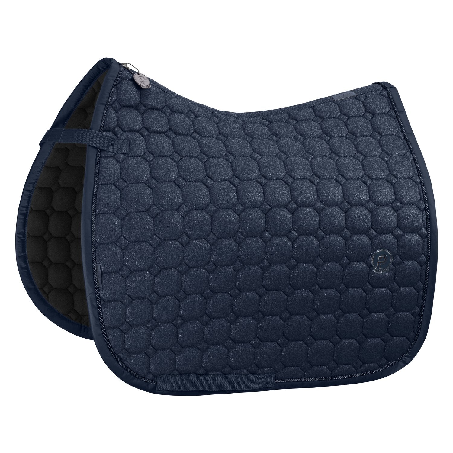 Aus glitzerndem Obermaterial mit tragefreundlicher Unterseite punktet diese Schabracke von ESKADRON aus der Platinum Kollektion. Sie schützt den Sattel und leitet durch das Obermaterial mit hohem Baumwollanteil und die angenehme Molton-Unterseite den Schweiß vom Pferd ab. In anatomischer Schnittführung mit kompakter und langlebiger Füllung in Polygon-Steppung (8-Eck-Steppung). Für einen rutschfesten Sitz unter dem Sattel verfügt die Schabracke über das bewährte Innostrap-System zur Frontfixierung und über Gurtschlaufen mit dreifacher Fixierungsoption. Schön und in klassischem Design kommt sie mit dezenter Ton-in-Ton Kordel auf der Glossy-Einfassung und dem glitzernden Platinum-Emblem auf beiden Seiten. • Glitzer Baumwoll-Obermaterial und angenehme Molton-Unterseite • kompakte und langlebige Füllung und Steppung • Platinum-Emblem, beidseitig • dezente ton in ton Kordel auf Glossy-Einfassung • Gurtschlaufe mit dreifacher Fixierungsoption für exakte Positionierung