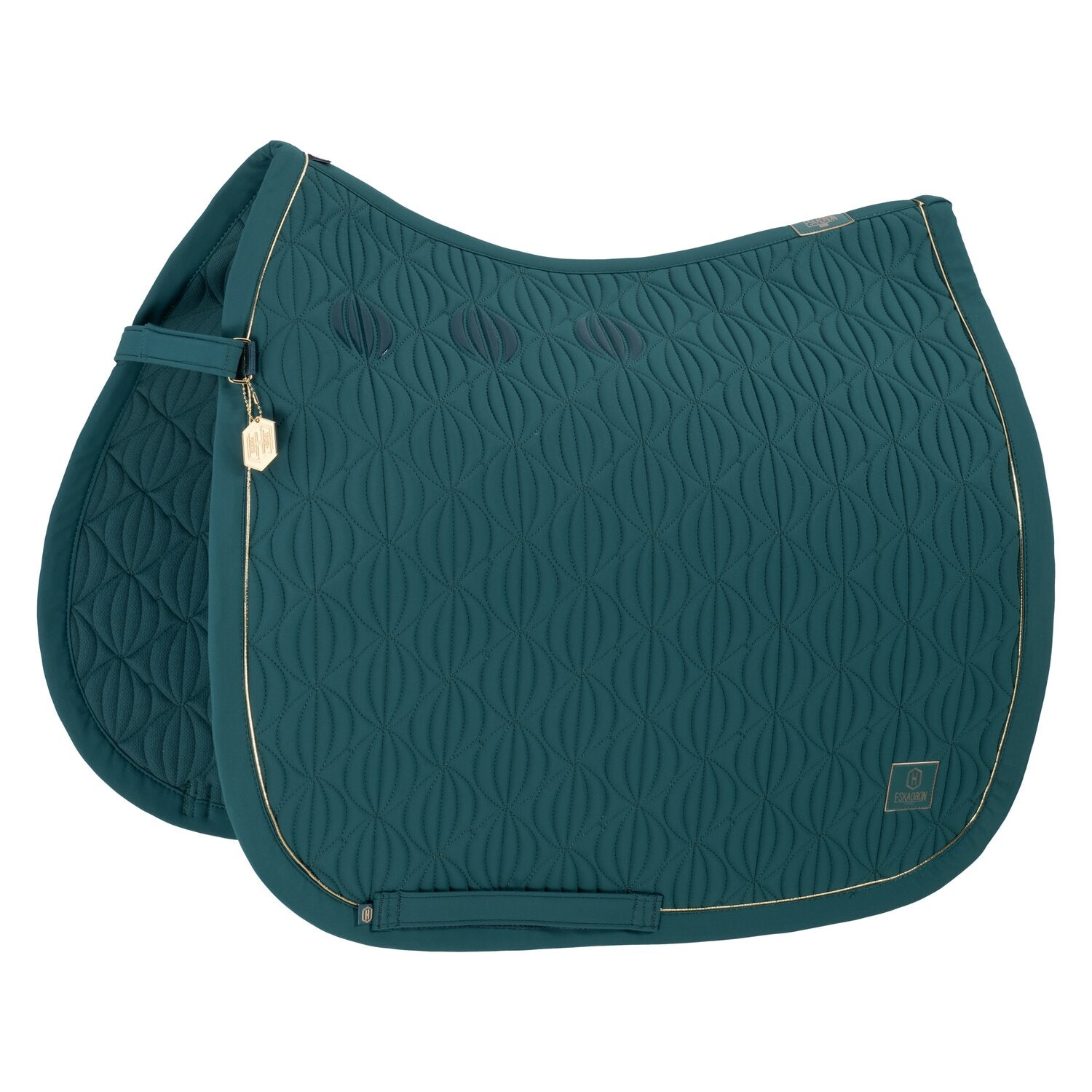 ESKADRON präsentiert eine Schabracke aus schickem Satin-Obermaterial mit einer feuchtigkeitsableitenden Cool/Dry-Unterseite. Die aufwendige Heritage Steppung mit mitteldicker Füllung steht für maximale Formstabiliät. Dank Gurtschlaufen mit dreifacher Fixierungsoption ist eine exakte Positionierung möglich, während das Innostrap-System eine optimale Frontfixierung gewährleistet. Zusätzlichen Halt bieten die Anti-Slip Silikonflächen im Sattelbereich. Die beidseitigen, dezenten Heritage-Embleme sowie die edle Kombination aus Kordel-Kristallstein-Kordel auf der Satin-Einfassung runden das elegante Erscheinungsbild ab. • Schickes Satin-Obermaterial und Cool-Dry Unterseite • Aufwendige Heritage Steppung mit mitteldicker Füllung • Anti-Slip Silikonflächen im Sattelbereich • Edle »Kordel-Kristallstein-Kordel« Kombination auf Satin-Einfassung • Innostrap-System für optimale Frontfixierung • Gurtschlaufe mit dreifacher Fixierungsoption für exakte Positionierung • Dezentes Heritage-Emblem, beidseitig