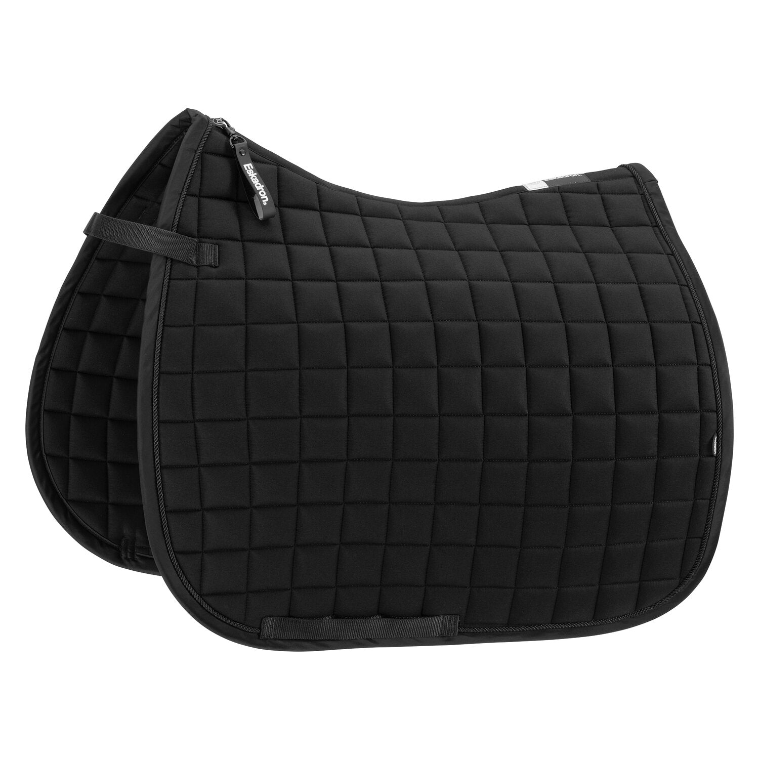 Die Schabracke Cotton aus der ESKADRON Classic Sports Kollektion vereint hochwertiges Material, durchdachte Funktionalität und ein elegantes Design. Das Baumwoll-Obermaterial sorgt für eine strapazierfähige und atmungsaktive Oberfläche, während die weiche Molton-Unterseite angenehm auf dem Pferderücken liegt und Feuchtigkeit zuverlässig absorbiert. Die kompakte und langlebige Füllung in Kombination mit der präzisen Steppung gewährleistet eine optimale Druckverteilung und langanhaltende Formstabilität. Für eine perfekte Passform und einen sicheren Halt sorgen die Gurtschlaufen mit dreifacher Fixierungsoption und das Innostrap-System für eine optimale Frontfixierung, die ein Verrutschen während des Reitens effektiv verhindern. Das edle Detail wie die glänzende Glossy-Einfassung, die durch eine feine Lurex-Biese stilvoll akzentuiert wird fügt sich in das harmonische Gesamtbild ein und unterstreicht die zeitlose Eleganz.