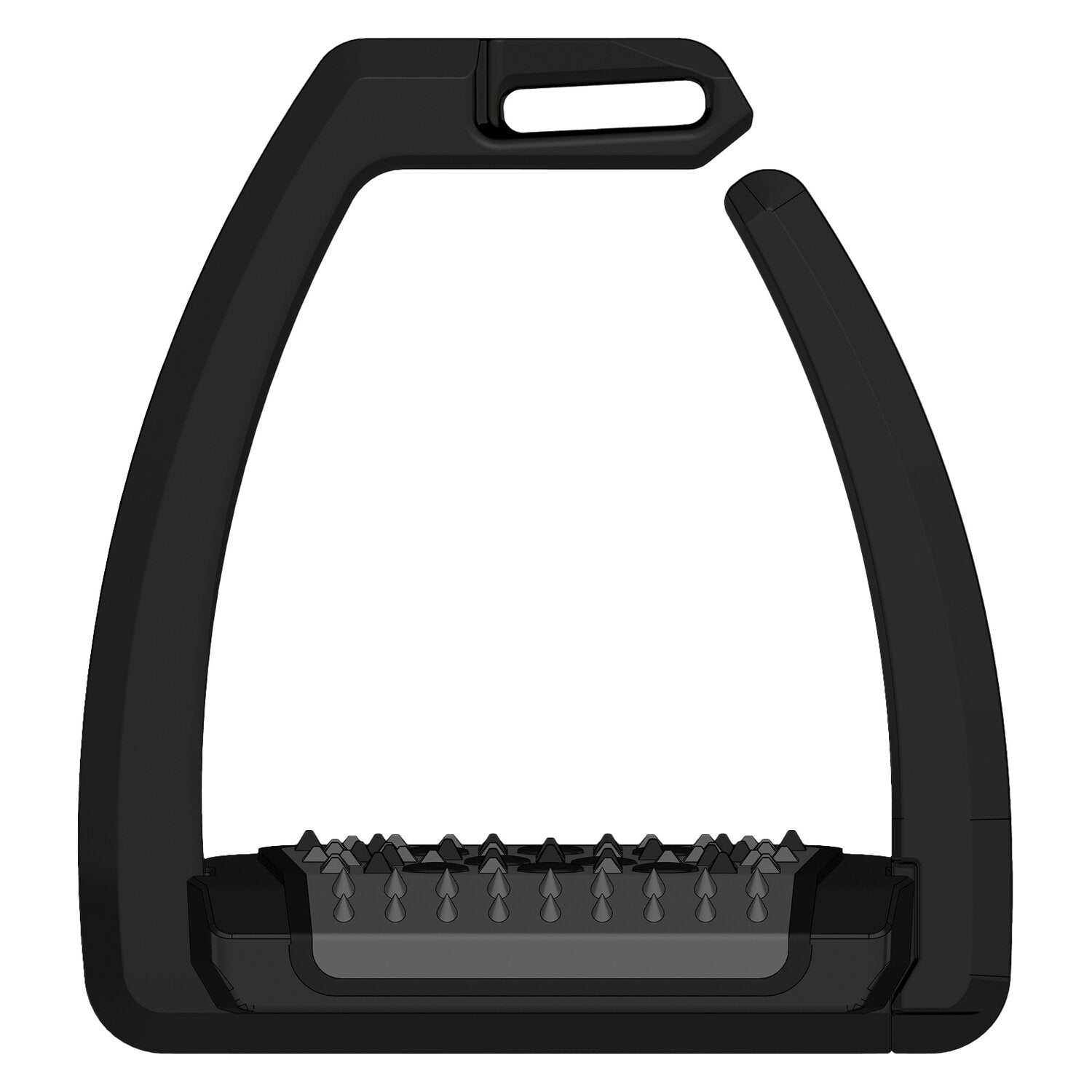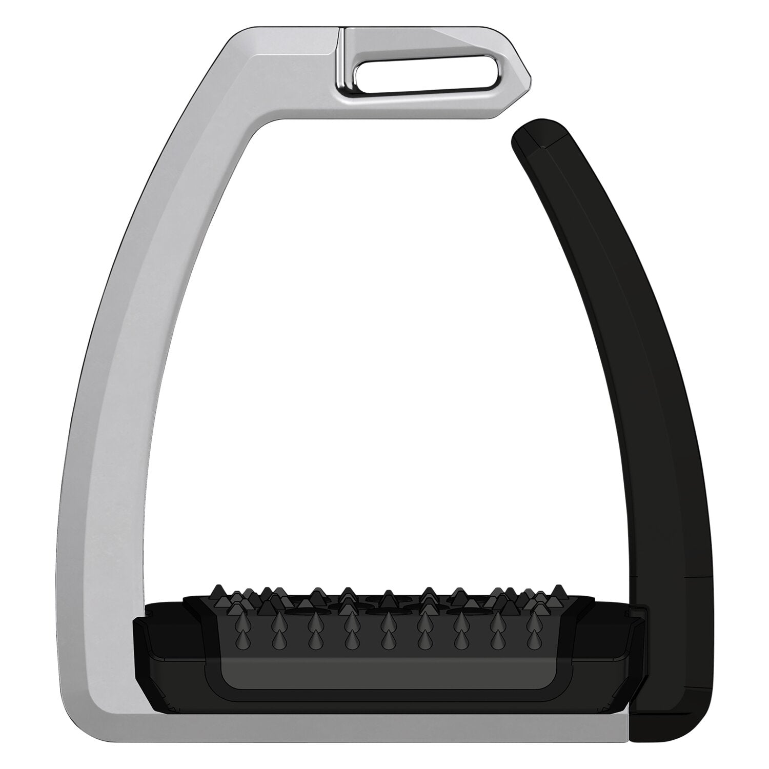 Bei dem AERO Steigbügel aus dem Hause SPRENGER steht Sicherheit an 1. Stelle. Eine Kombination aus hochwertigem UV-beständigem Kunststoff mit hochfestem, eloxiertem Aluminium. Dank optimierter Steigbügelriemen-Öse (gedreht und geneigt), ist für einen ausbalancierten Bügel gesorgt, der das Aufnehmen erleichtert und den Schenkel näher ans Pferd bringt. Im Falle eines Sturzes kommt das bewegliche, um 180° kippbare Element zum Einsatz - dies erleichtert die Freigabe des Fußes egal ob seitwärts, aufwärts, nach hinten oder nach vorne. Somit wird die Gefahr, im Steigbügel hängenzubleiben reduziert und Verletzungen werden vorgebeugt. Die extra breite, um 5° geneigte Trittfläche aus Glasfaser verstärktem Kunststoff mit festen und weichen Grip-Elementen sorgt für einen guten Halt, wirkt stoßabsorbierend und dämpfend.