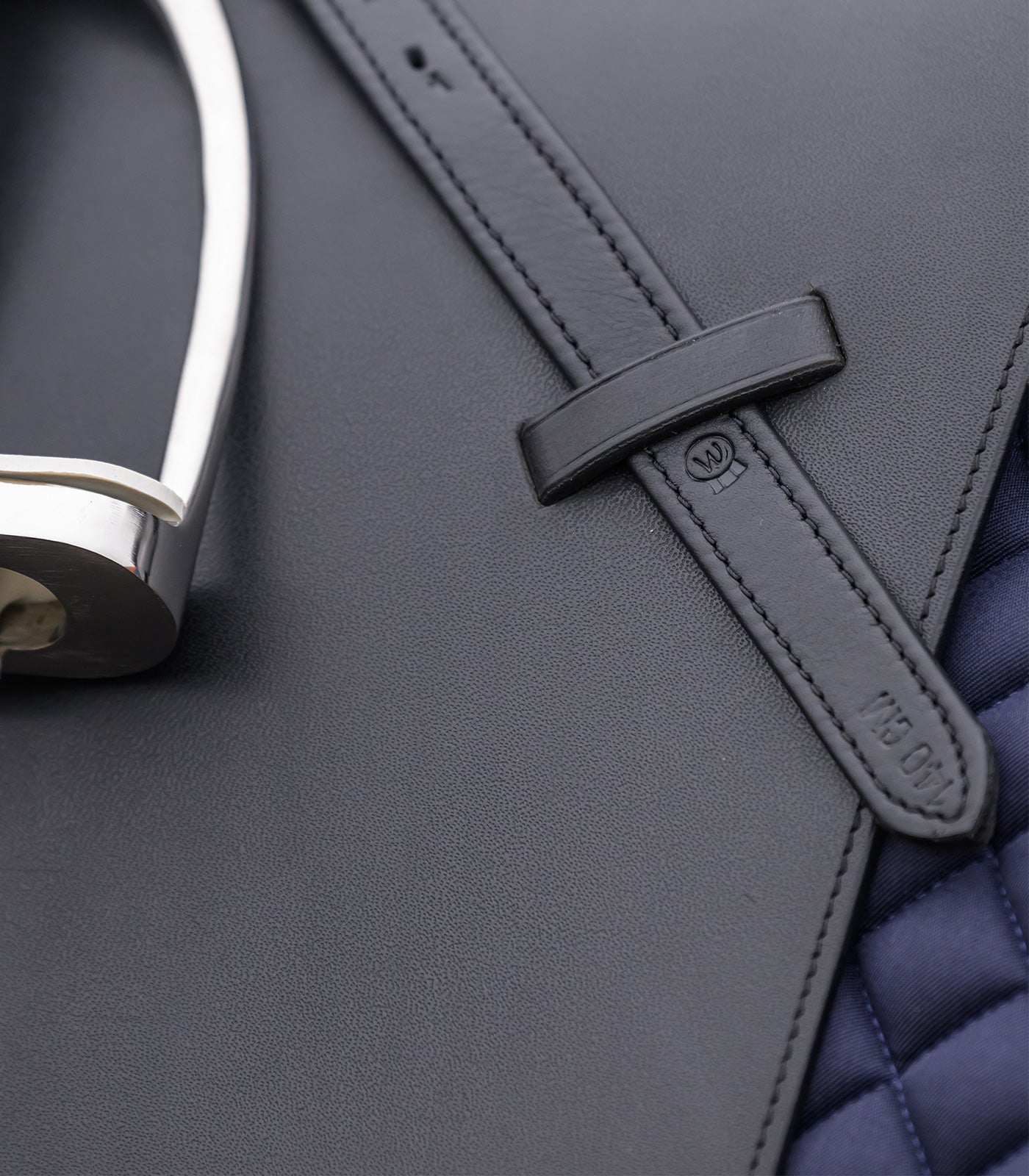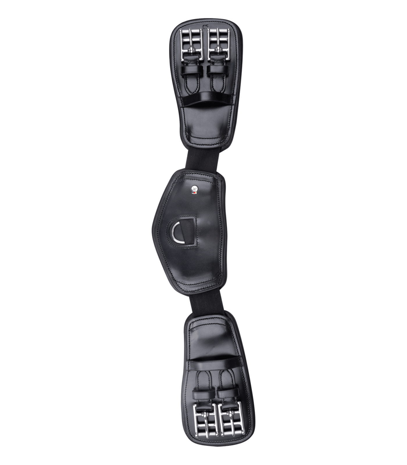 Weich unterlegter, anatomisch geformter Kurzgurt aus qualitativ hochwertigem Leder. Die beiden Elastikeinsätze sorgen für extra Bewegungsfreiheit beim Ein- und Ausatmen und wirken Gurtzwang entgegen. Die drei Lederteile sind weich gepolstert und bieten durch ihre große Auflagefläche eine extra gute Druckverteilung. Ohne elastische Gurtenden, mit Edelstahl- Rollschnallen und D-Ring.