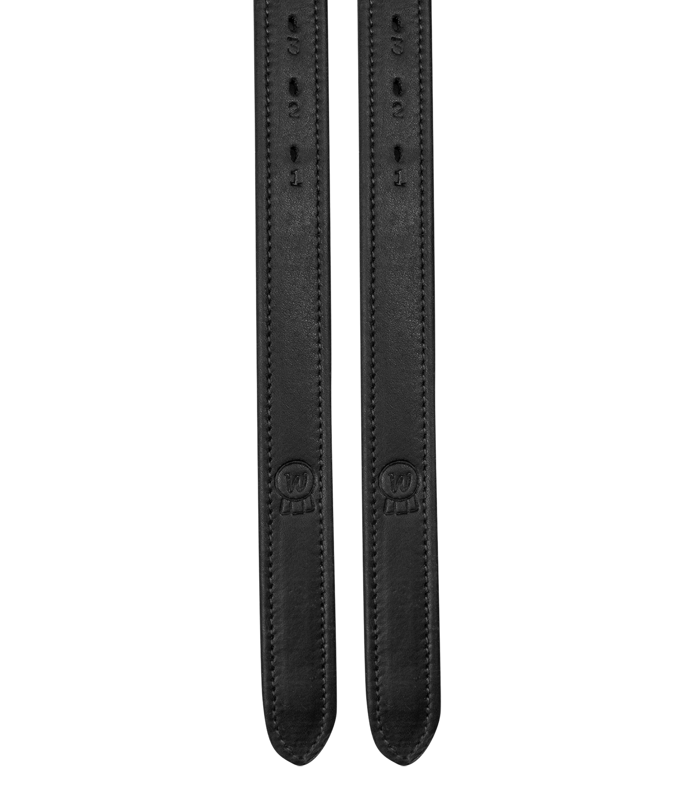 Strapazierfähige Riemen aus bestem Qualitätsleder und langlebigem Nylon in langer Ausführung. Diese strapazierfähigen Riemen verbinden den oberen und unteren losen Ring des Pelhams und bieten dadurch eine präzise Kontrolle und eine verbesserte Führung des Pferdes. Der praktische Hakenverschluss ermöglicht ein schnelles und einfaches Anbringen sowie Abnehmen der Riemen. Paar