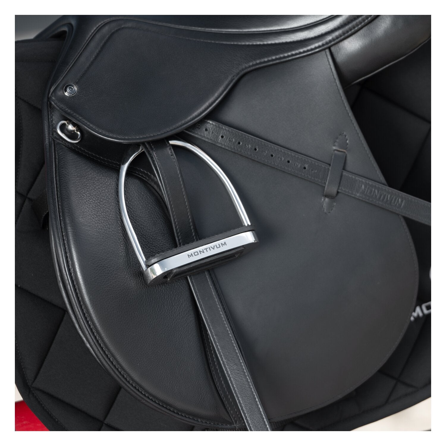 Fixierung über stabilen Nylonriemen am Gurt, keine störenden Sattelschlaufen