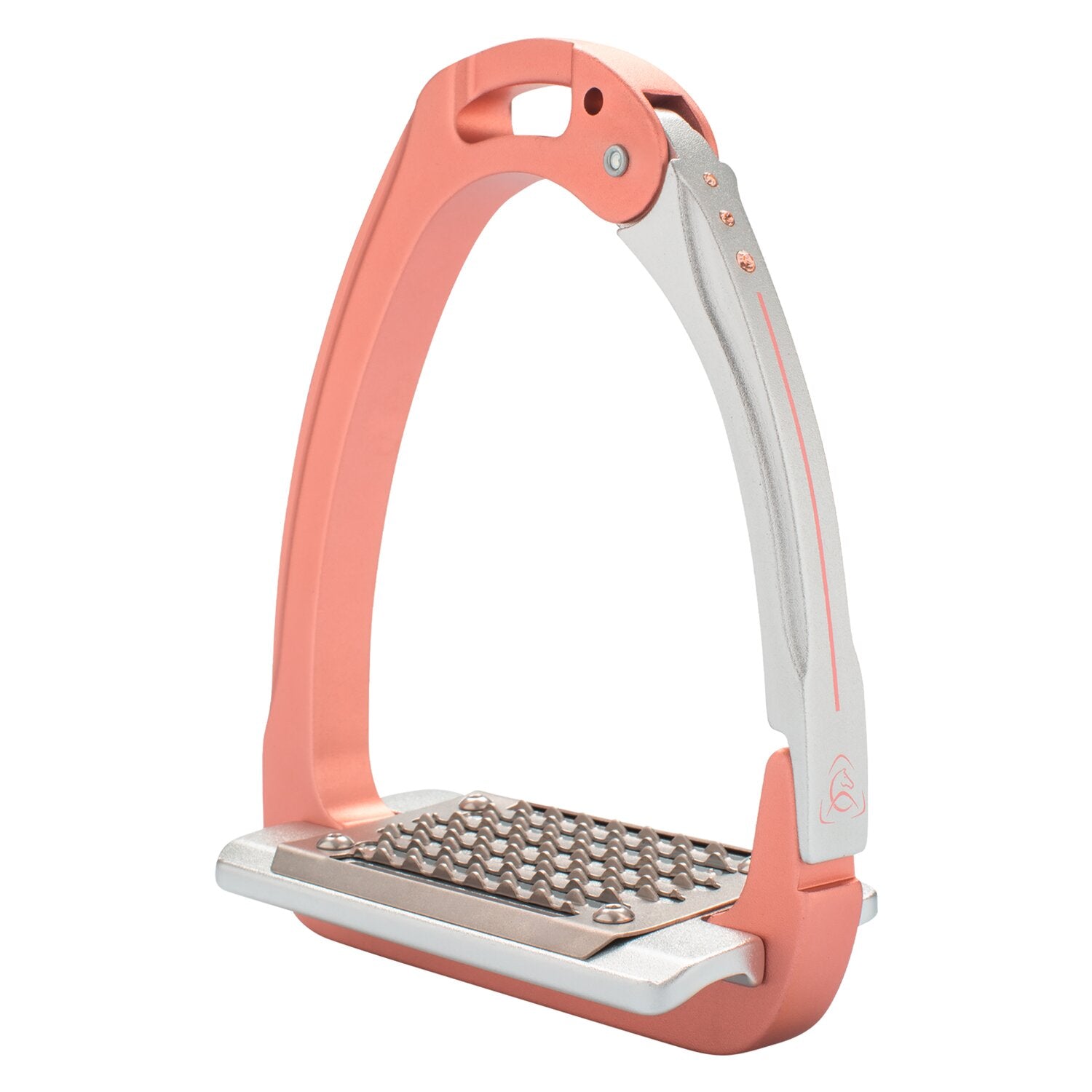 Für den jungen Champion - passend bis Schuhgröße 38. Verkleinerter, einarmiger Sicherheitssteigbügel, der komfortabel, sicher und einfach ist. Der elastische äußere Arm aus Fiberglas gibt den Fuß bei einem Sturz leichter aus dem Steigbügel frei. Die 10.7 cm breite Trittfläche passt für Schuhsohlen die nicht breiter als 10.2 cm sind. Die Optik des Steigbügels ist durch die austauschbaren Pins einfach zu individualisieren.
