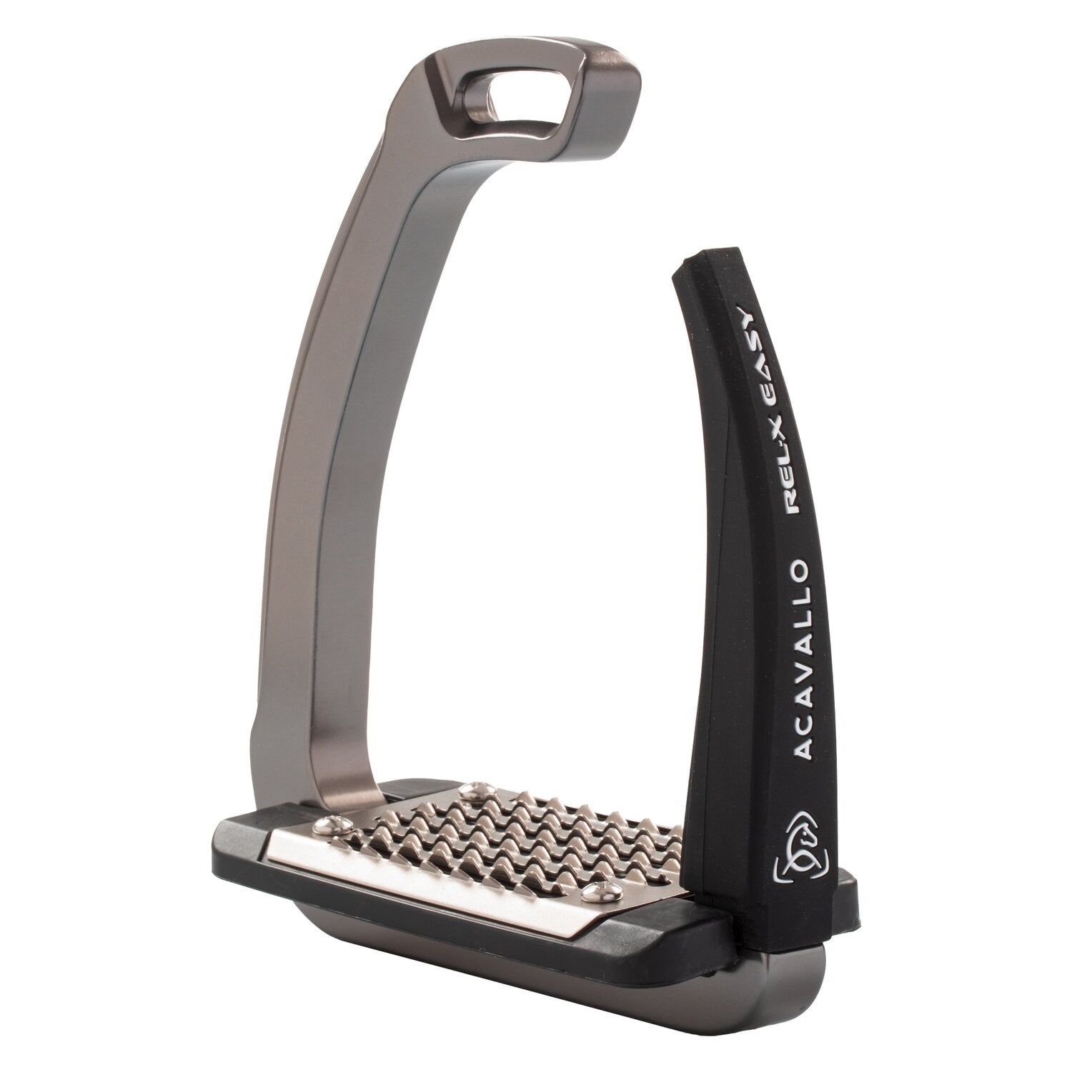 Die Rel-X EASY Steigbügel von ACAVALLO vereinen modernste Technologie und durchdachtes Design. Dank innovativer Materialkombination aus Hightech-Metall und flexiblen Polymeren, bieten die Steigbügel mehr Komfort und eine geringere Steifigkeit als herkömmliche Modelle. Mit ihrer patentierten Seitenöffnung bieten sie ein Höchstmaß an Sicherheit, da der äußere Silikonzweig ein leichtes Lösen des Fußes in alle Richtungen im Falle eines Sturzes ermöglicht. Das Edelstahl-Fußbett mit horizontalen Löchern gewährleistet unter allen Bedingungen sicheren Halt und schützt gleichzeitig vor Korrosion. Der strategisch platzierte Verriegelungs- und Entriegelungsmechanismus verhindert ein versehentliches Verrutschen des Fußes. Dank des Grip-Systems und der mit Aluminium überzogenen, kugelgestrahlten Oberfläche bieten die Steigbügel nicht nur maximale Funktionalität, sondern auch eine ansprechende Optik. Trotz ihrer leichten Bauweise von nur 418 Gramm sind die Rel-X EASY Steigbügel extrem widerstandsfähig und langlebig. Mit diesen Steigbügeln erleben Reiter ein völlig neues Maß an Komfort und Sicherheit im Sattel – ein innovativer Begleiter für jede Disziplin.