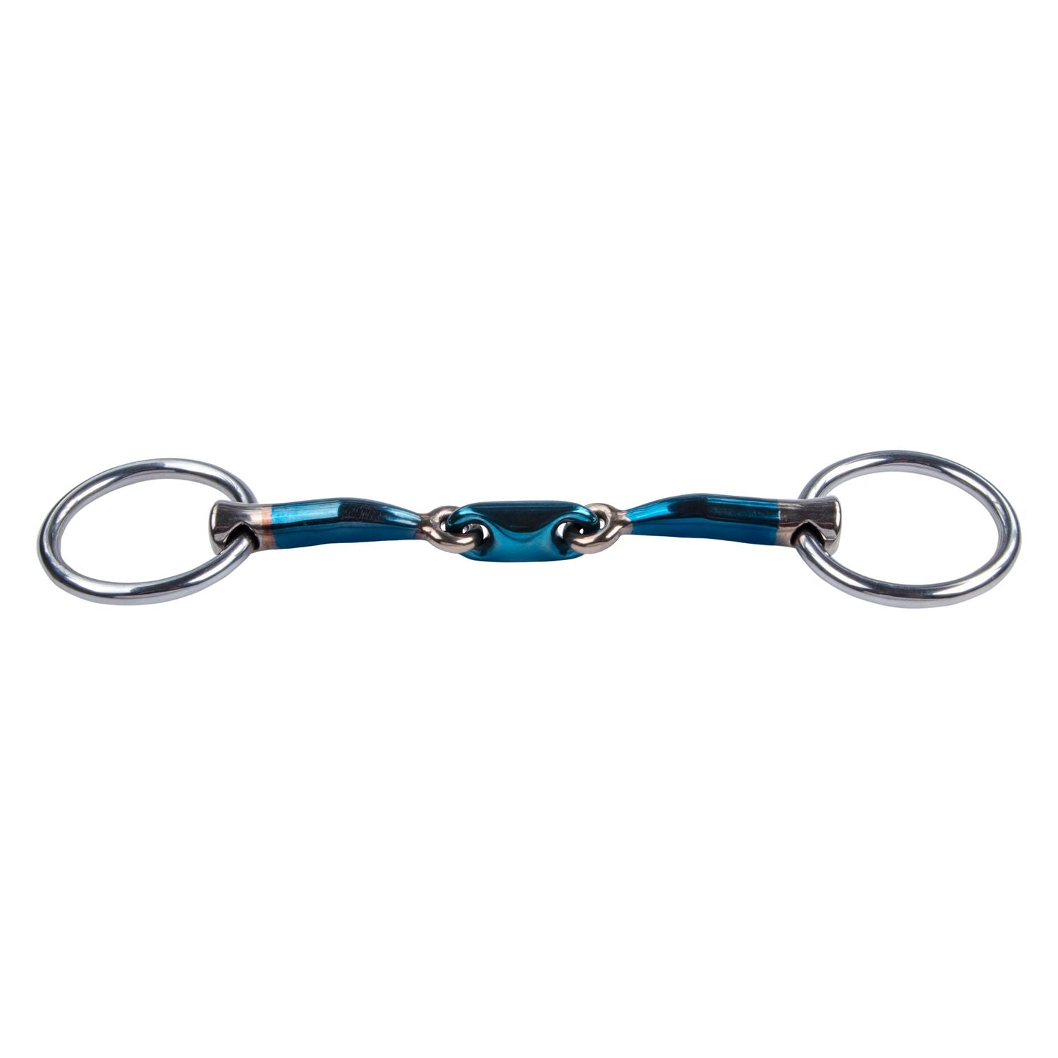 Doppelt gebrochen, aus massivem, nickelfreiem Messing. (90 % Kupferanteil). Da es besonders weich im Pferdemaul liegt, ist es auch für die Ausbildung junger Pferde bestens geeignet. Gemäß LPO 2013 zulässig nach § 70B: Alle Prüfungsarten Zäumung auf Trense.